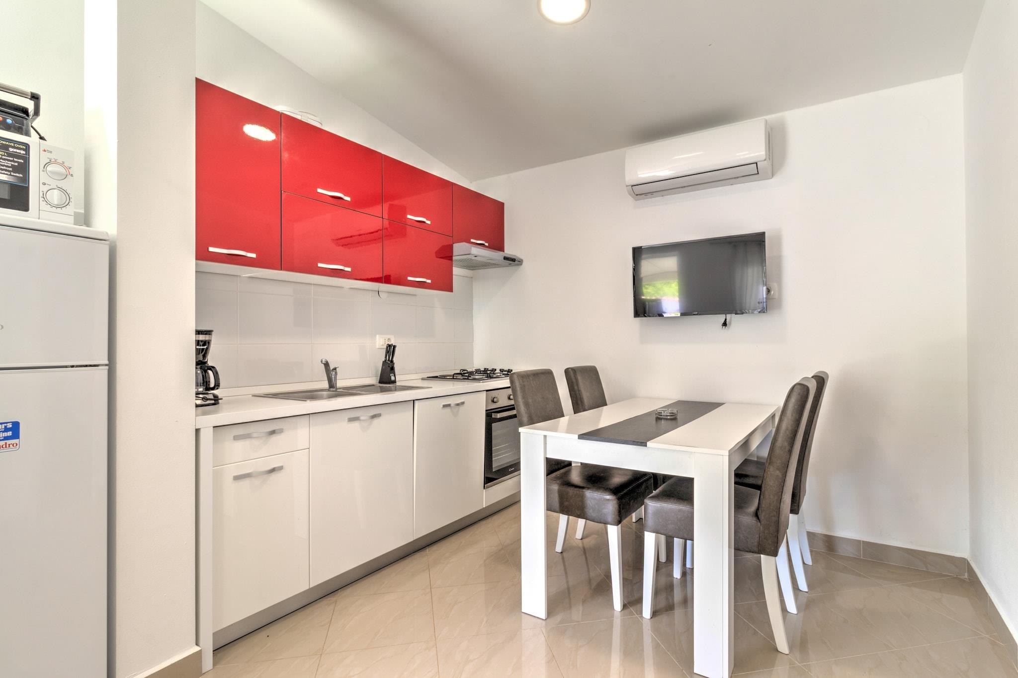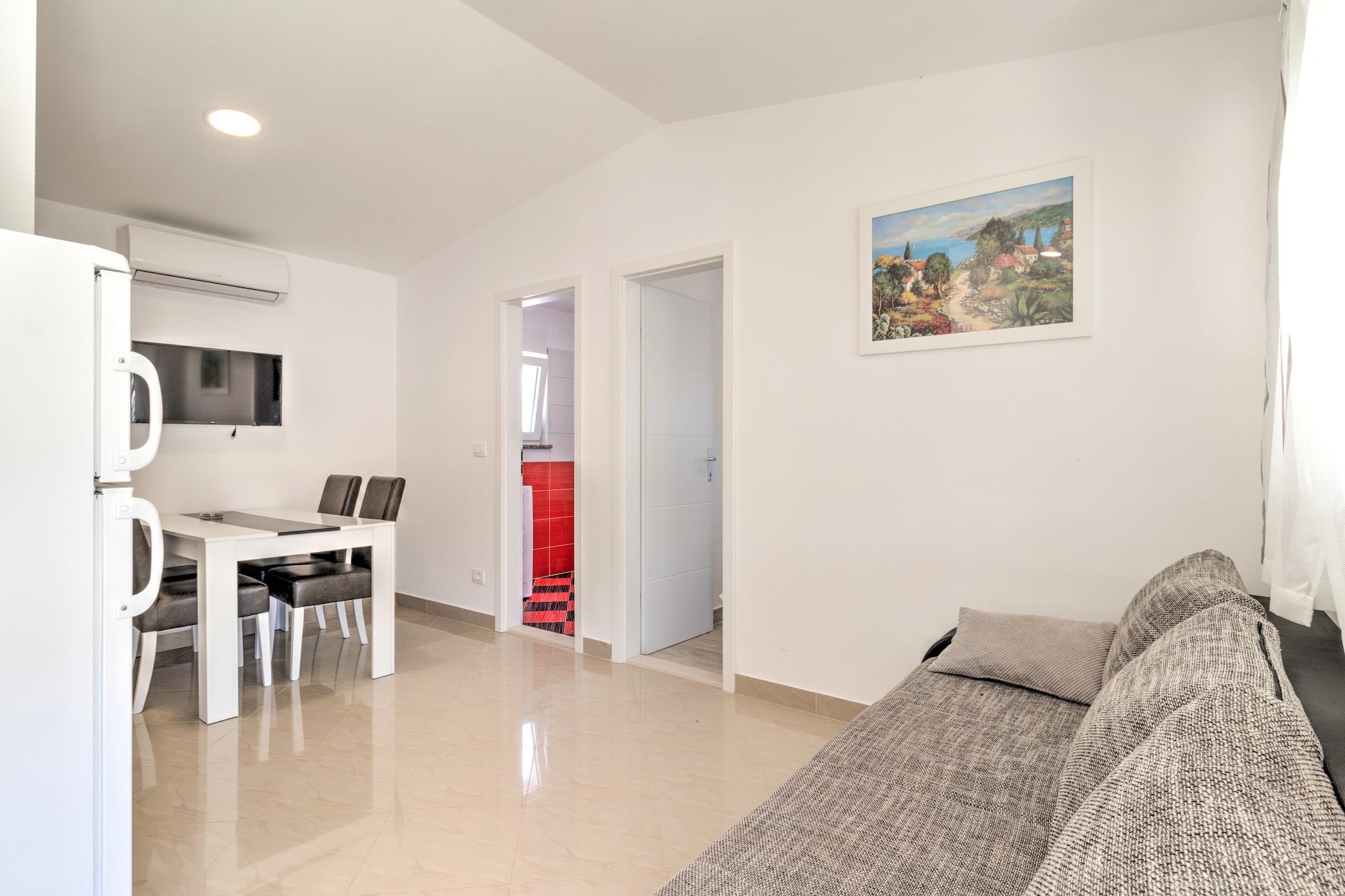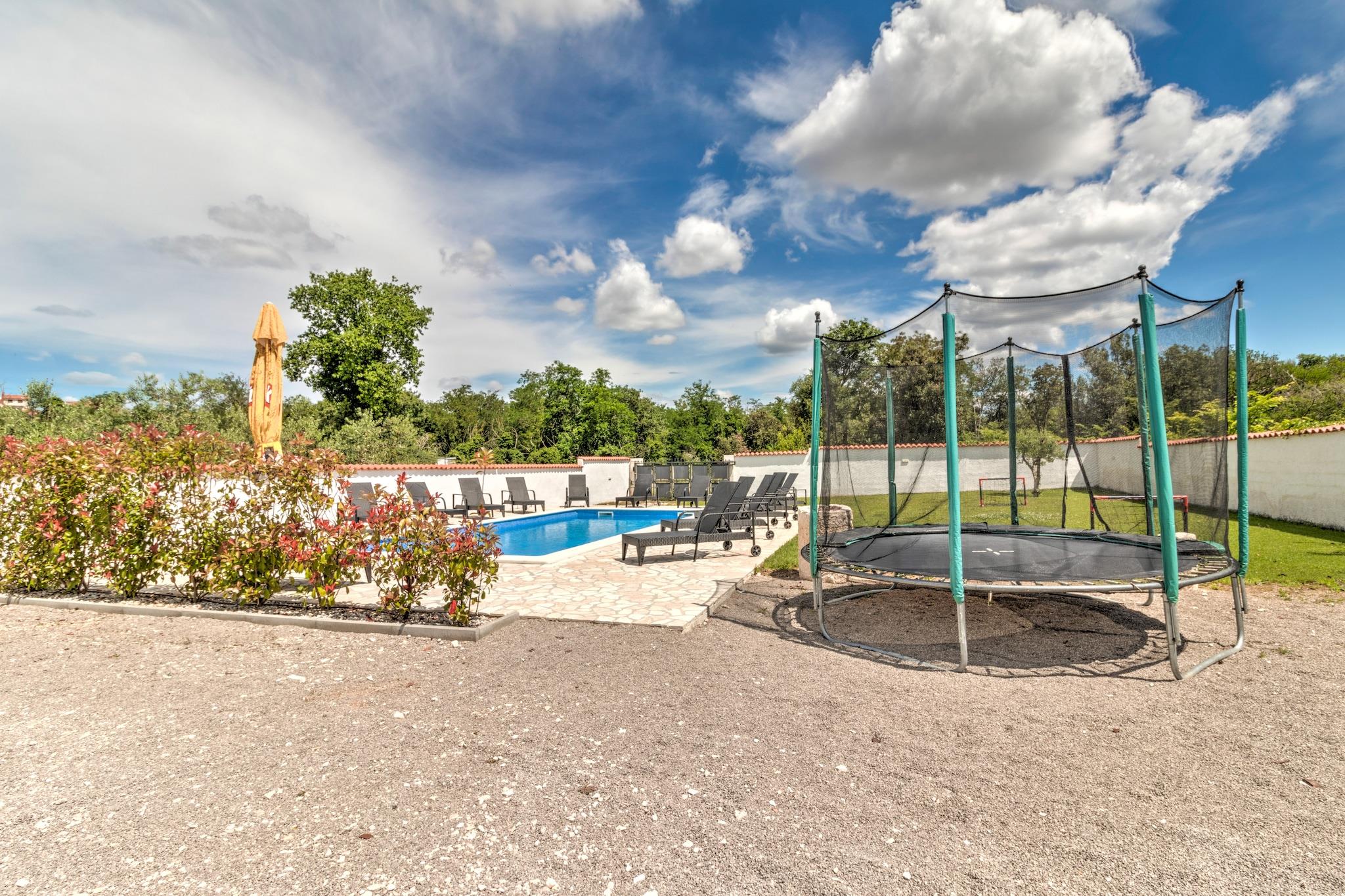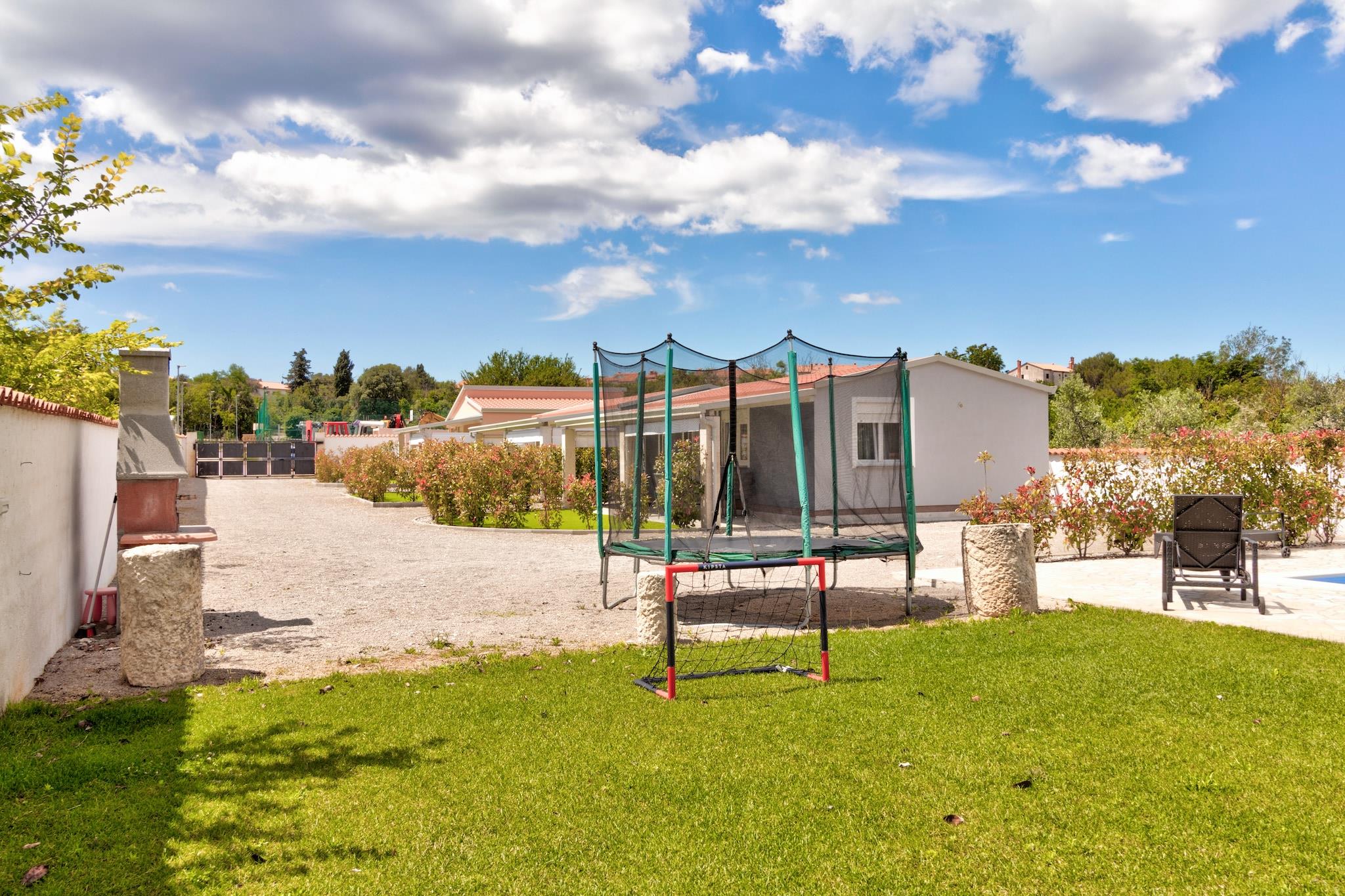 Beliggende i den charmerende kystby Banjole tilbyder dette kæledyrsvenlige feriehus til seks gæster en perfekt blanding af afslapning og eventyr. Kun 1 km fra stranden og 2 km fra Pula giver det nem adgang til fantastiske kystlandskaber, historiske steder og levende lokal kultur. Uanset om du slapper af på den solbeskinnede terrasse, nyder udendørsaktiviteter eller udforsker nærliggende attraktioner, sikrer dette tilflugtssted et mindeværdigt ophold med gratis WiFi og moderne bekvemmeligheder. Indenfor har hjemmet en rummelig stue og soveværelse med en dobbelt sovesofa, tv og aircondition, et veludstyret køkken med elkedel, kogende vandhane, kaffemaskine, ovn, mikrobølgeovn, opvaskemaskine og køleskab samt et soveværelse med køjesenge eller to enkeltsenge. Soveværelset har en kingsize-seng og et eget badeværelse med badekar eller bruser og toilet, suppleret af et ekstra badeværelse for nemheds skyld. Udendørs kan gæsterne slappe af på terrassen med havemøbler, liggestole og en grill, eller nyde trampolinen, tennisbanen, fodboldmålet og legeredskaberne. I nærheden fremviser Augustus-templet udsøgt romersk arkitektur, mens Brijuni-øerne byder på betagende natur og historiske skatte. Gå en tur gennem Sergii-buen, en storslået triumfbue fra oldtiden. For at spise kan du forkæle dig selv med noget på Nina Pizzeria, der er kendt for sine italienske smagsoplevelser, eller nyde frisk fisk og skaldyr på Konoba Sidro. Uanset om du udforsker... Historie eller afslapning ved kysten, er dette feriehus det ultimative tilflugtssted ved Adriaterhavet.