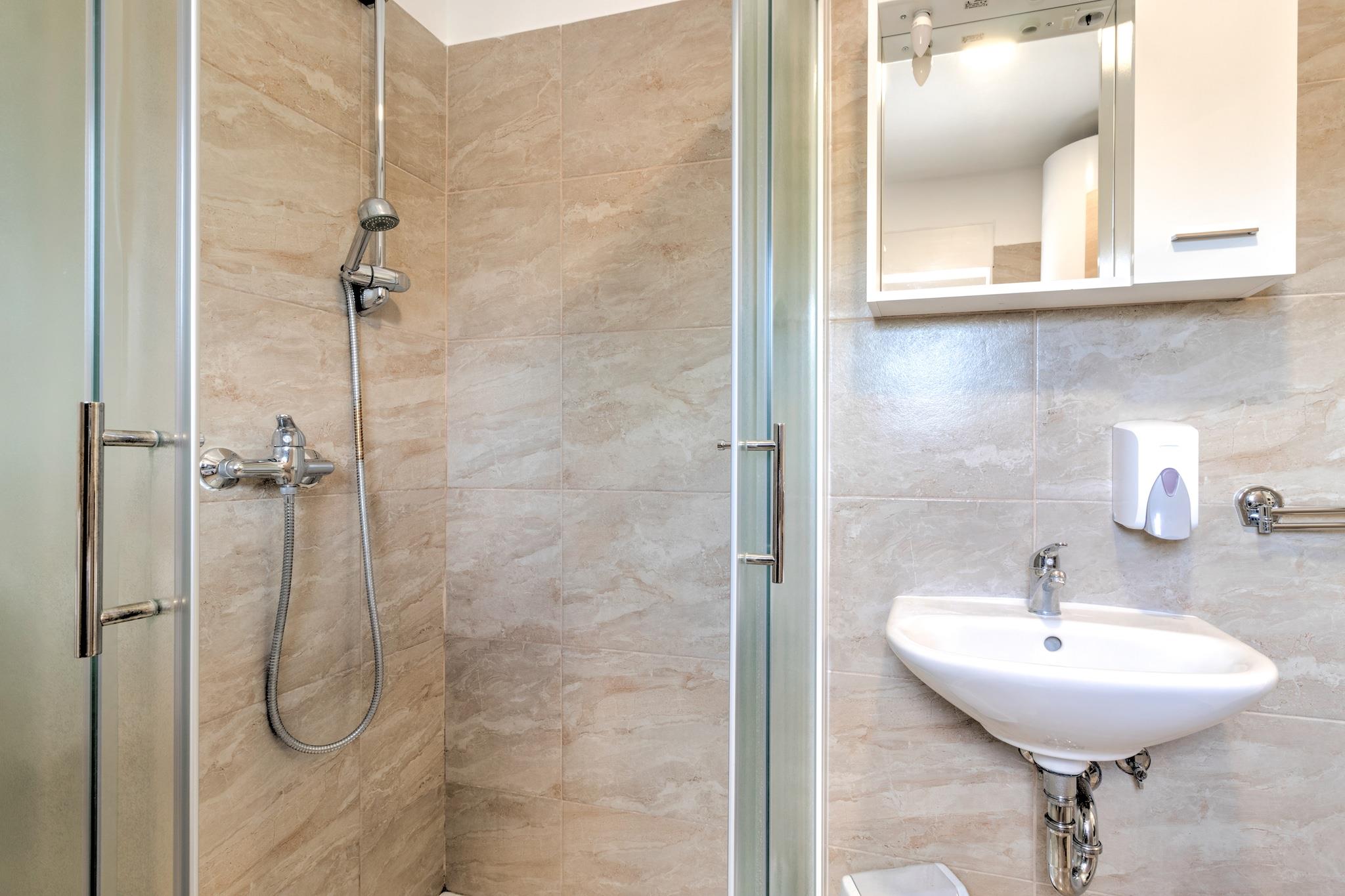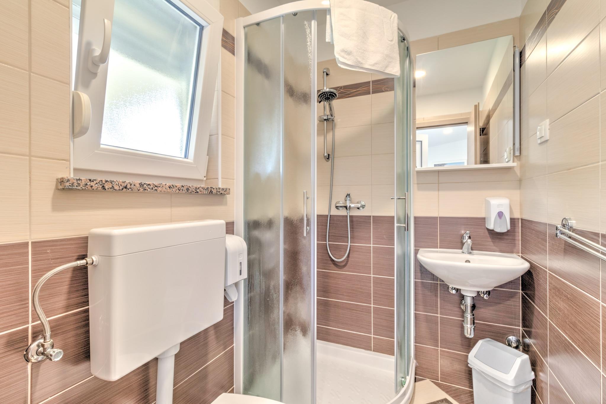 Slap af i dette kæledyrsvenlige feriehus i Banjole, designet til op til seks gæster og beliggende kun 1 km fra stranden og 2 km fra Pulas historiske centrum. Huset er omgivet af frodig vegetation og tilbyder gratis WiFi, adgang til en fælles swimmingpool og et væld af udendørs faciliteter, ideelt for familier eller grupper, der ønsker at slappe af eller udforske Istriens kyst. Indenfor finder du en rummelig stue/soveværelse møbleret med en dobbeltseng, tv og aircondition. Det fuldt udstyrede køkken har moderne apparater såsom elkedel, kogende vandhane, kaffemaskine, ovn, mikrobølgeovn, opvaskemaskine og køleskab. Sovepladserne inkluderer et soveværelse med enten to enkeltsenge eller køjesenge og et soveværelse med en kingsize-seng og et privat badeværelse med bruser eller badekar og toilet. Et ekstra badeværelse giver ekstra komfort. Udendørsområdet inviterer dig til at slappe af på en møbleret terrasse med liggestole og grill. For sjov og rekreation kan du nyde trampolinen, tennisbanen, fodboldnettet og legepladsudstyret. Nærliggende attraktioner inkluderer det ærefrygtindgydende Augustus-tempel, de naturskønne og historiske Brijuni-øer og den ikoniske Sergii-bue. For at spise kan du besøge Nina Pizzeria for at smage på Italien eller nyde fiske- og skaldyrsspecialiteter på Konoba Sidro. Med en blanding af fritid, historie og kystcharme tilbyder dette hjem en uforglemmelig adriatisk ferie.