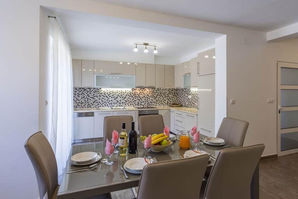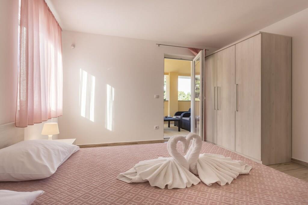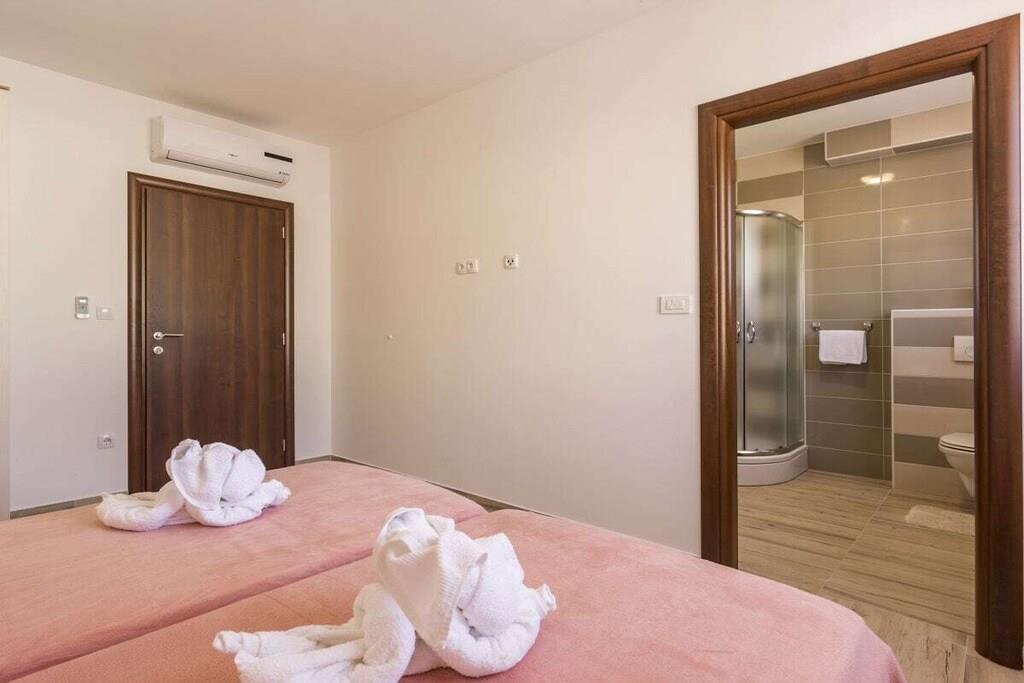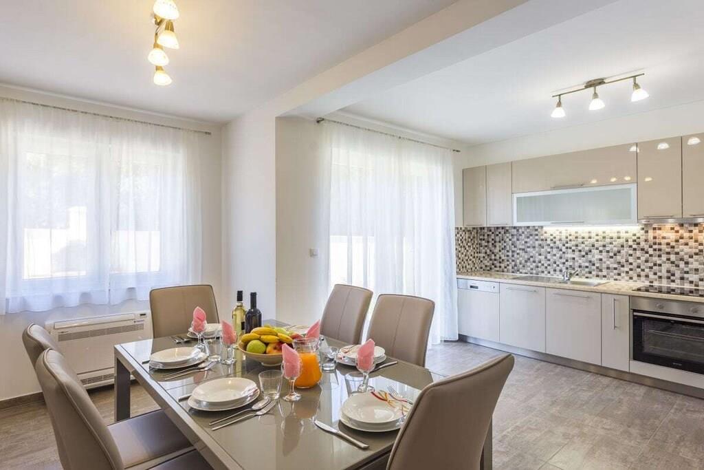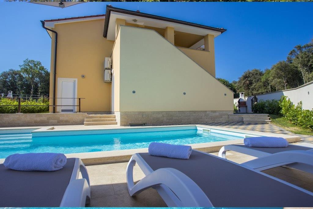 Dieses schöne geräumige und erfrischende Ferienhaus in herrlicher Lage bietet Ihnen einen schönen Urlaub, es bietet Privatsphäre, Ruhe und einen unvergesslichen Aufenthalt. Das Haus hat 2 Etagen. Im Erdgeschoss ist der Ruhebereich mit Wohnzimmer, geräumige Küche, ein großes Schlafzimmer mit Bad, Ausgang auf der Terrasse und Ausgang zum Pool. Auf der ersten Etage befinden sich 3 Schlafzimmer, jedes mit eigenem Badezimmer. Zwei dieser Zimmer haben einen eigenen Ausgang auf dem Balkon, wo Sie einen kleinen Tisch haben, wo Sie Kaffee trinken und die Sonne genießen können, von wo aus Sie direkt zum großen Swimmingpool gehen können, wo es Liegestühle und eine große Liegewiese gibt.