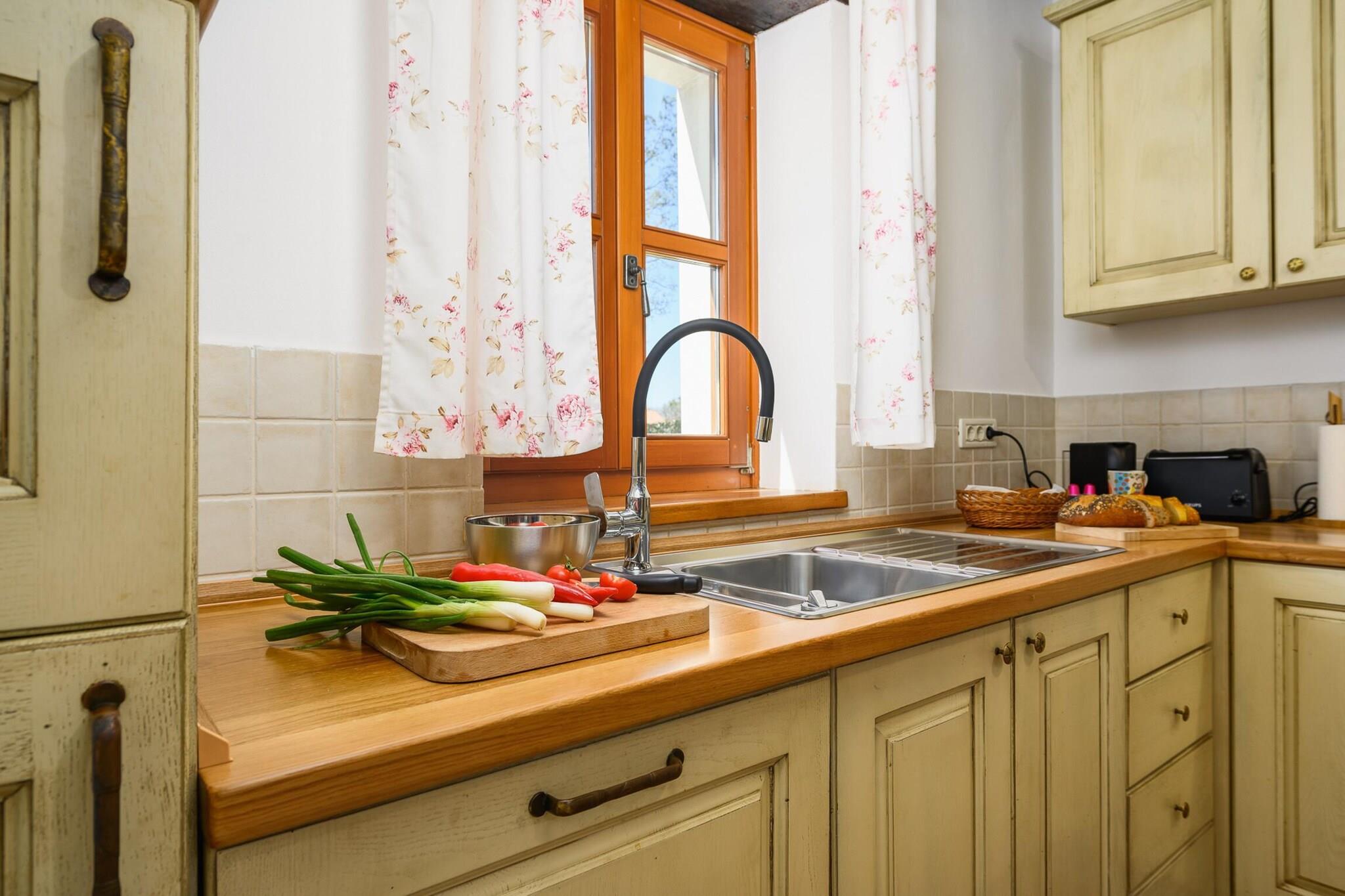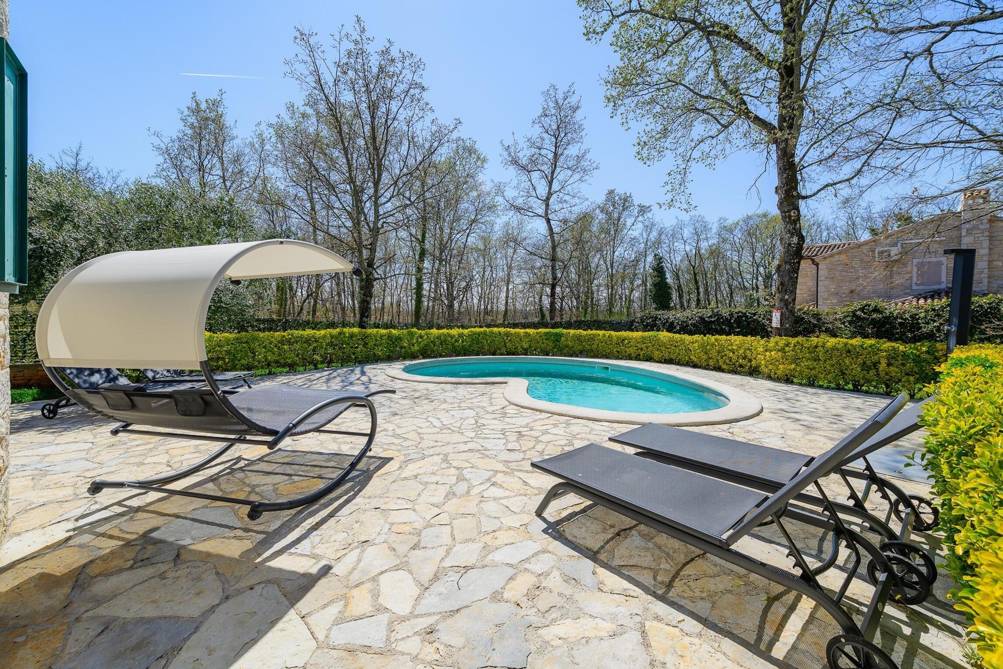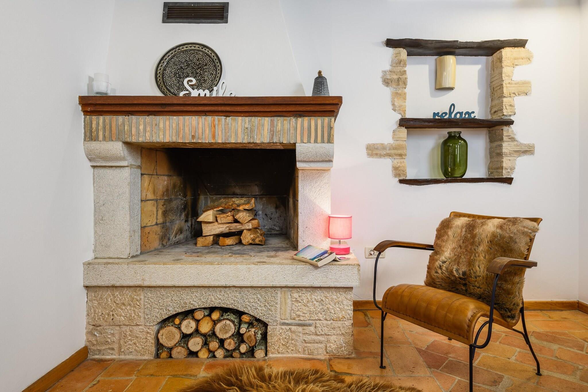 Villaen tilbyder sammen med dens indbydende og veldesignede layout en rummelig villa med tre soveværelser, fuldt udstyret med moderne bekvemmeligheder og har en privat have, udendørsmøbler og en privat swimmingpool, der kan rumme op til 8 gæster. Indvendigt har villaen aircondition, centralvarme, Wi-Fi, vaskemaskine, pejs og tv med satellitkanaler på engelsk og tysk. Ejendommen tilbyder også en terrasse, balkon og udendørs parkering i samme bygning for gæsternes bekvemmelighed. Villaens beliggenhed i landdistriktet Banki giver et fredeligt miljø, mens den stadig tilbyder nem adgang til lokale attraktioner. Det ligger kun 52 meter fra Pula-togstationen, som giver fremragende transportforbindelser. Byen Tinjan ligger 5 km væk, hvor gæsterne kan finde supermarkeder, lokale restauranter som "Restaurant Vijulin" og andre tjenester. For udendørs aktiviteter kan gæsterne besøge den nærliggende "Marea Beach" (21 km), en populær sandstrand, eller "Aquapark Porec" vandland (17 km) for familiehygge. Naturreservatet "National Park Brijuni" (45 km) byder på naturskønne udsigter og vandremuligheder, mens "Dino Park Funtana" (19 km) byder på underholdning for børn. Derudover sikrer Pula Lufthavn (52 km) nem adgang for rejsende. Villaen har et fuldt udstyret åbent køkken designet til bekvemmelighed. Det omfatter moderne elektriske apparater såsom køleskab, mikroovn, ovn, fryser, opvaskemaskine, kaffemaskine, brødrister og kedel, sammen med alt nødvendigt køkkenredskaber, tallerkener og bestik. Ejendommen har også en grill til udendørs spisning og et pengeskab for ekstra sikkerhed.