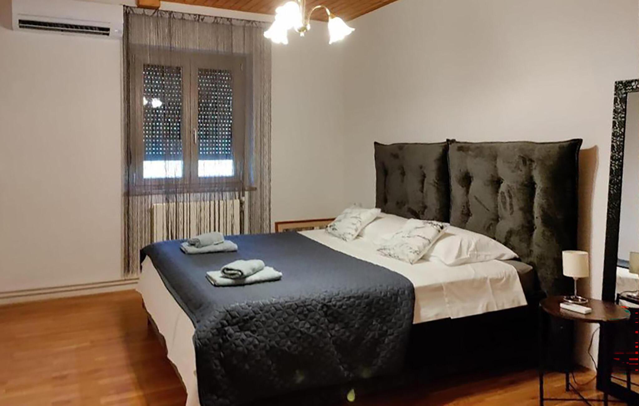 Forkæl jer selv med afslappende dage i denne komfortable ferielejlighed i idylliske omgivelser. Denne velholdte lejlighed tilbyder et hyggeligt tilflugtssted, hvor I kan kombinere afslapning i naturen med dejlige udflugter. Planlæg jeres aktiviteter med harmoniske måltider ved det indbydende spisebord, og slap af efter en begivenhedsrig dag med en spilleaften eller en god film på smart-tv'et. Nyd udsigten over de omkringliggende grønne områder, mens I spiser en lækker morgenmad på terrassen. Om aftenen kan I tilberede velsmagende retter på den fælles grill og snakke over et glas vin i de lune sommernætter. Udforsk de middelalderlige gader i Barban, besøg kystbyen Rovinj, og slentr langs den livlige promenade. Cykl gennem de maleriske vinmarker og olivenlunde omkring Glavani, prøv regionale vine og olivenolier på en traditionel vingård, og tag en vandretur i naturparken Ucka, hvor I kan opleve den betagende udsigt over Kvarnerbugten. Svøm ved strandene i Rabac, og forkæl jer selv med istriske specialiteter på en af de lokale restauranter.