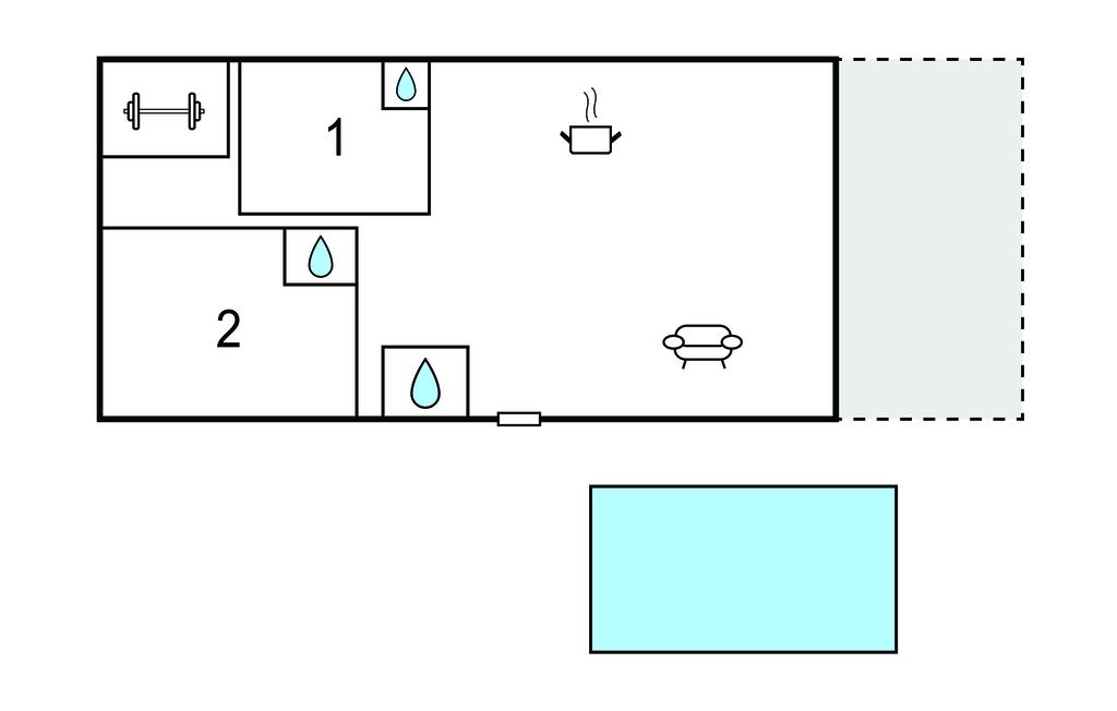 Opholdsstue/køkken 70m2 - 2 Sovepladser. (Sofa, madras eller lignende).
