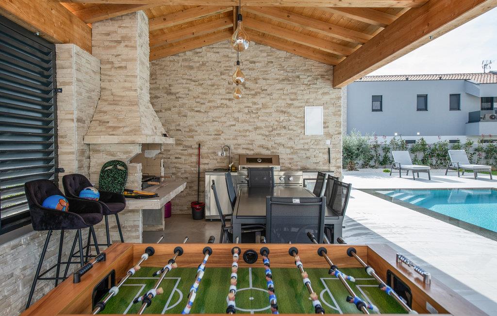 I kan tilberede lækre måltider ikke kun inde, men også udenfor i det skønne udekøkken. I løbet af dagen vil I tilbringe afslappende timer ved den opvarmede udendørspool, mens børnene gynger eller har det sjovt ved bordtennis.