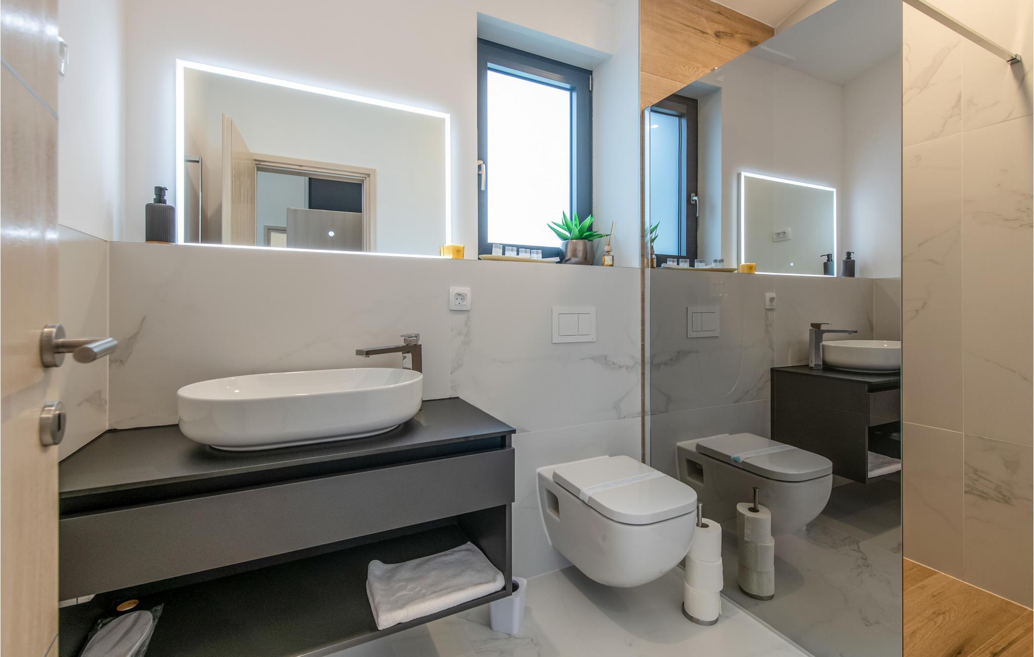 Badeværelse 6m2 (nr. 1) - WC. Varmt og koldt vand. Bruser