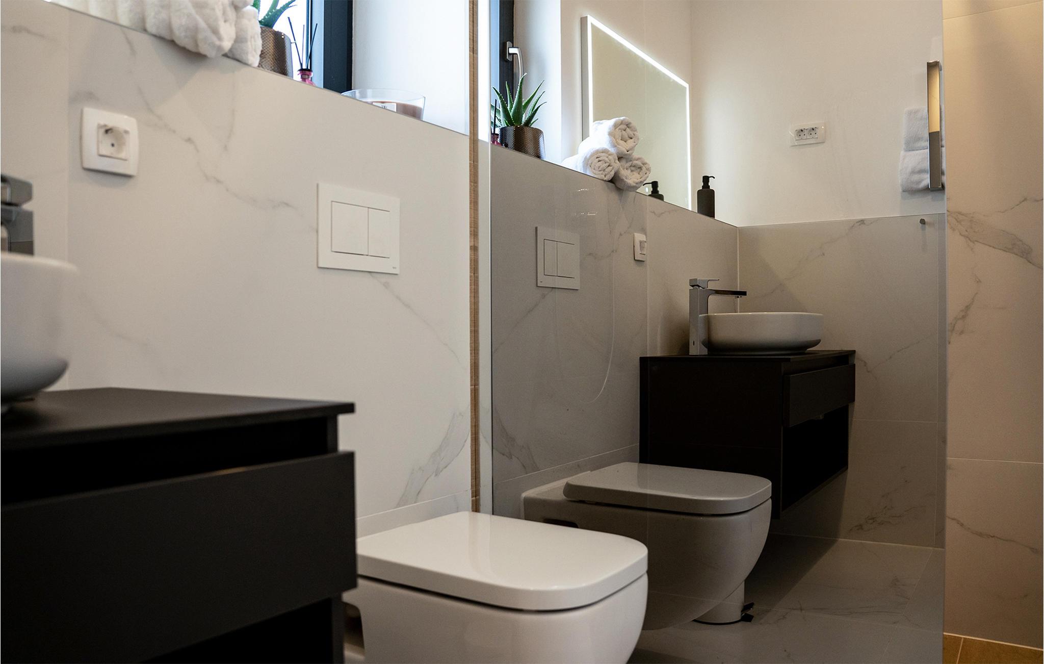 Badeværelse 6m2 (nr. 2) - WC. Varmt og koldt vand. Bruser
