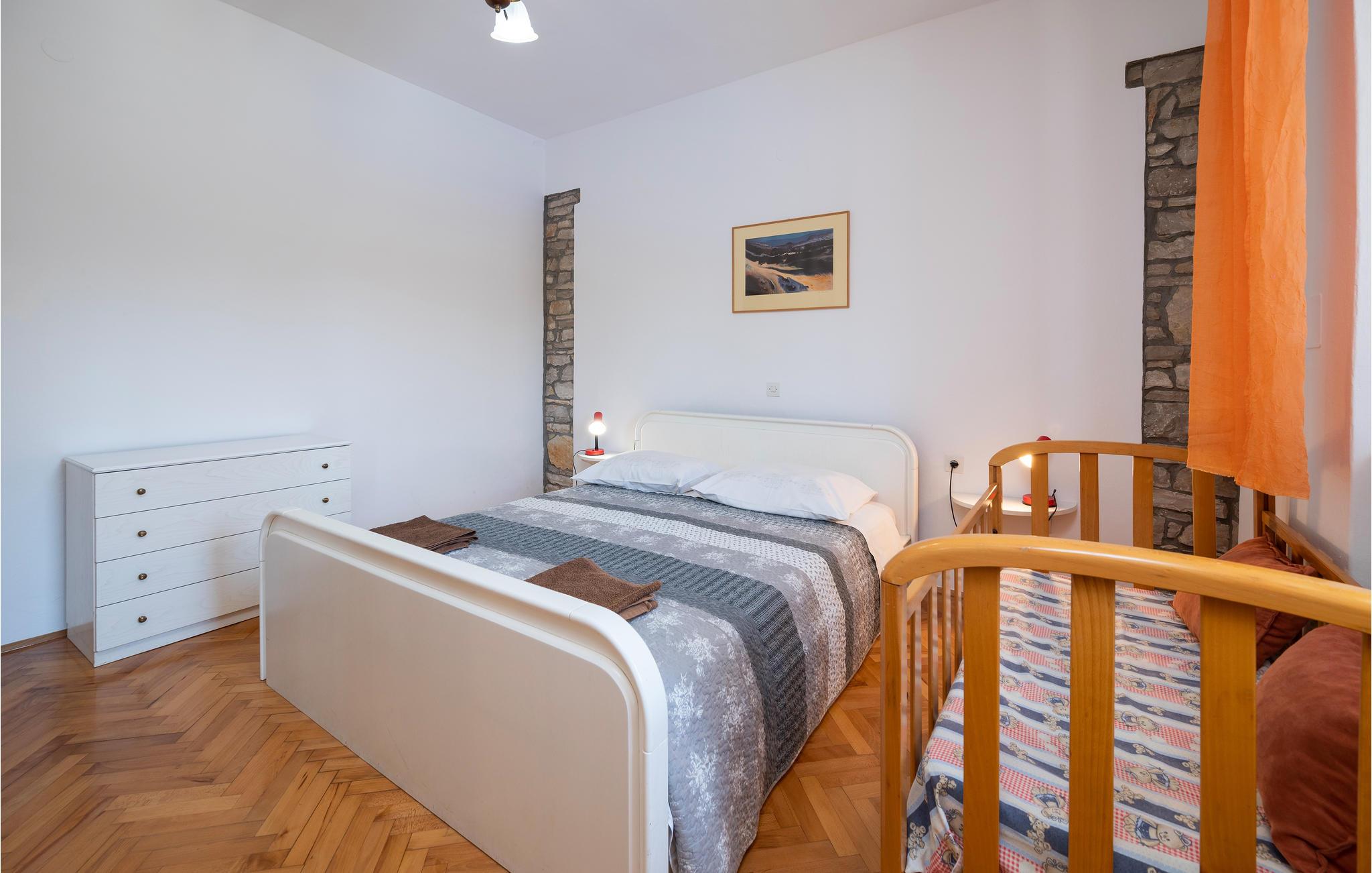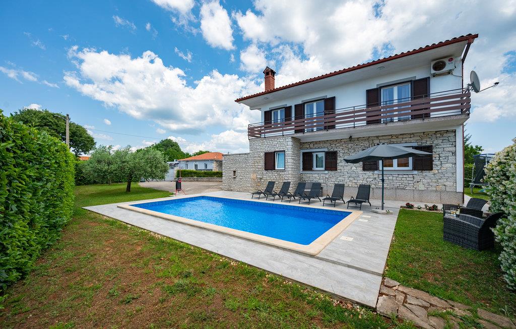 I det indre Istrien, ikke langt fra Barban, ligger dette komfortable feirehus med egen pool. Huset rummer to separate lejligheder, forbundet med udendørs trapper, hver med tre soveværelser, stue, køkken og badeværelse. På den indhegnede grund er der pool og en overdækket terrasse med grill, ligesom der er god plads til børnenes leg og boldspil. De nærmeste strande ligger i Blazbugten eller i byerne Krnica og Rakalj. Hvorfor ikke tage med på hesteudflugt fra ranchen Manjadvorci eller få pulsen helt op på et besøg i klatreparken Glavani. I middelalderbyen Svetvincenat afholdes der mange former for sommerunderholdning.