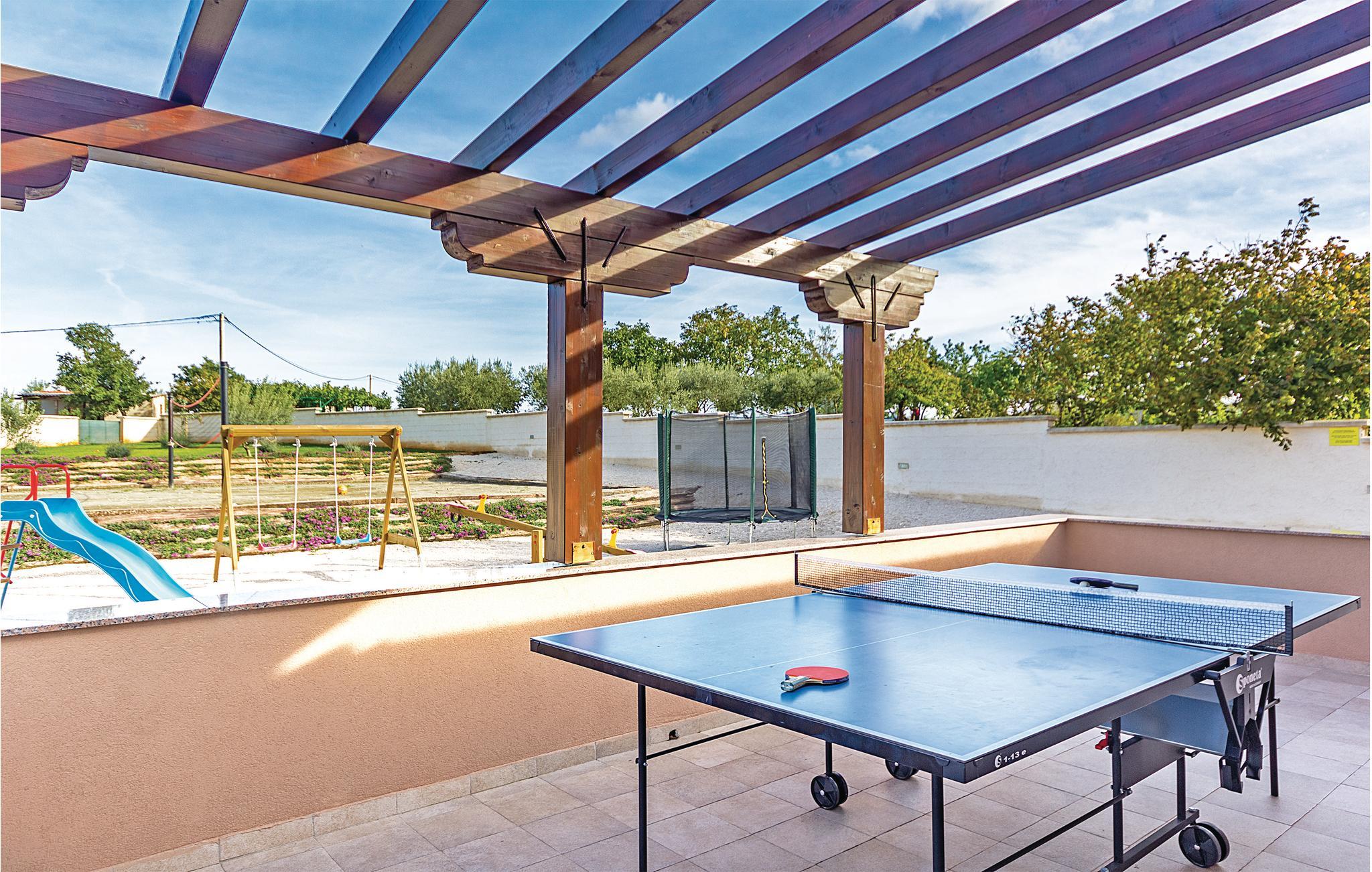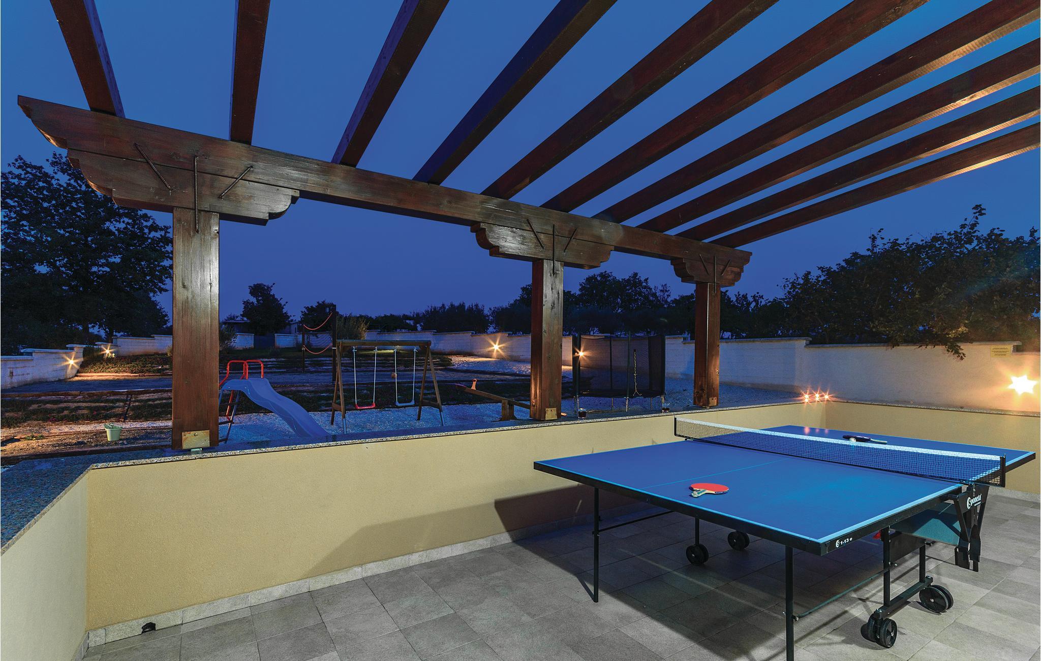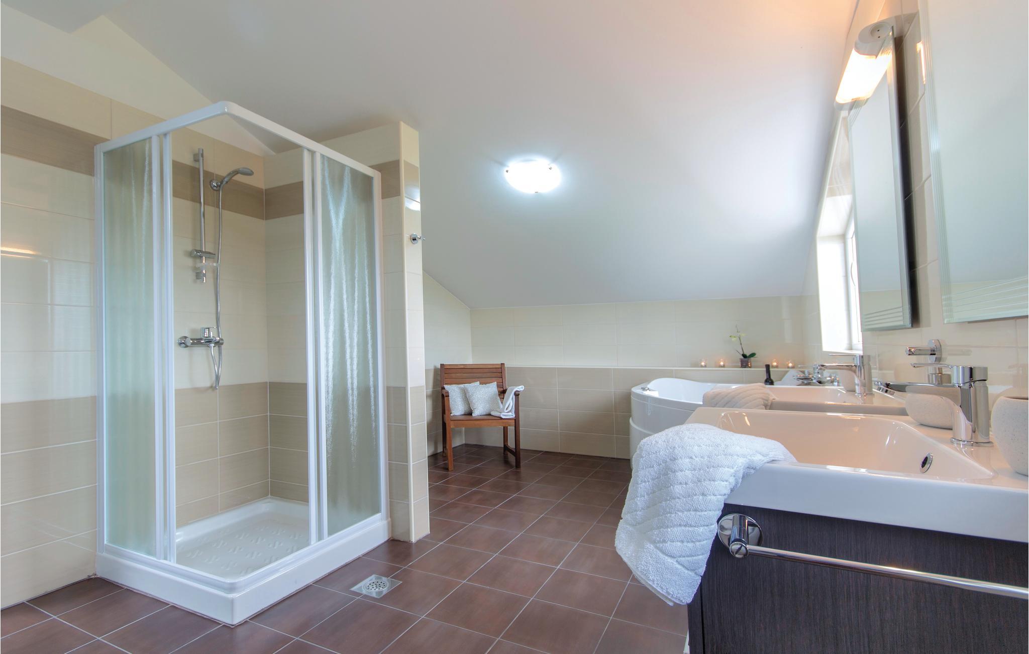Dette skønne feriehus ligger i den rolige lille by Filipana, er omgivet af frodigt grønt, med en skøn afslappet atmosfære. Huset er indrettet i moderne stil, på første sal ligger de to soveværelser og et stort badeværelse med whirlpool. Laveste loftshøjde er 160 cm. I stueplan ligger yderligere to soveværelser, hver med et badeværelse og en komfortabel stue med en stor terrasse foran. På den udendørs grill, kan I lave lækker mad, mens I holder øje med børnene der leger i haven. Ved siden af poolen ligger et badebassin til børnene. Tag på ture i omgivelserne til fods, på cykel eller i bil, besøg ranchen Barba Tone og klatreparken Glavani.