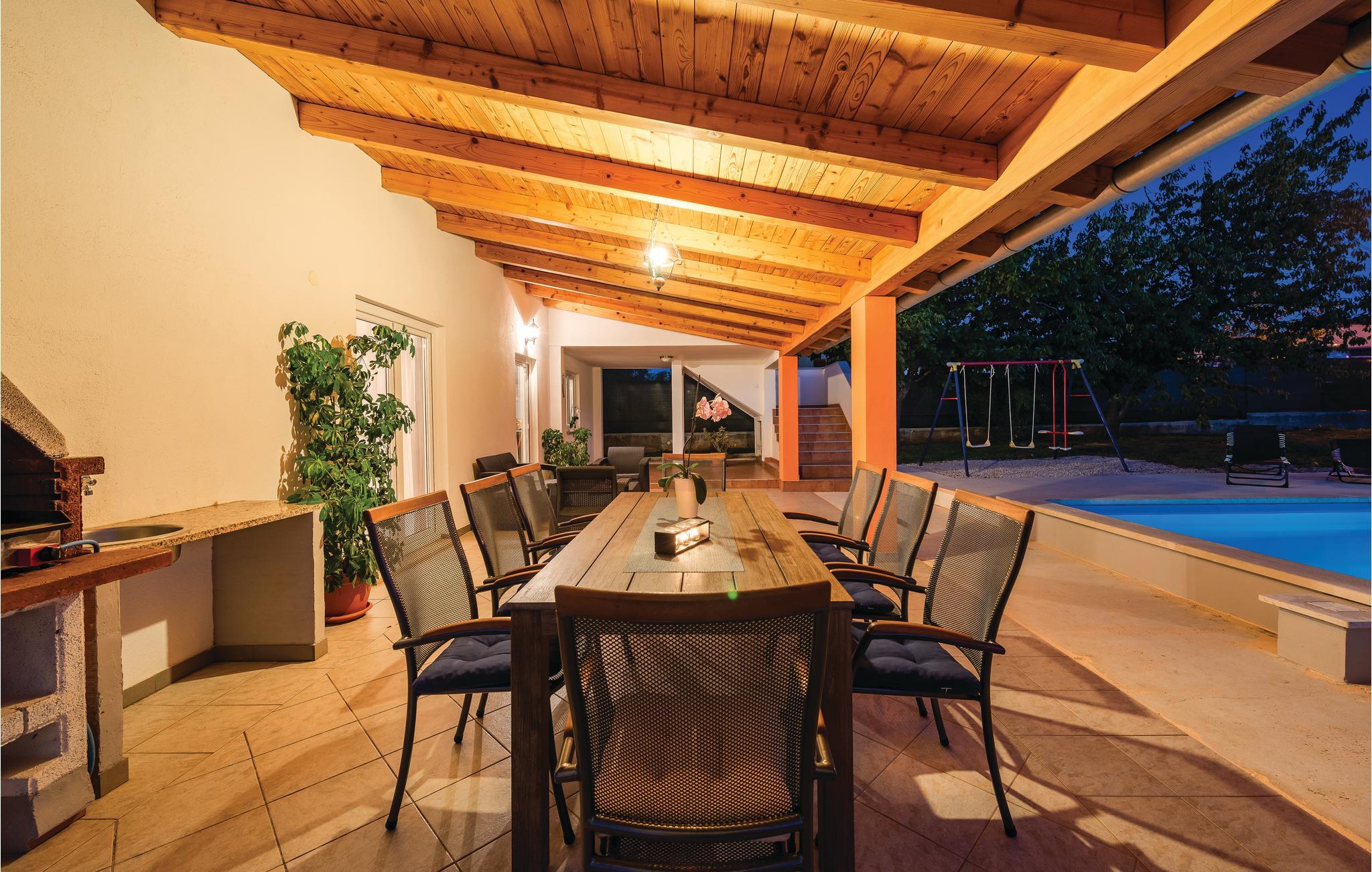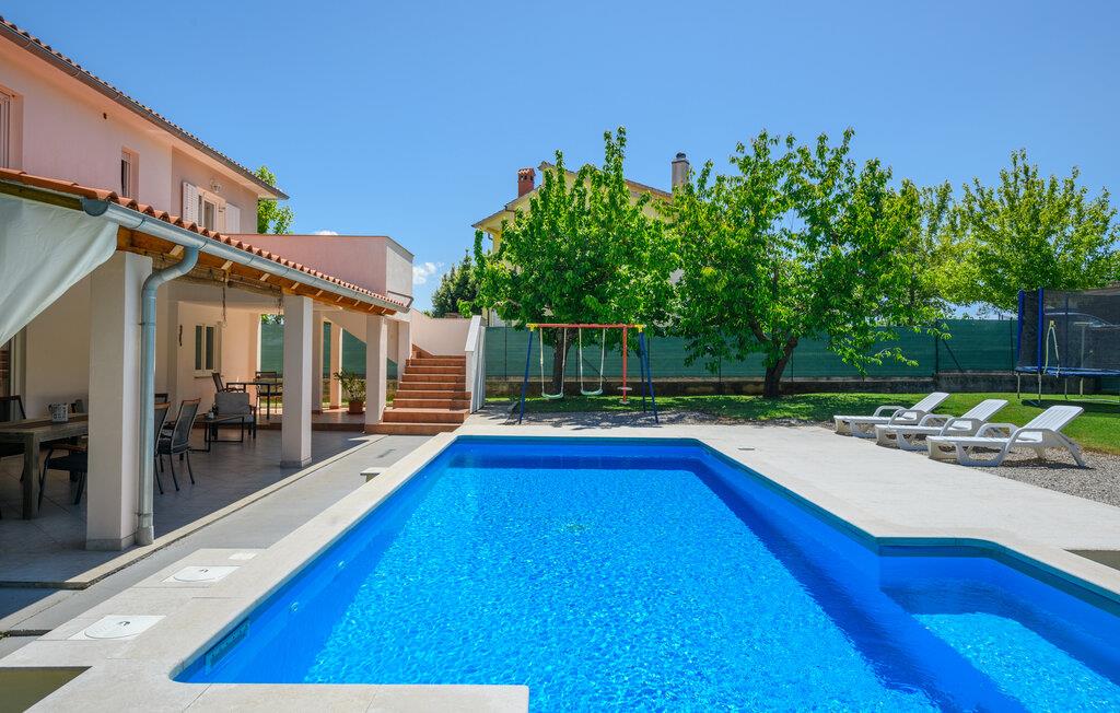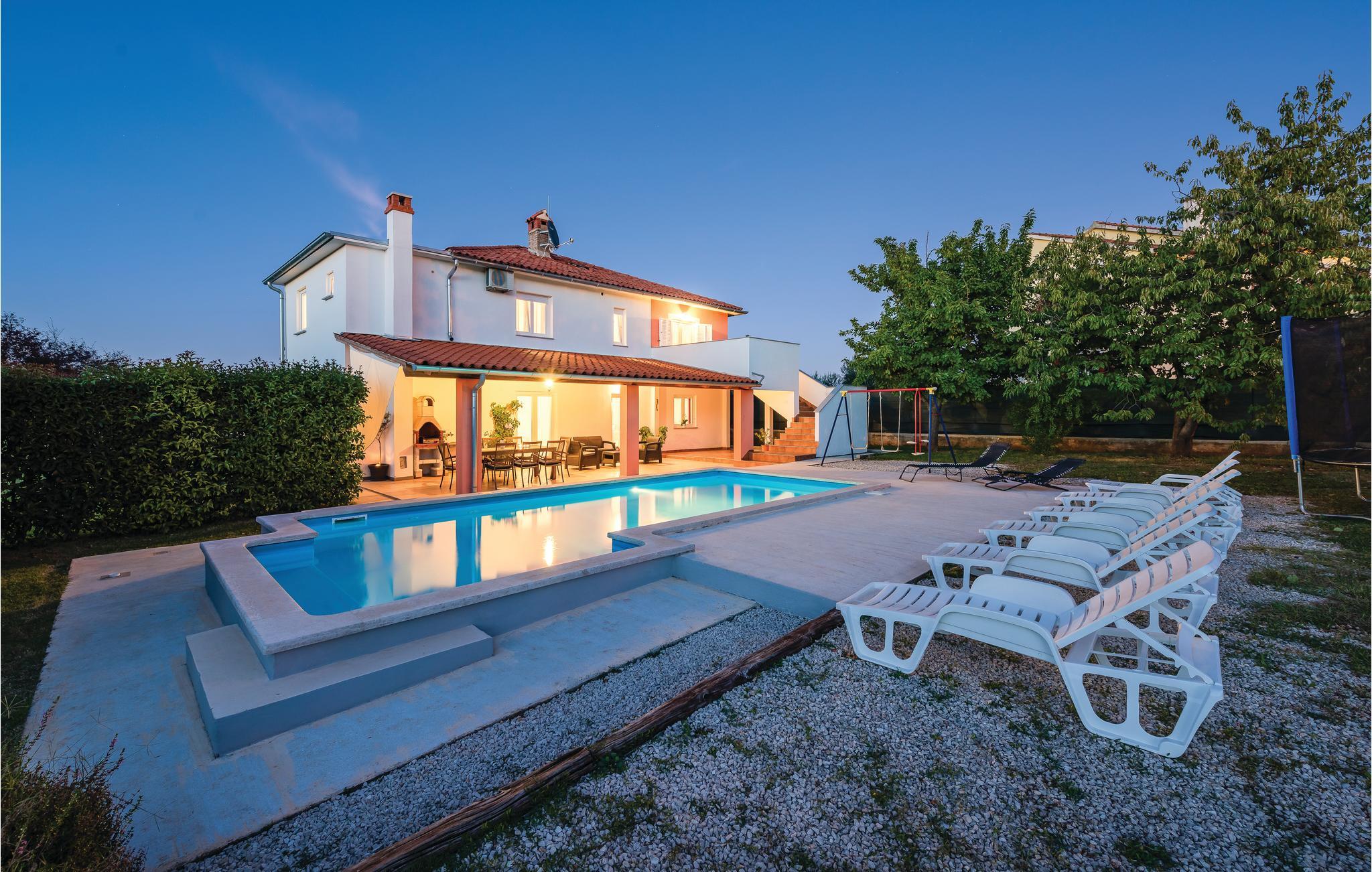 Dette dejlige feriehus med pool ligger i en romantisk meget lille landsby med kun få private huse. Fra feriehuset er der en betagende udsigt over landskabet og de omliggende grønne bakker. Huset er desuden godt udstyret så her kan I holde en usædvanlig komfortabel ferie. Soveværelserne på første sal har badeværelser en suite, klimaanlæg, terrasse eller balkon. I stueplan er der et fuldt udstyret køkken, en sute, sauna, fitness- og legeværelse. Nyd at grille lækker mad mens jeres børn spiller bold på den grønne plæne ved siden af huset. Ferieboligen er blevet renoveret og genopbygget i helt traditionel byggestil i sten, og er det perfekte sted til to familier eller en gruppe venner. Dertil er der heller ikke langt herfra til alle interessante seværdigheder i Istrien.