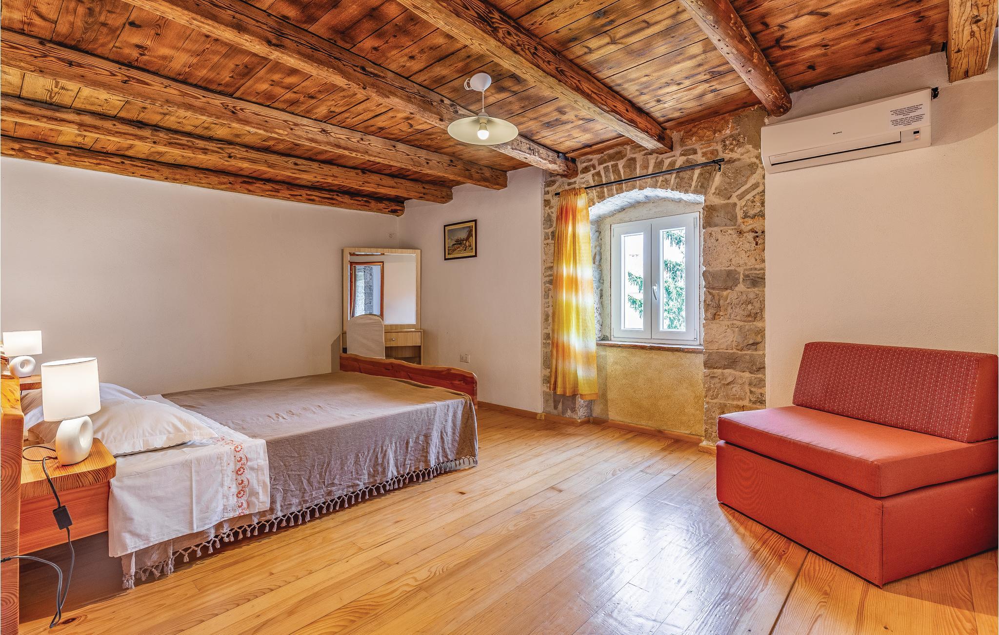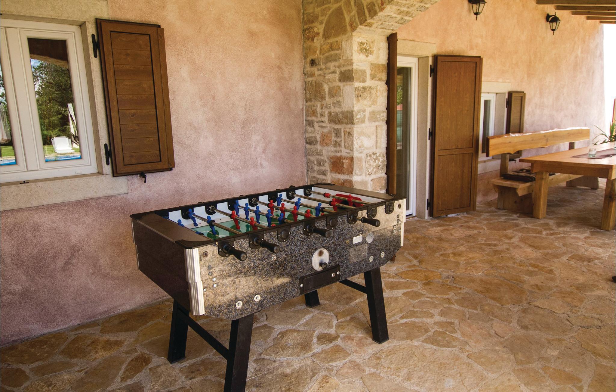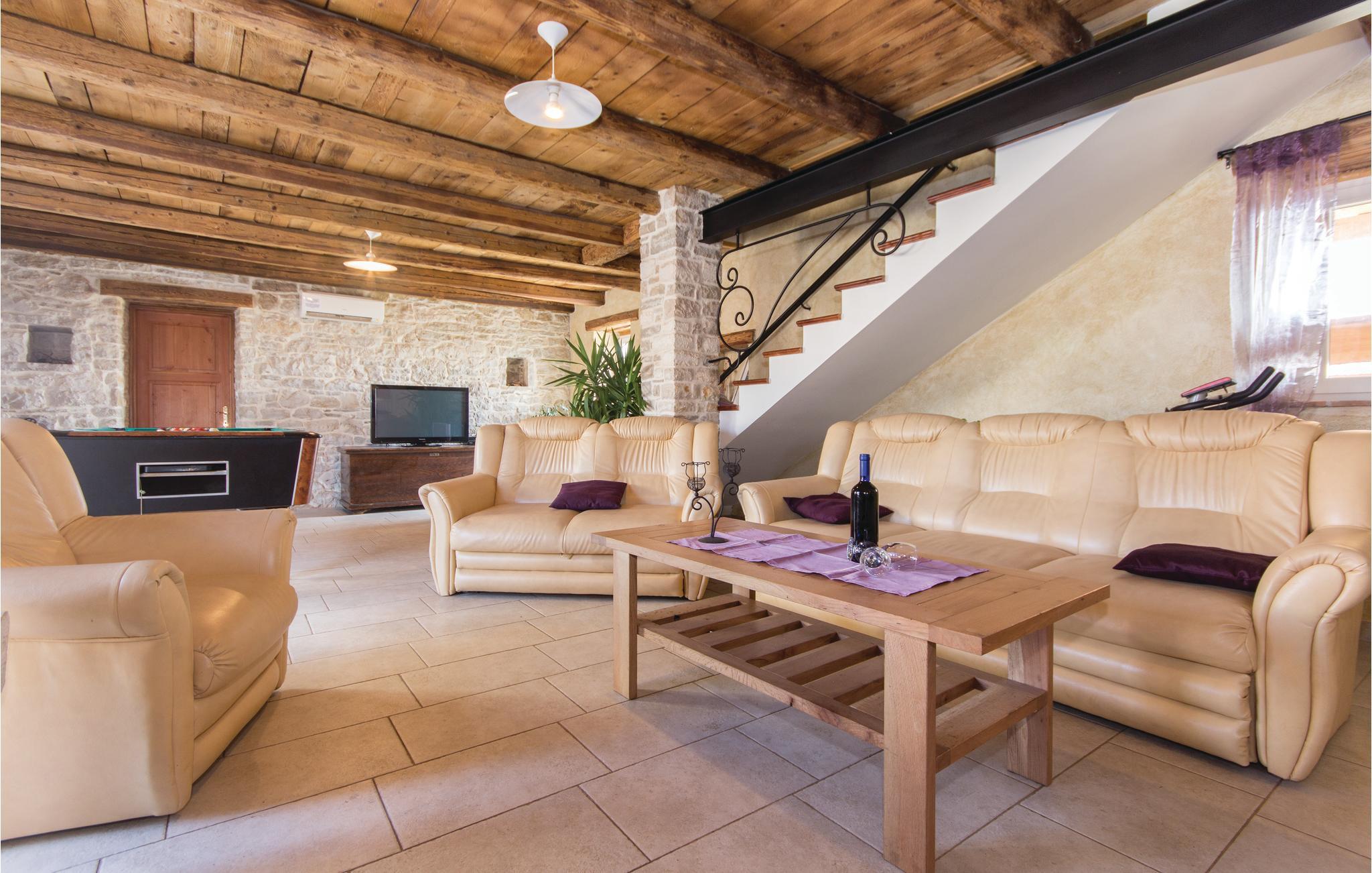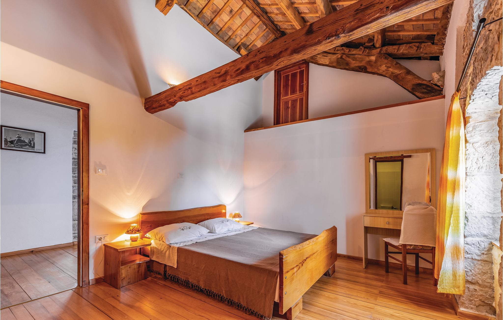 Dette typisk istriske feriehus, ligger nær den maleriske middelalderby Barban. Det er indrettet rustikt med møbler af god kvalitet, har smukke stenvægge og flotte trælofter med frilagte bjælker. Huset rummer fire soveværelser, hvert bekvemt med eget badeværelse og klimaanlæg. I stueplan er der et stort værelse med kamin, et fuldt udstyret køkken med alle hjælpemidler, hvor det er nemt at tilberede lækker feriemad, og med spisehjørne og på terrassen står grillen hvis I ikke har lyst til at lave mad indendørs. Tag en forfriskende svømmetur i poolen i den smukke have og nyd de fredelige landlige omgivelser. Her er både en overdækket terrasse med bord og bænke, samt en altan der ligeledes er møbleret, hvor I kan nyde udsigten over landskaberne. Her er trådløst netværk så I kan følge med og holde kontakt med dem derhjemme. Grunden er helt indhegnet, så her kan I trygt lade børnene lege mens I slapper af. Nær huset er det muligt at købe ind i en lille butik. Et unikt hus til en unik dejlig ferie.