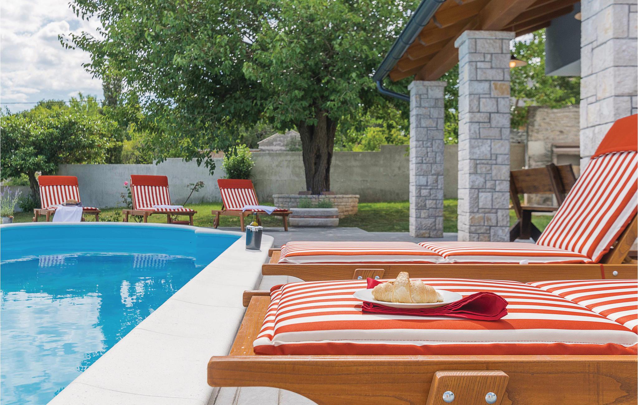 I hjertet af Istrien, i den lille by Manjadvorci, ligger dette feriehus med pool på en indhegnet grund. Feriedomicilets gunstige beliggenhed gør det muligt at tage på udflugter på kryds og tværs gennem Istrien. Til de aktive feriegæster er der en adrenalinpark og en hesteranch lige i nærheden. Tag på opdagelse i området og besøg de mange hyggelige småbyer, og besøg også de større byer Porec, Rovinj og Pula med mange former for kultur, underholdning og et rigt udvalg af restauranter, de nærmeste strande ligger i byerne Krnica og Duga uvala. Se frem til en uforglemmelig dejlig ferie i dette feriehus.