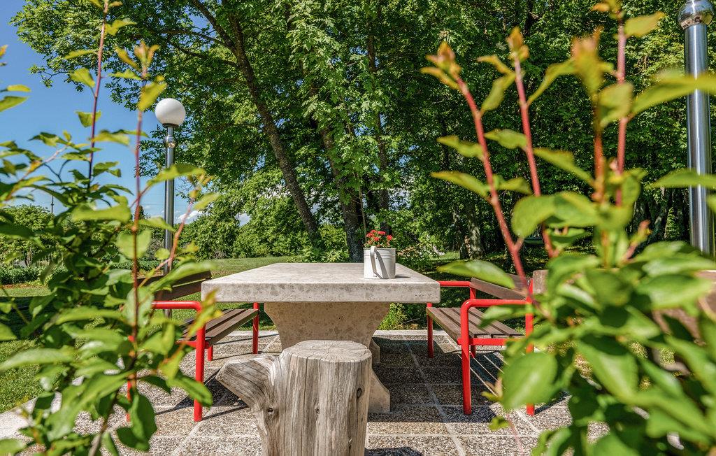 Lejligheden er indrettet med meget træ og kan rumme 6 personer i 2 soveværelser. Det ligger på en stor grund med en græsplæne og smukke planter, hvor du kan finde et skyggefuldt sted selv på varme dage. Du kan nyde dagens første kaffe på lejlighedens altan eller afslutte dagen med en kølig drink.