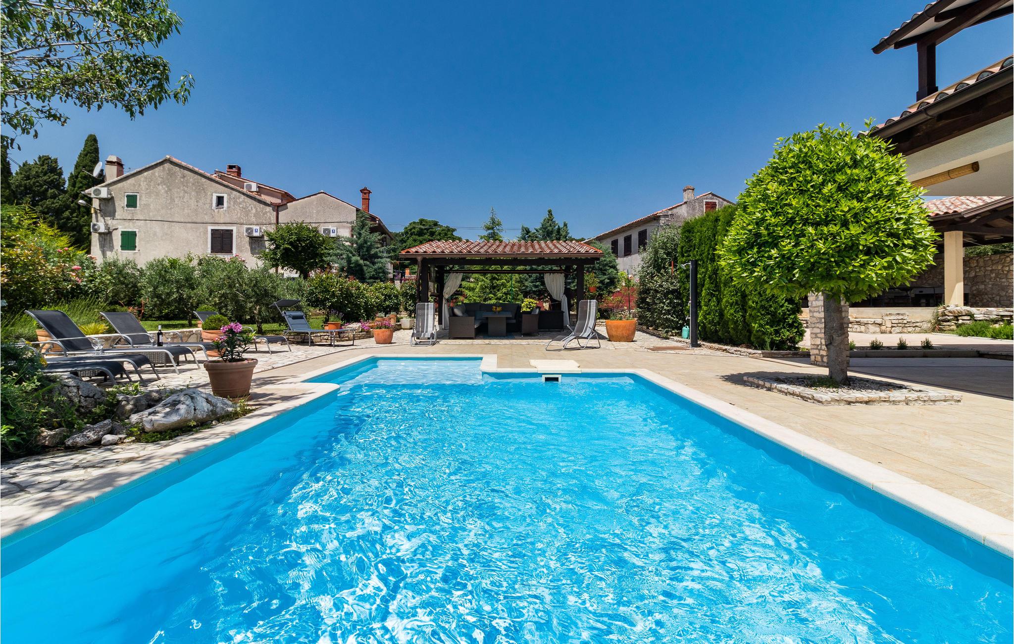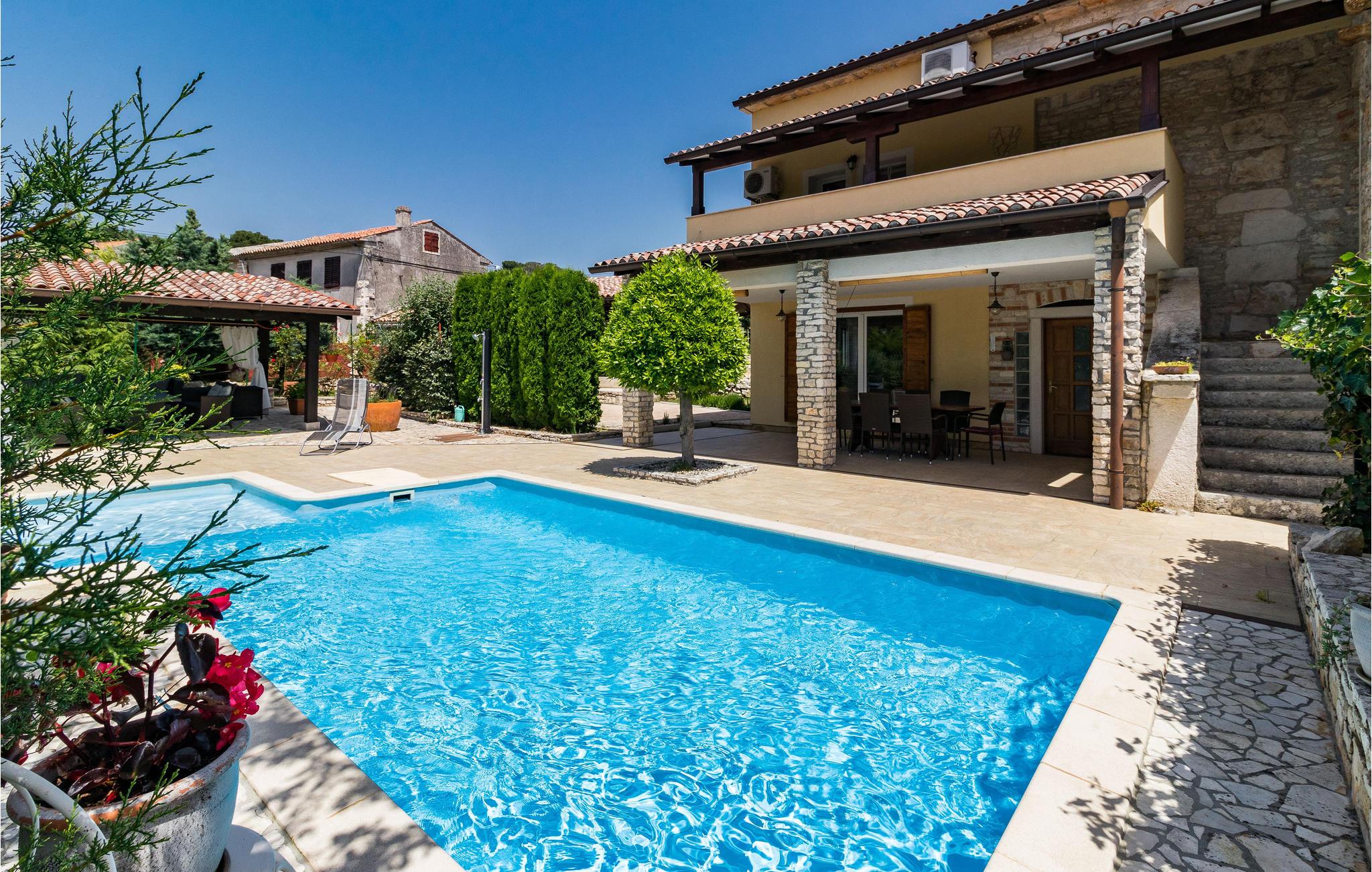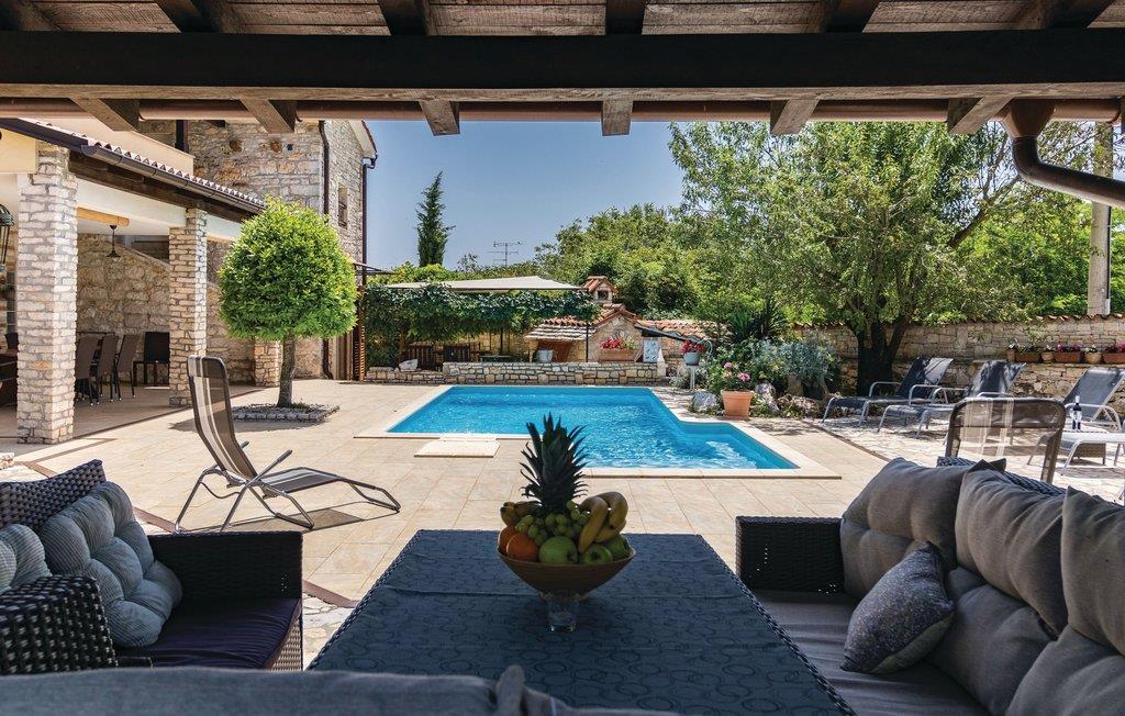 Dette vidunderlige swimmingpoolhus ligger i den lille landsby Manjadvorci. I indretningen indgår både rustikke og moderne interiør. Værelserne er rummelige og hvert soveværelse har eget privat bad. I stueetagen ligger et soveværelse samt et badeværelset til gangbesværede. Færgehavnen Brestova, hvorfra I kan tage til øerne Cres og Losinj ligger kun ca. en times kørsel væk. Det er et must at besøge den smukke og berømte riviera ved Opatija. Også den charmerende gamle by Pula med bl.a. det romerske amfiteater er meget seværdigt. Den historiske lille by Labin med taltige udstillinger samt badebyen Rabac er helt sikkert et besøg værd. I umiddelbar nærhed ligger ranchen 'Barba Tone', hvor I kan deltage i rideundervisning og tage med på rideudflugter. Der er desuden mulighed for terapeutisk ridning. I nærheden ligger en traditionel konoba, hvor der serveres hjemmelavede specialiteter og vin.