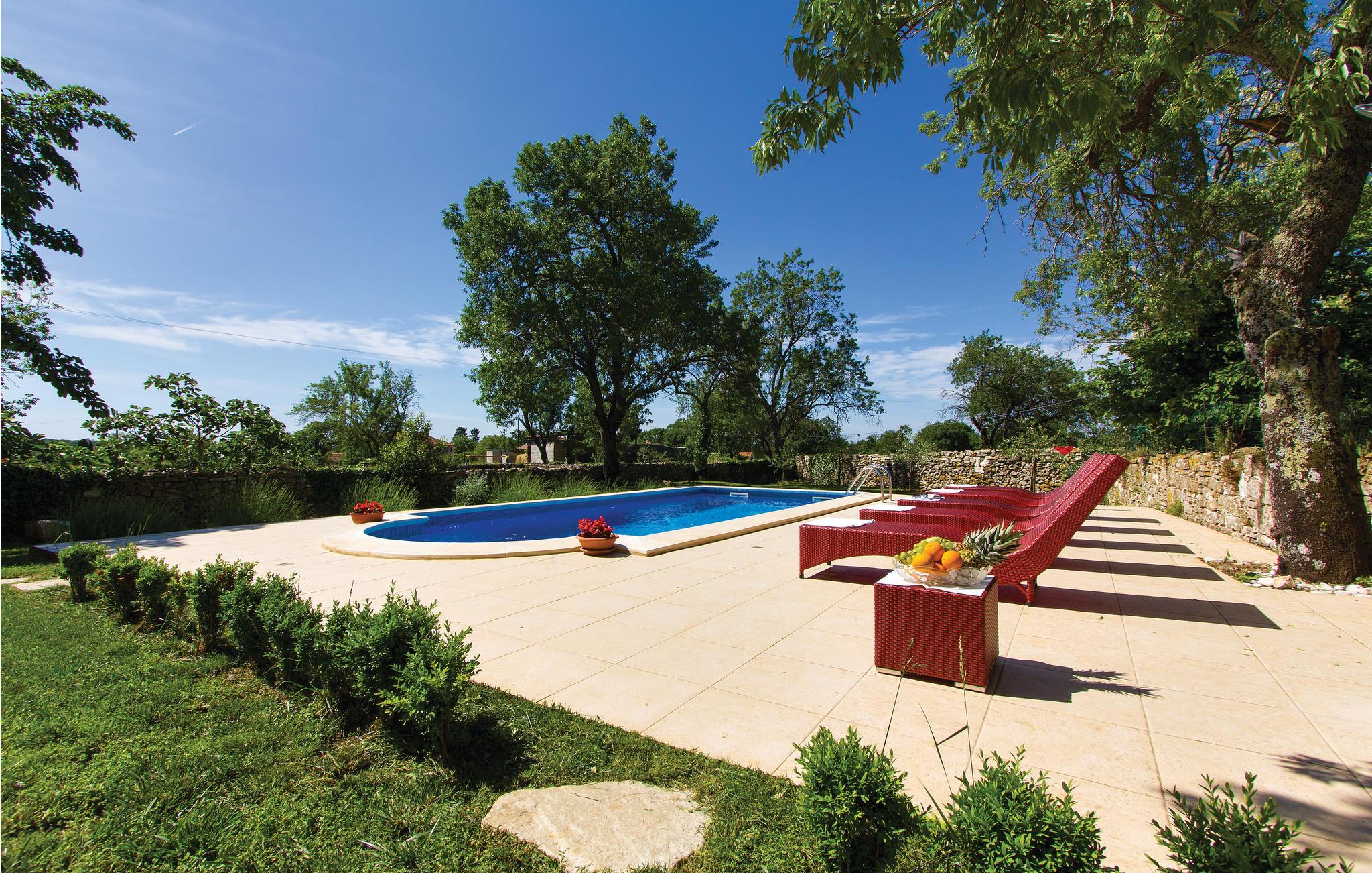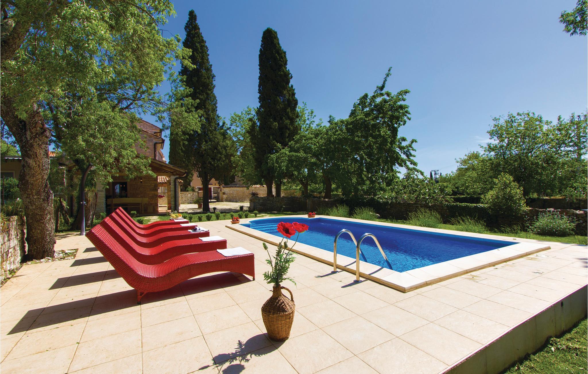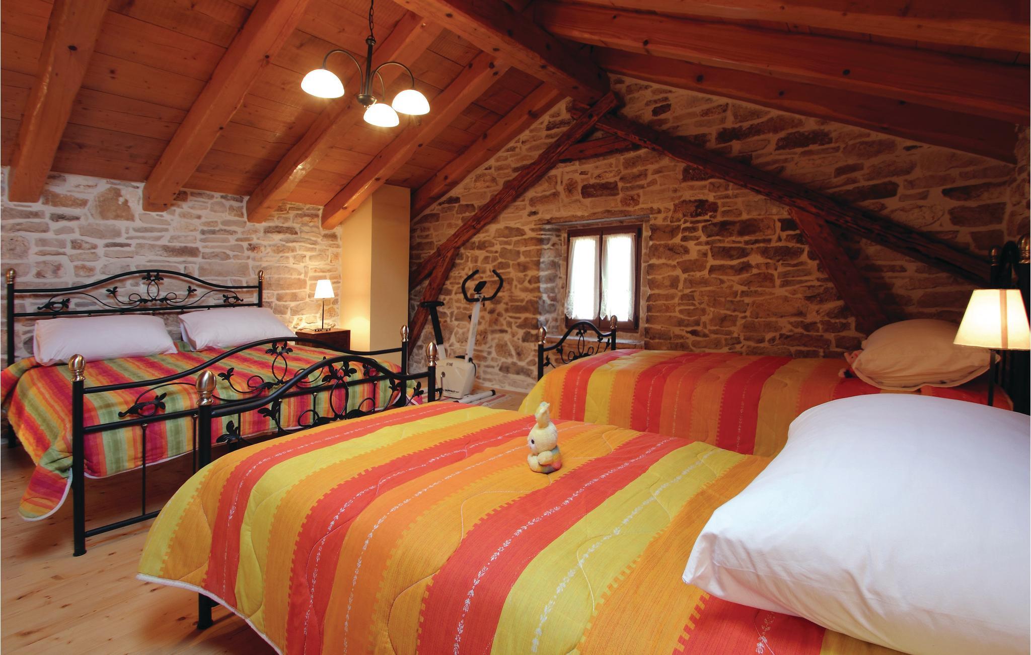 I en lille, romantisk landsby i Istriens landlige idyl ligger dette herlige feriehus med swimmingpool. Huset er rustikt indrettet og bygget karakteristisk for regionen. Stuen med kamin og spisekrog ligger i stueetagen, mens de 3 soveværelserne med tilhørende badeværelser ligger ovenpå.