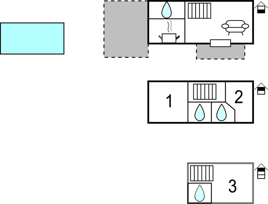 Soveværelse (nr. 2) - 1 Soveplads. (Enkeltseng(e)). 2 Sovepladser. (Dobbeltseng(e)).