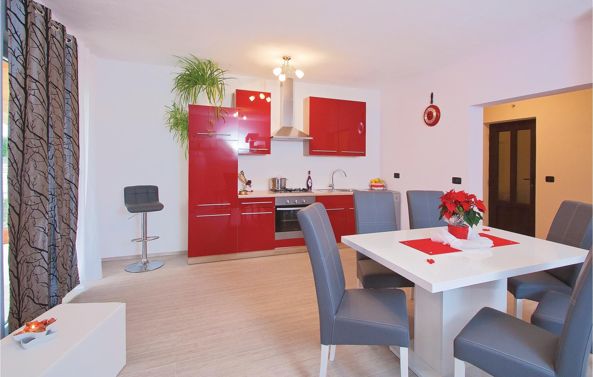 Denne moderne ferielejlighed ligger i landlige omgivelser, perfekt til drømmeferie med familie eller venner. Lejligheden som lever op til nutidens krav til komfort, ligger i stueplan, i den lille by Orbanici og rummer to soveværelser og et komfortabelt køkken der er åbent mod stuen hvor der også er en spisekrog. Fra stuen går i direkte ud på den overdækkede terrasse, hvor det også er dejlig at spise dagens måltider. Da grunden er indhegnet og meget velplejet, er den oplagt til børnenes leg og boldspil. Her er både små fodboldmål og badmintonnet, der indbyder til leg udendørs. Besøg Glavanis Adventurepark og tag på rideture med Ranch Barba Tone. Nyd en indholdsrig ferie på den istriske halvø.