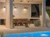 Underetagen er et åbent rum, gennem hvilket køkken, spisestue og opholdsstue strækker sig. Der er også et udekøkken med grill. Ovenpå er der tre soveværelser med tilknyttede badeværelser. Den smukke udendørspool tilbyder dig forfriskning på varme sommerdage. Poolen har desuden et hjørne med hydromassage, mens en anden fjerdedel er børnevenlig med en dybde på 39 cm.