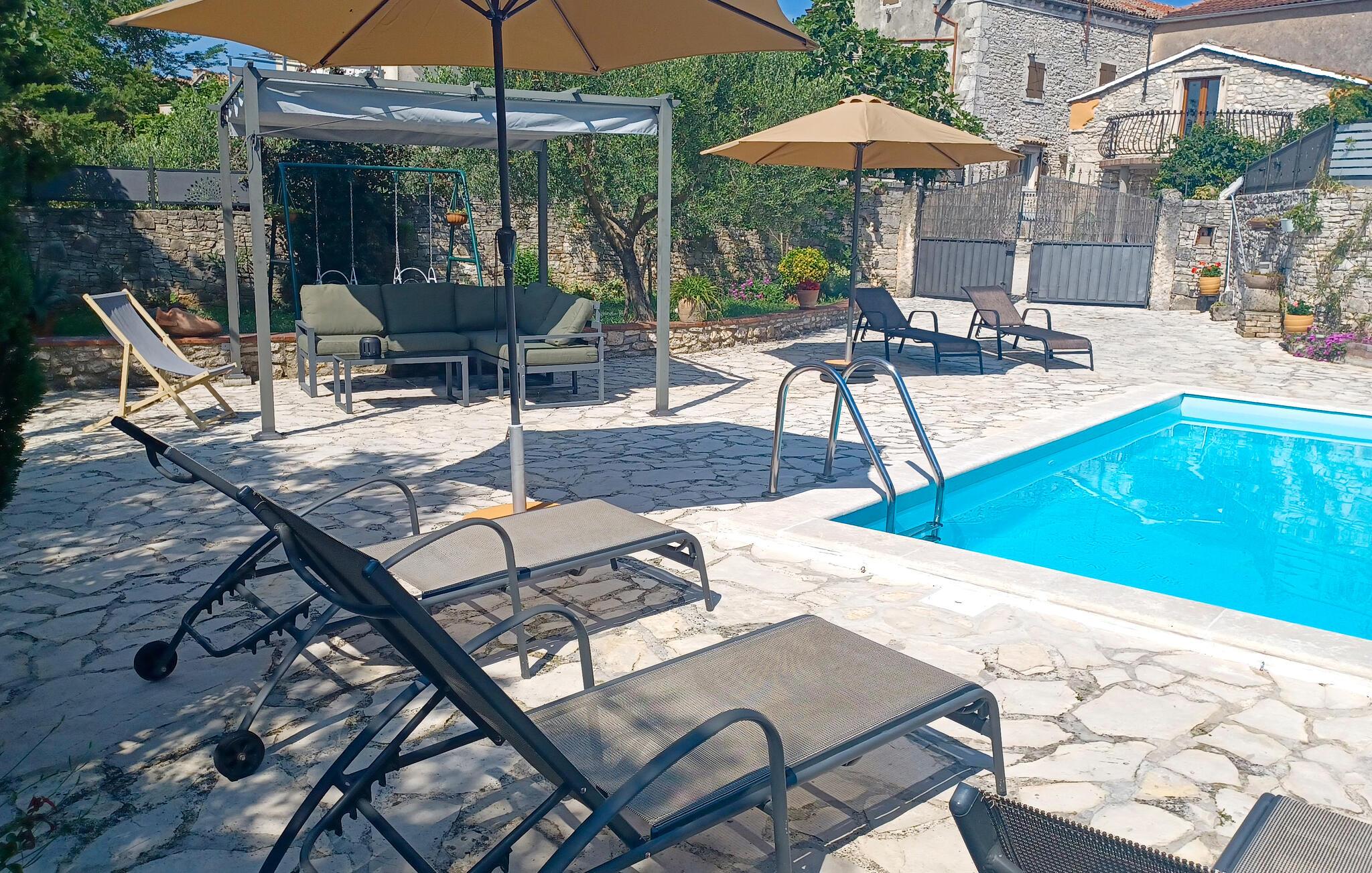 I et malerisk område ikke langt fra havet ligger dette skønne traditionelle feriehus, som er indrettet med kærlighed for detaljen. I den lille indhegnede og veholdte have med pool kan I tilbringe hyggelige og afslappende feriedage. Poolen ligger meidt på en solbeskinnet terrasse, med flere siddegrupper og behagelige solsenge. De mange strande og små bugter i Duga Uvala vil begejstre jer. Dog har området ud over strandene masser af andet at byde på. Besøg f.eks. de små, romantiske og hyggelige byer Motovun, Groznjan og Rovinj, der har mange seværdigheder. I en af de mange restauranter i området kan I prøve lækre og traditionelle retter. På mange restauranter kan du smage lækre og traditionelle retter, især hjemmelavet ost og den istriske Prosciutto (skinke). Hvad mange måske ikke er klar over, er Kroatien også kendt for både vilde asparges og trøfler. Und jer selv en uforglemmelig ferie i dette fortryllende feriehus.