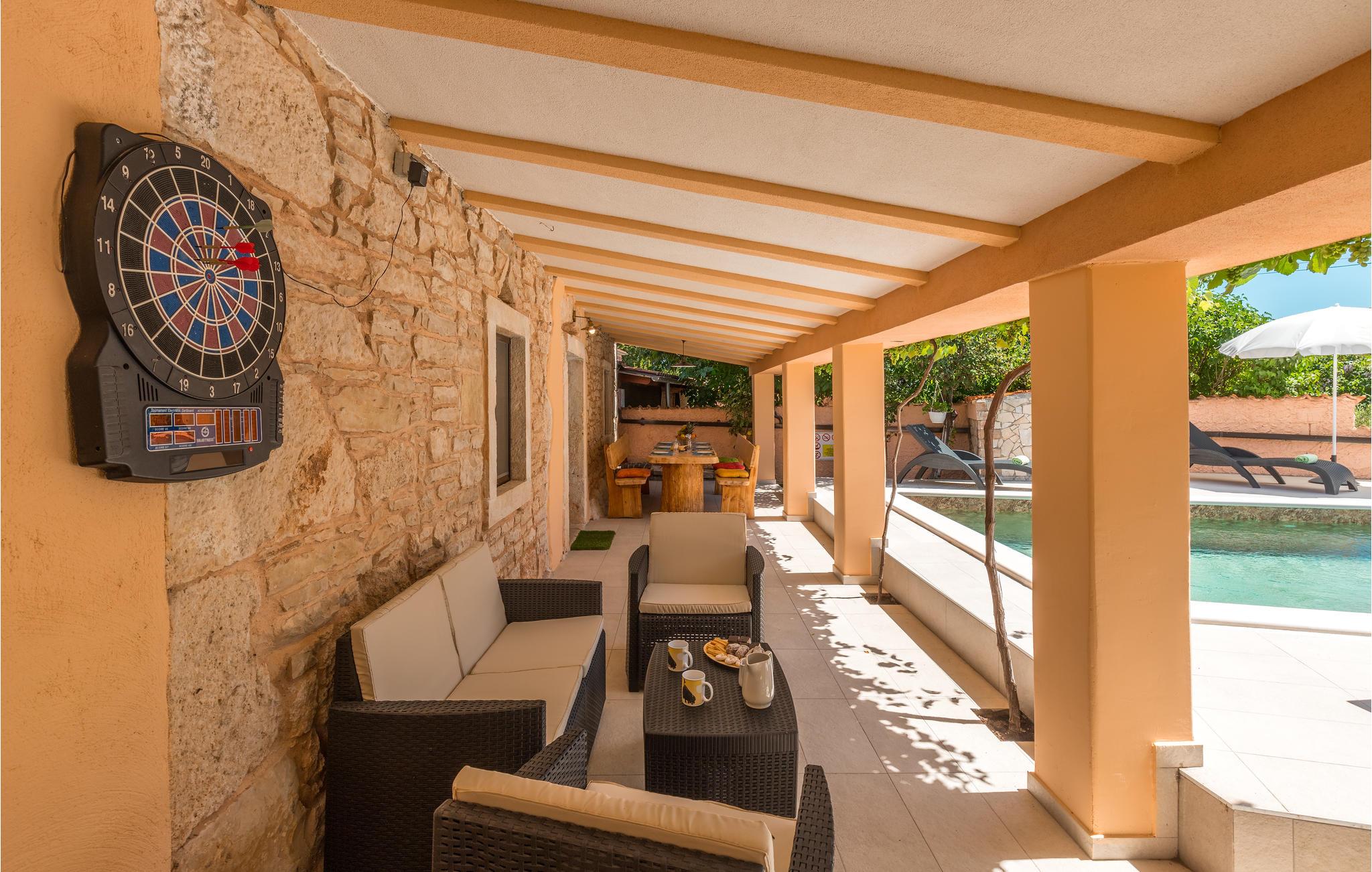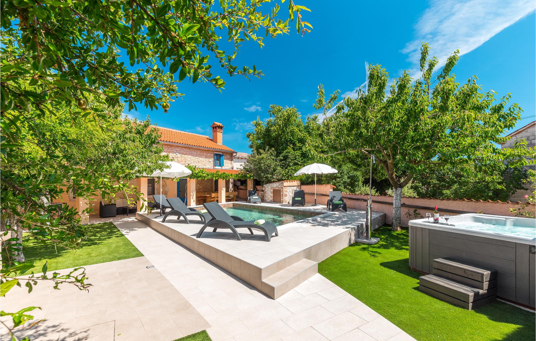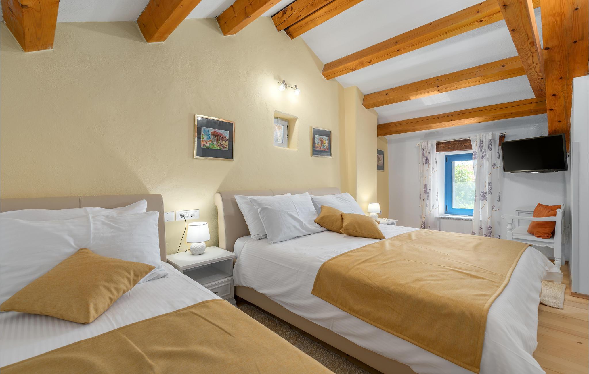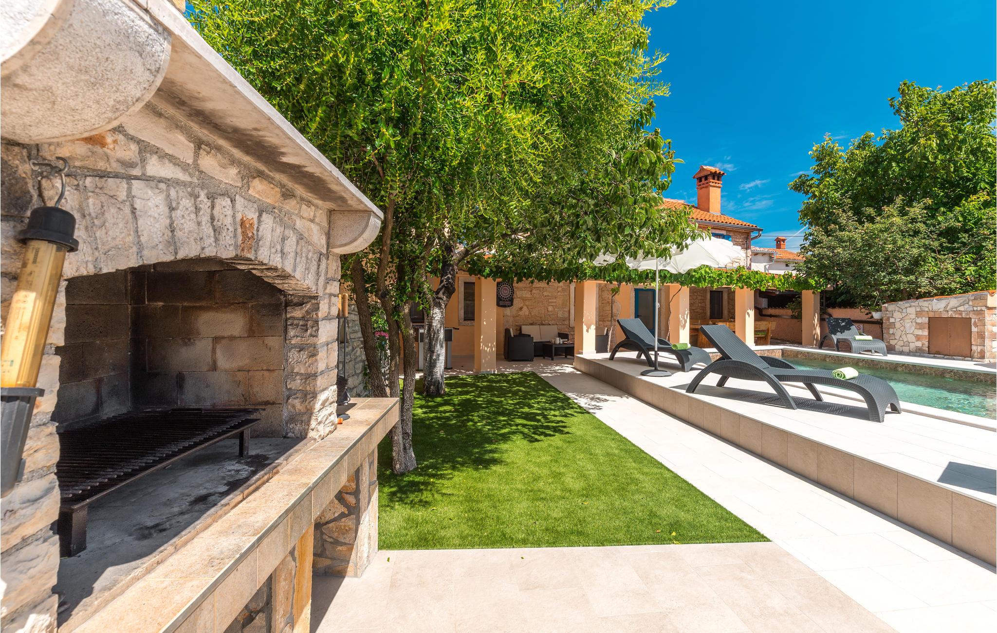 I hjertet af Istrien, i en lille malerisk by, langt fra hverdagens stress og jag, ligger dette rustikke stenhus i to enheder, der er perfekt til to familier eller en større vennekreds. Her kan I tage på lange vandreture i området, udforske de omkringliggende små charmerende landbyer på cykel, tage på en picnic eller køre til en lækker strand, hvor I kan bade og bare ligge og nyde livet. I kan også bare slappe af på den skyggefulde terrasse, der hører til huset eller more jer i den tilhørende swimmingpool eller infrarødsauna. Fire cykler står til jeres rådighed. Nyd ganske enkelt det sunde landliv i Istrien og slap af i krop og sjæl. I Barban kan I se mange mindesmærker fra barokken samt fra gotikken, f.eks. freskerne og de gagolitiske dokumenter, kirker og paladser, bymuren og riddererkonkurrencen "Trka na prstenac". Vi anbefaler jer en udflugt til Baredine, hvor I kan opleve den helt imponerende drypstenshule.