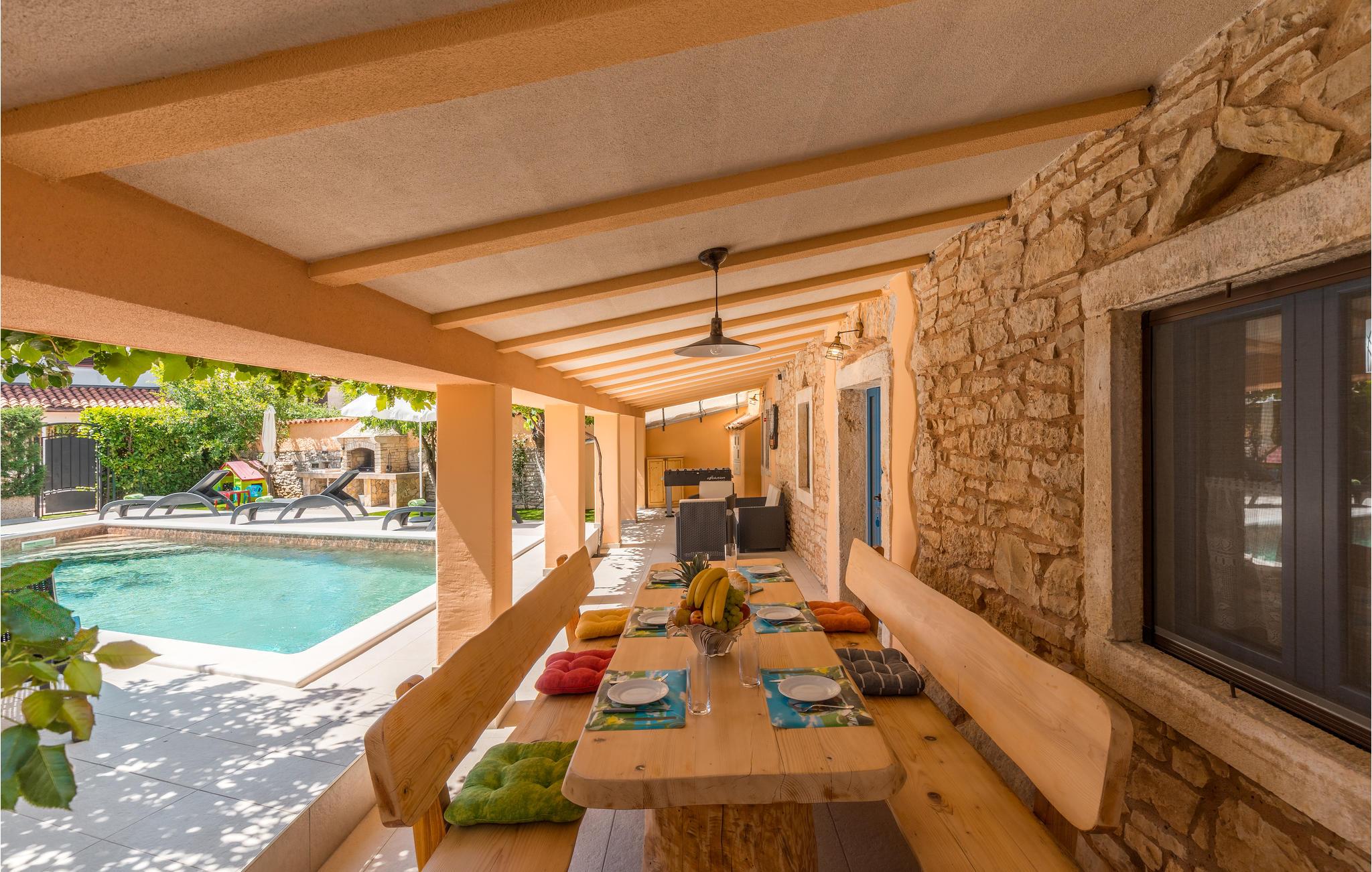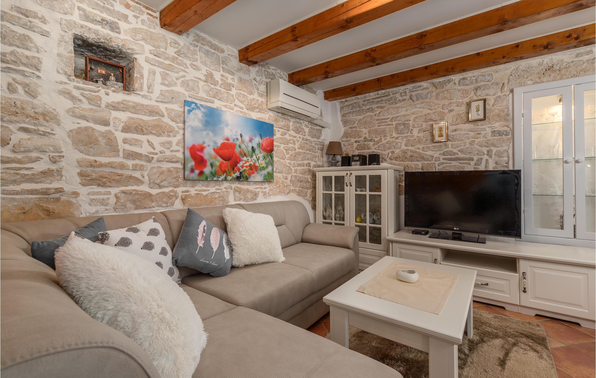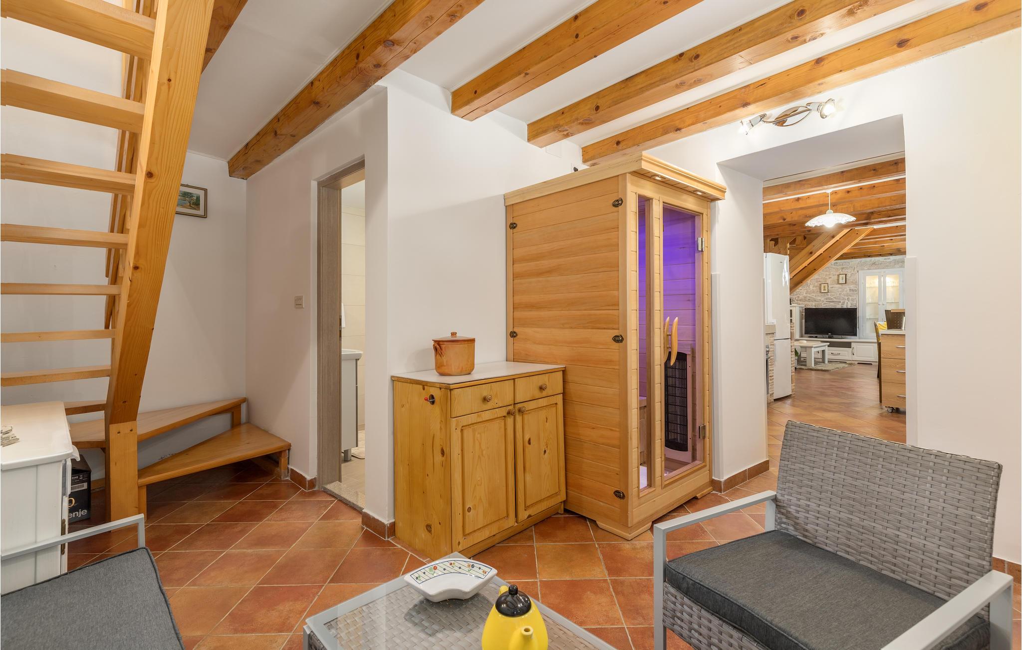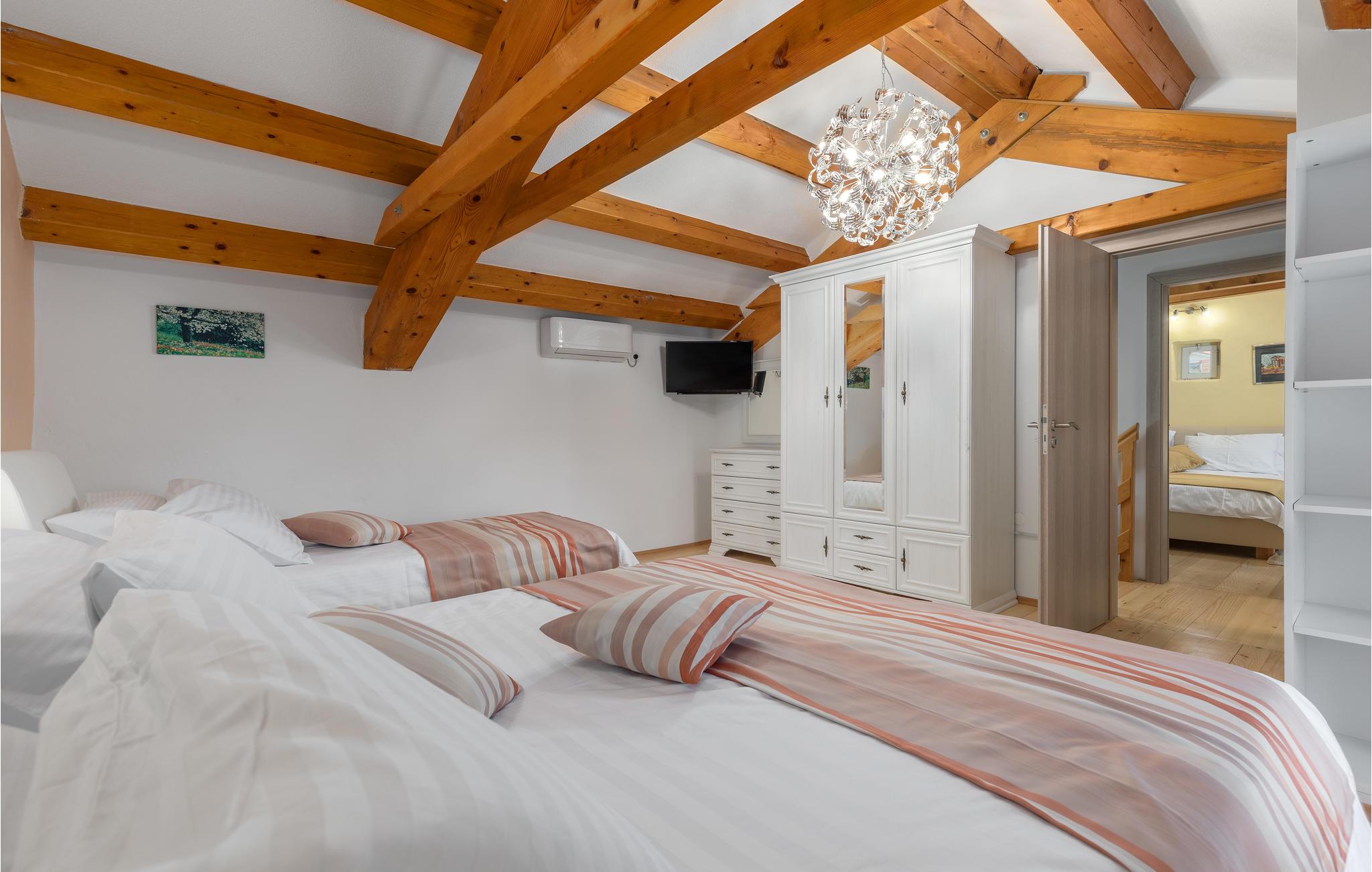 I hjertet af Istrien, i en lille malerisk by, langt fra hverdagens stress og jag, ligger dette rustikke stenhus i to enheder, der er perfekt til to familier eller en større vennekreds. Her kan I tage på lange vandreture i området, udforske de omkringliggende små charmerende landbyer på cykel, tage på en picnic eller køre til en lækker strand, hvor I kan bade og bare ligge og nyde livet. I kan også bare slappe af på den skyggefulde terrasse, der hører til huset eller more jer i den tilhørende swimmingpool eller infrarødsauna. Fire cykler står til jeres rådighed. Nyd ganske enkelt det sunde landliv i Istrien og slap af i krop og sjæl. I Barban kan I se mange mindesmærker fra barokken samt fra gotikken, f.eks. freskerne og de gagolitiske dokumenter, kirker og paladser, bymuren og riddererkonkurrencen "Trka na prstenac". Vi anbefaler jer en udflugt til Baredine, hvor I kan opleve den helt imponerende drypstenshule.