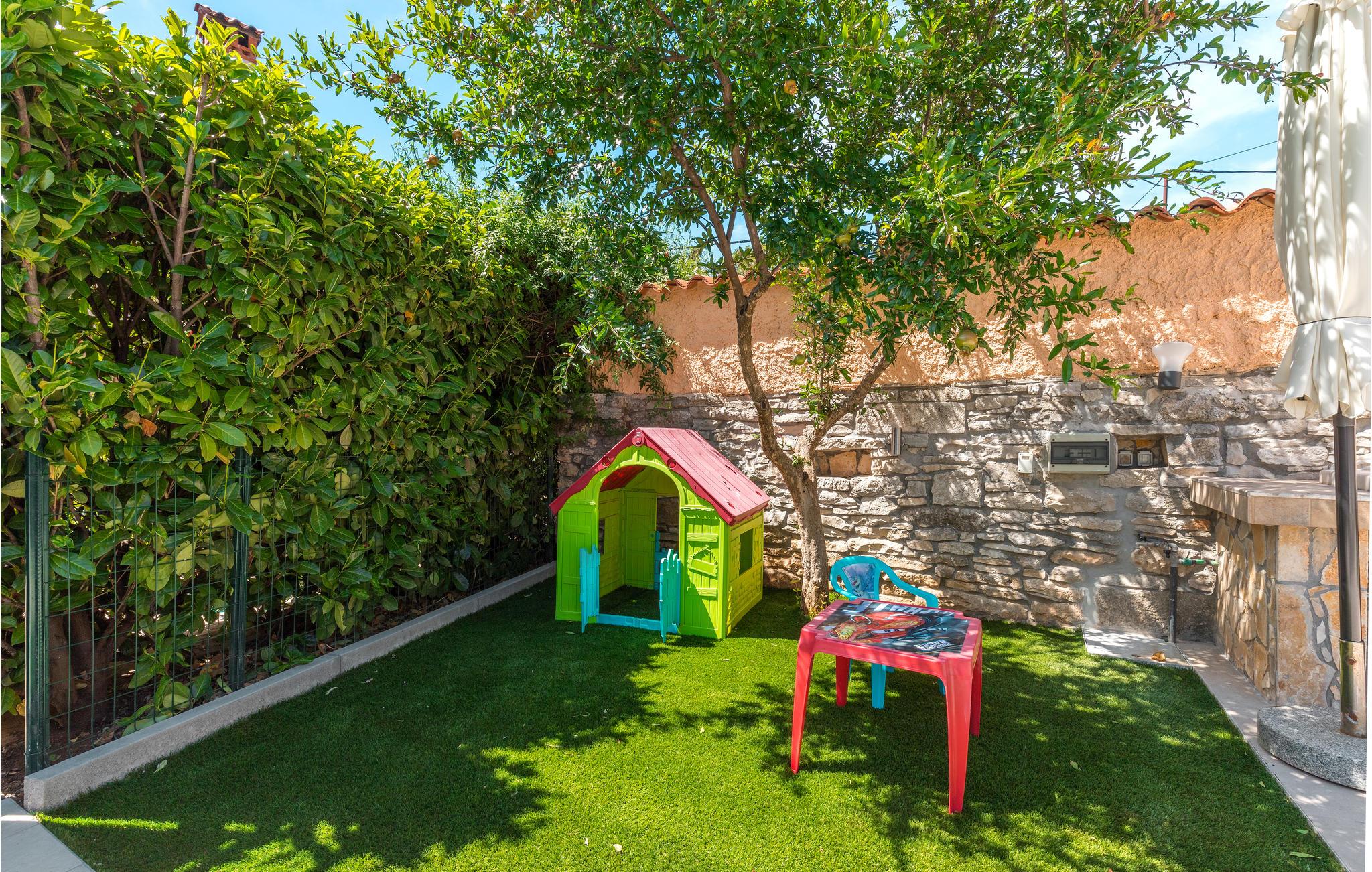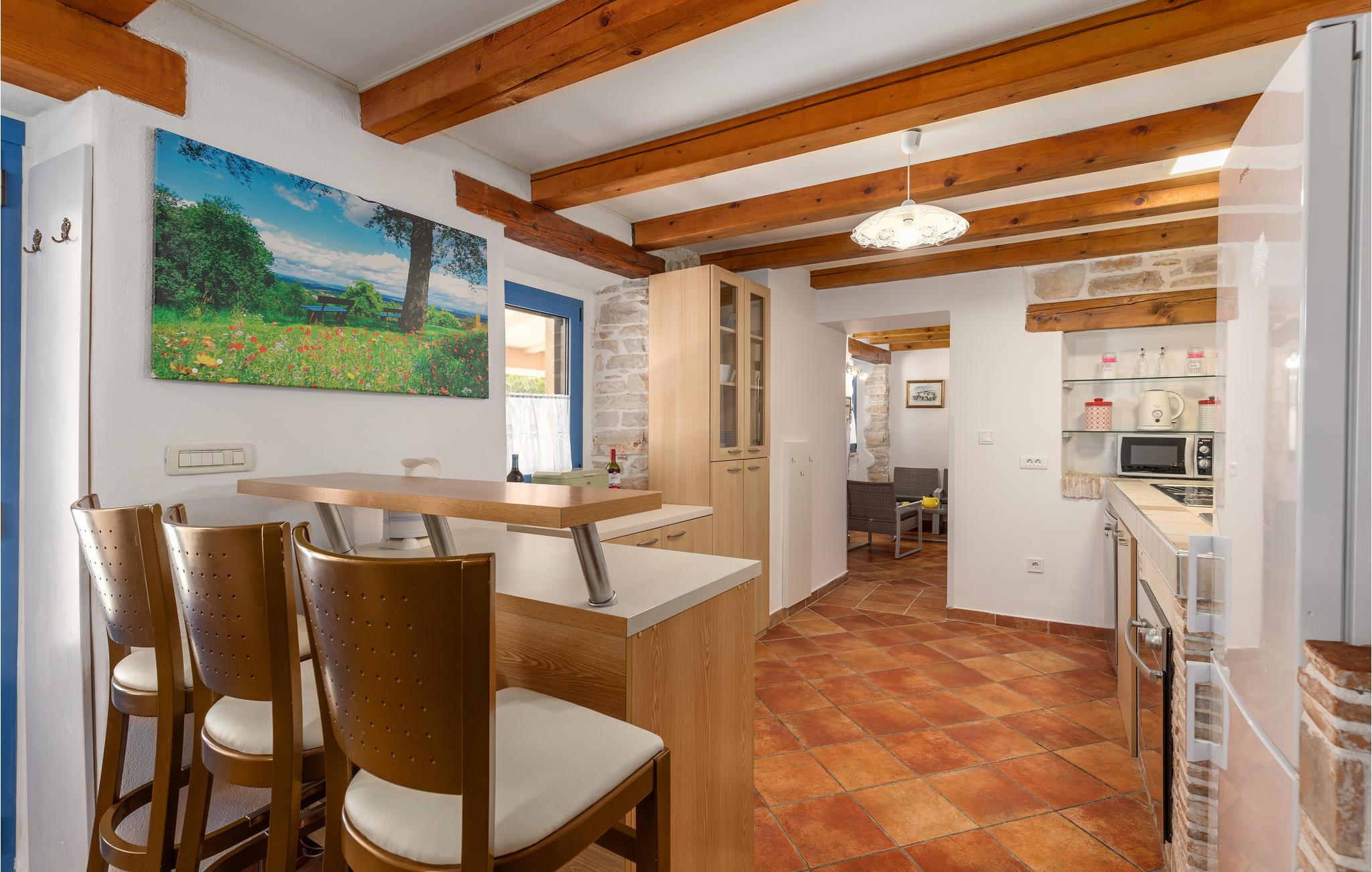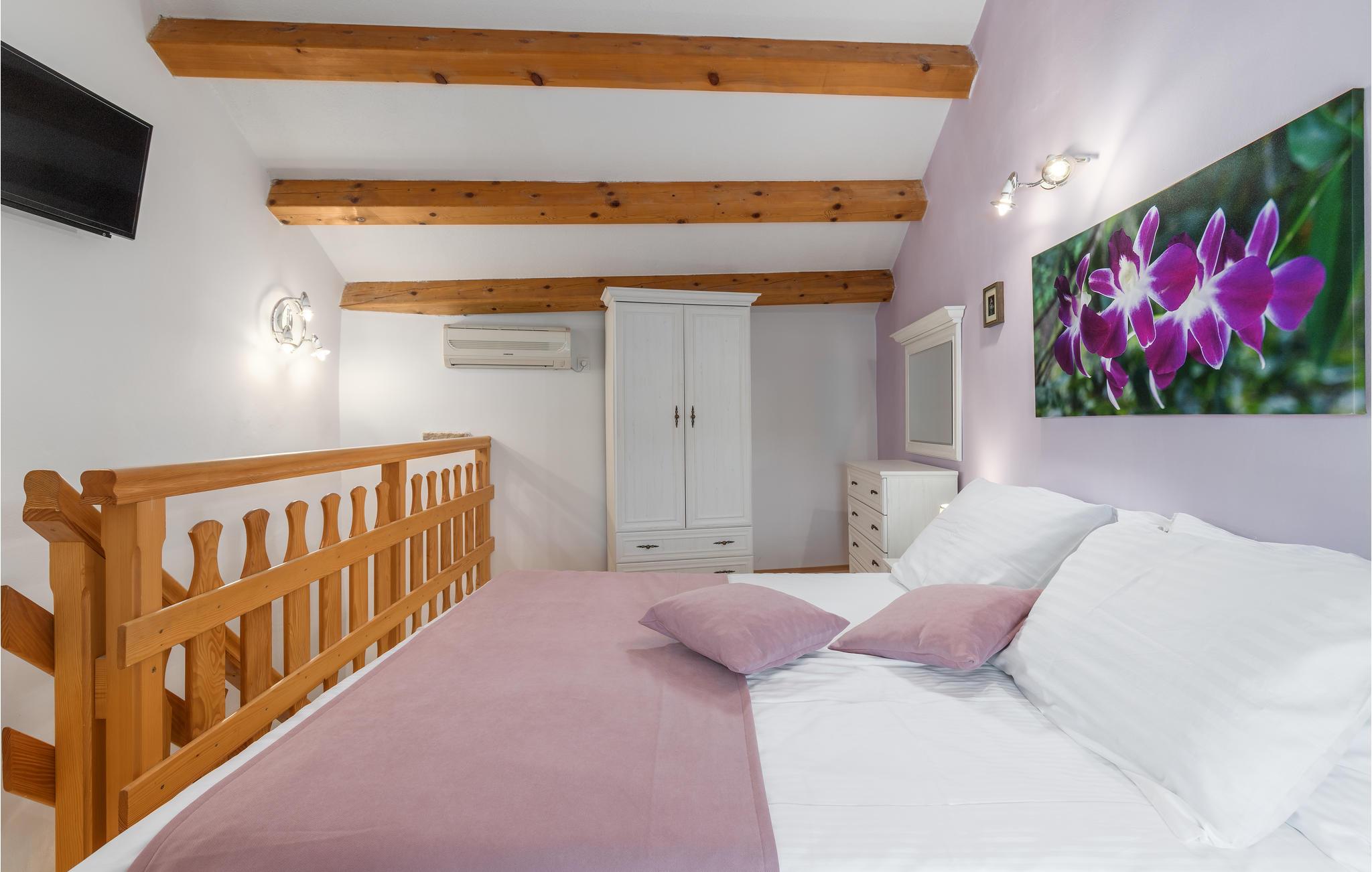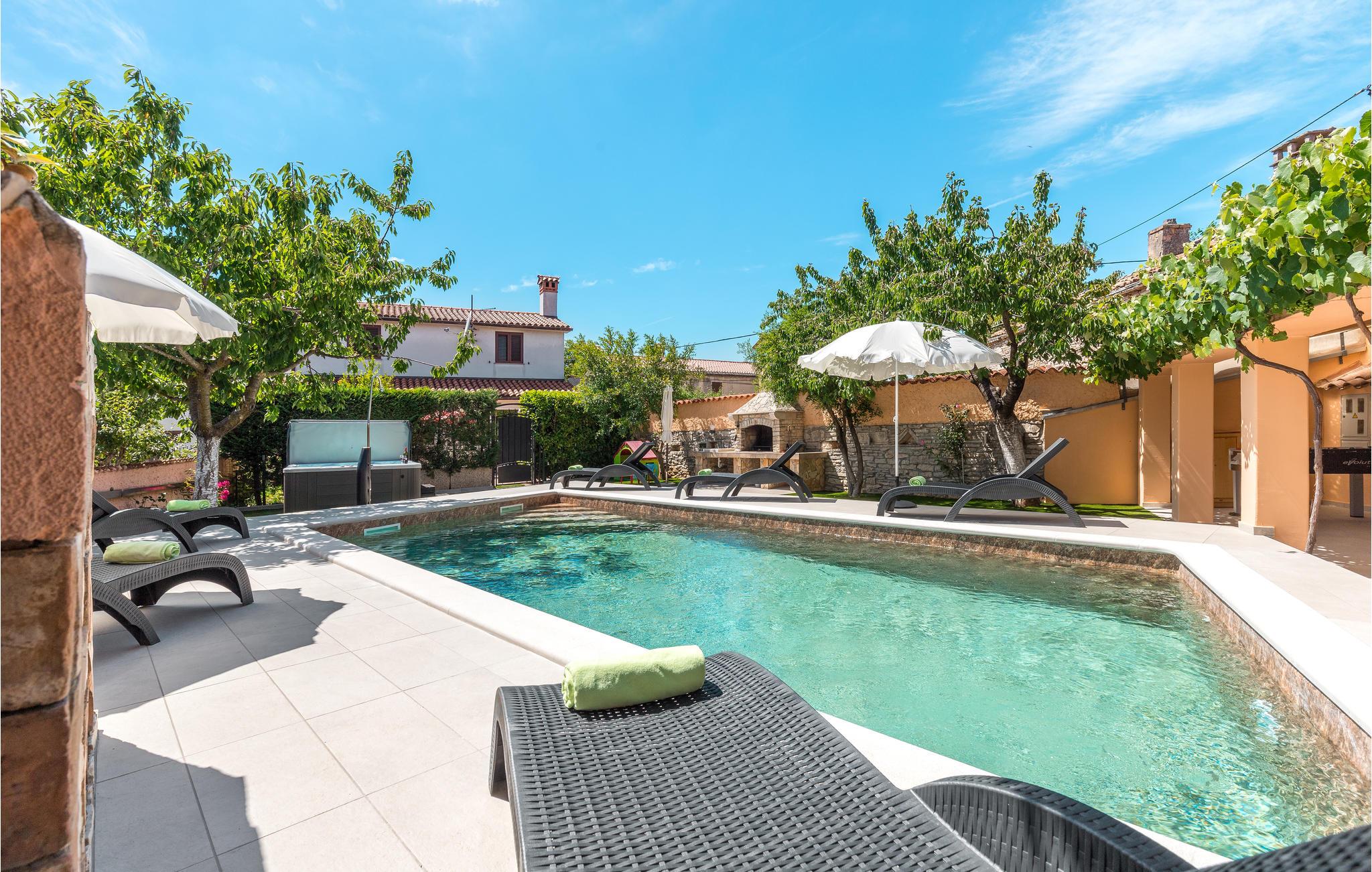 I hjertet af Istrien, i en lille malerisk by, langt fra hverdagens stress og jag, ligger dette rustikke stenhus i to enheder, der er perfekt til to familier eller en større vennekreds. Her kan I tage på lange vandreture i området, udforske de omkringliggende små charmerende landbyer på cykel, tage på en picnic eller køre til en lækker strand, hvor I kan bade og bare ligge og nyde livet. I kan også bare slappe af på den skyggefulde terrasse, der hører til huset eller more jer i den tilhørende swimmingpool eller infrarødsauna. Fire cykler står til jeres rådighed. Nyd ganske enkelt det sunde landliv i Istrien og slap af i krop og sjæl. I Barban kan I se mange mindesmærker fra barokken samt fra gotikken, f.eks. freskerne og de gagolitiske dokumenter, kirker og paladser, bymuren og riddererkonkurrencen "Trka na prstenac". Vi anbefaler jer en udflugt til Baredine, hvor I kan opleve den helt imponerende drypstenshule.