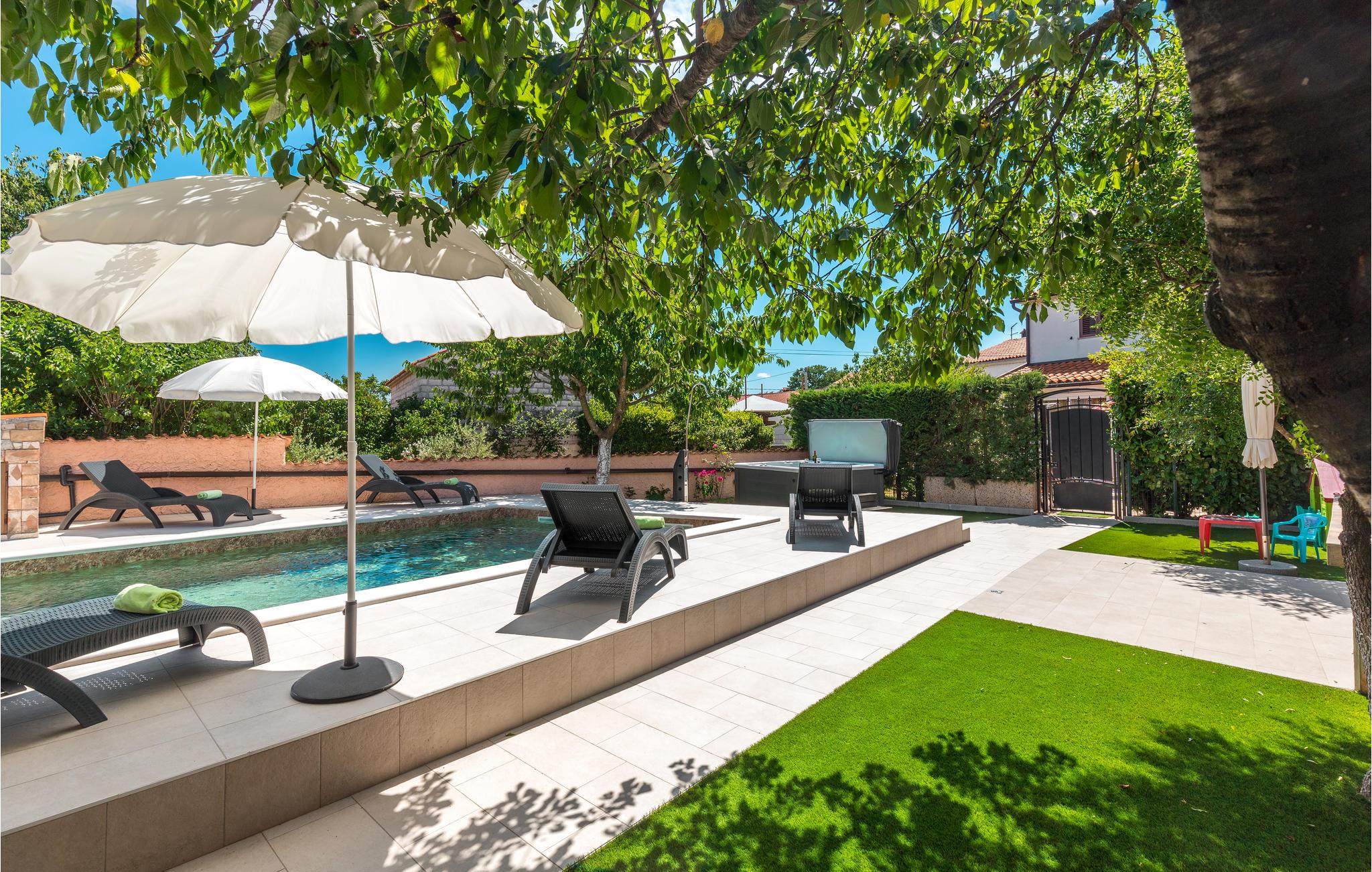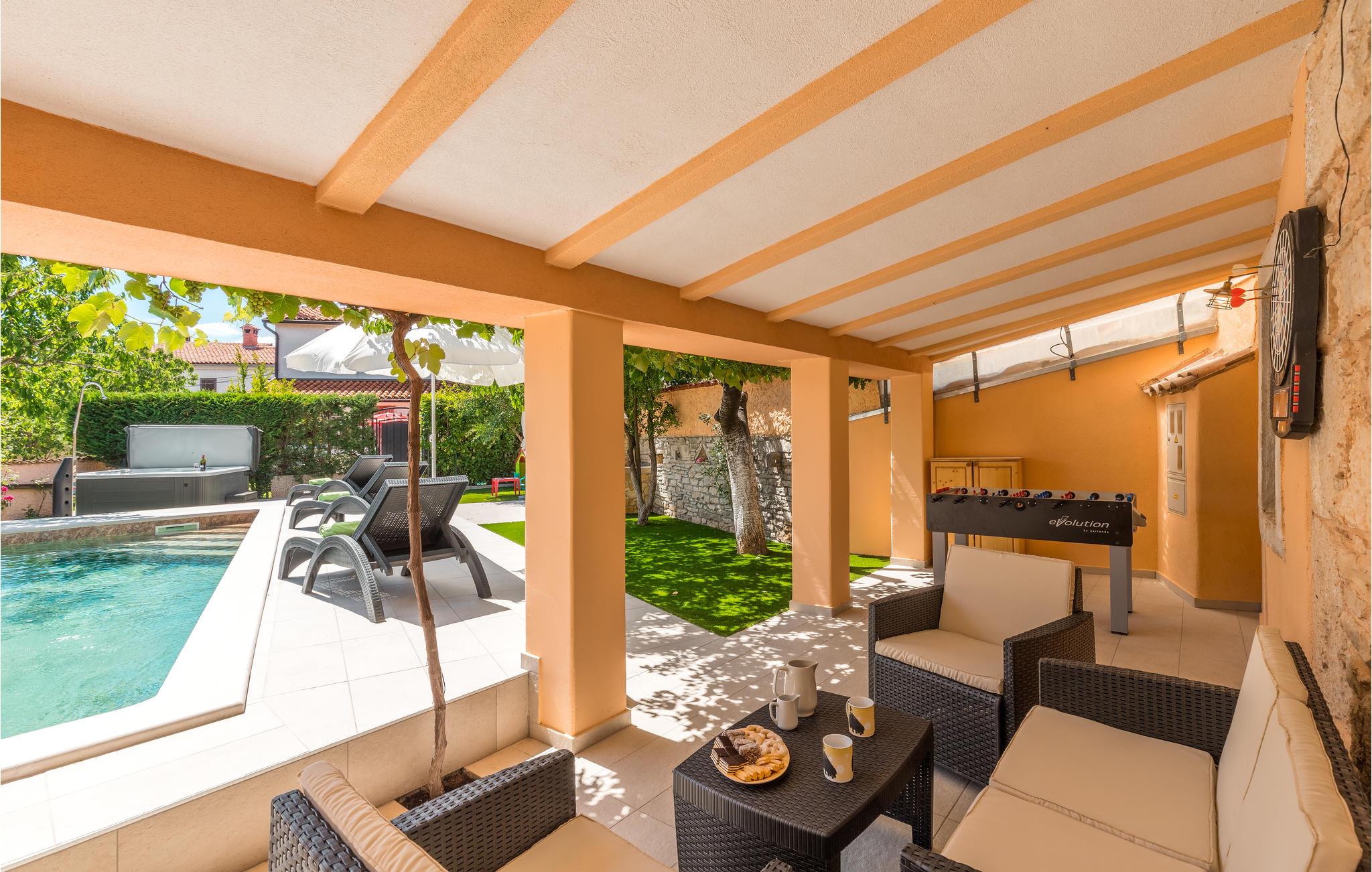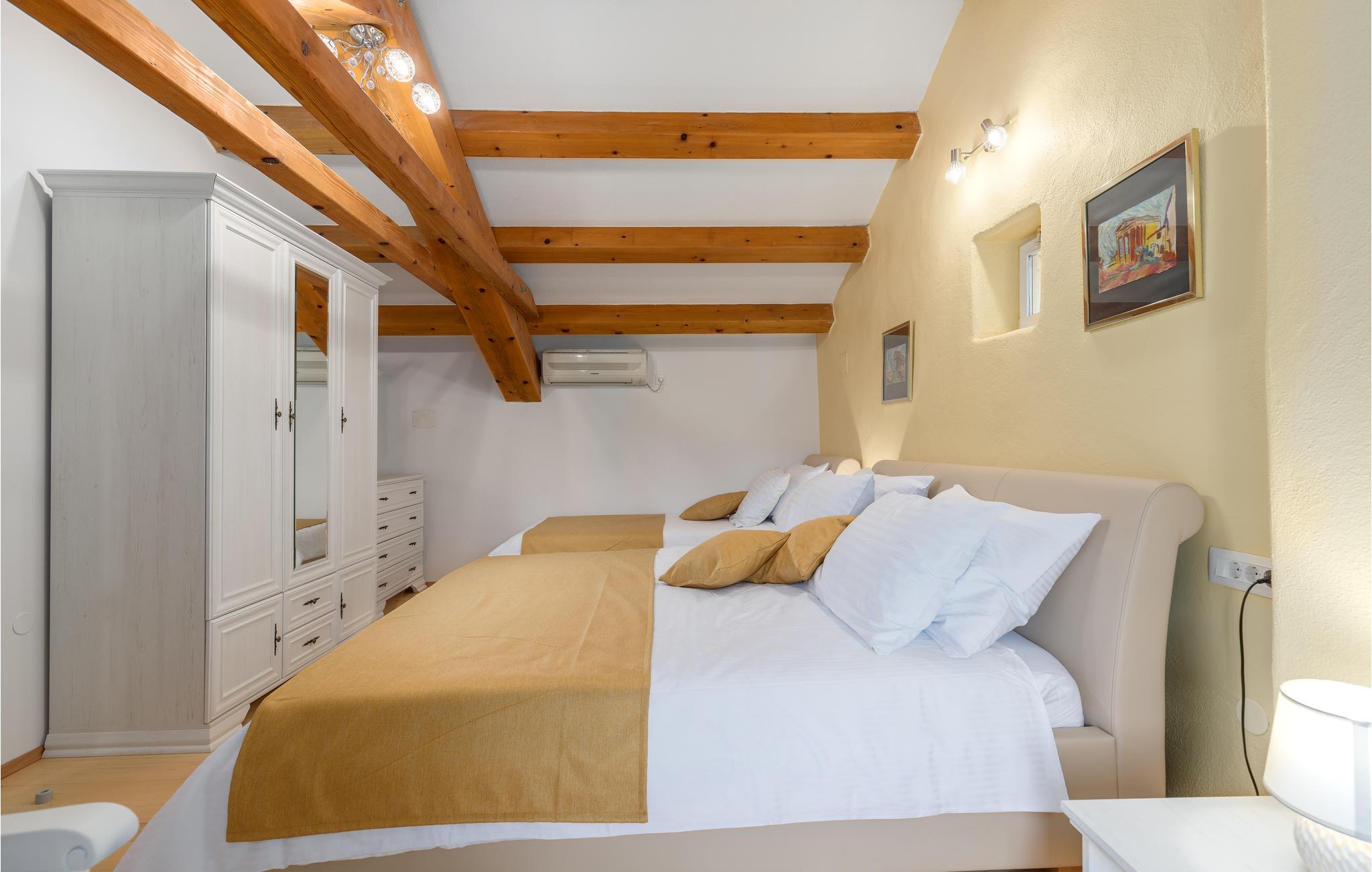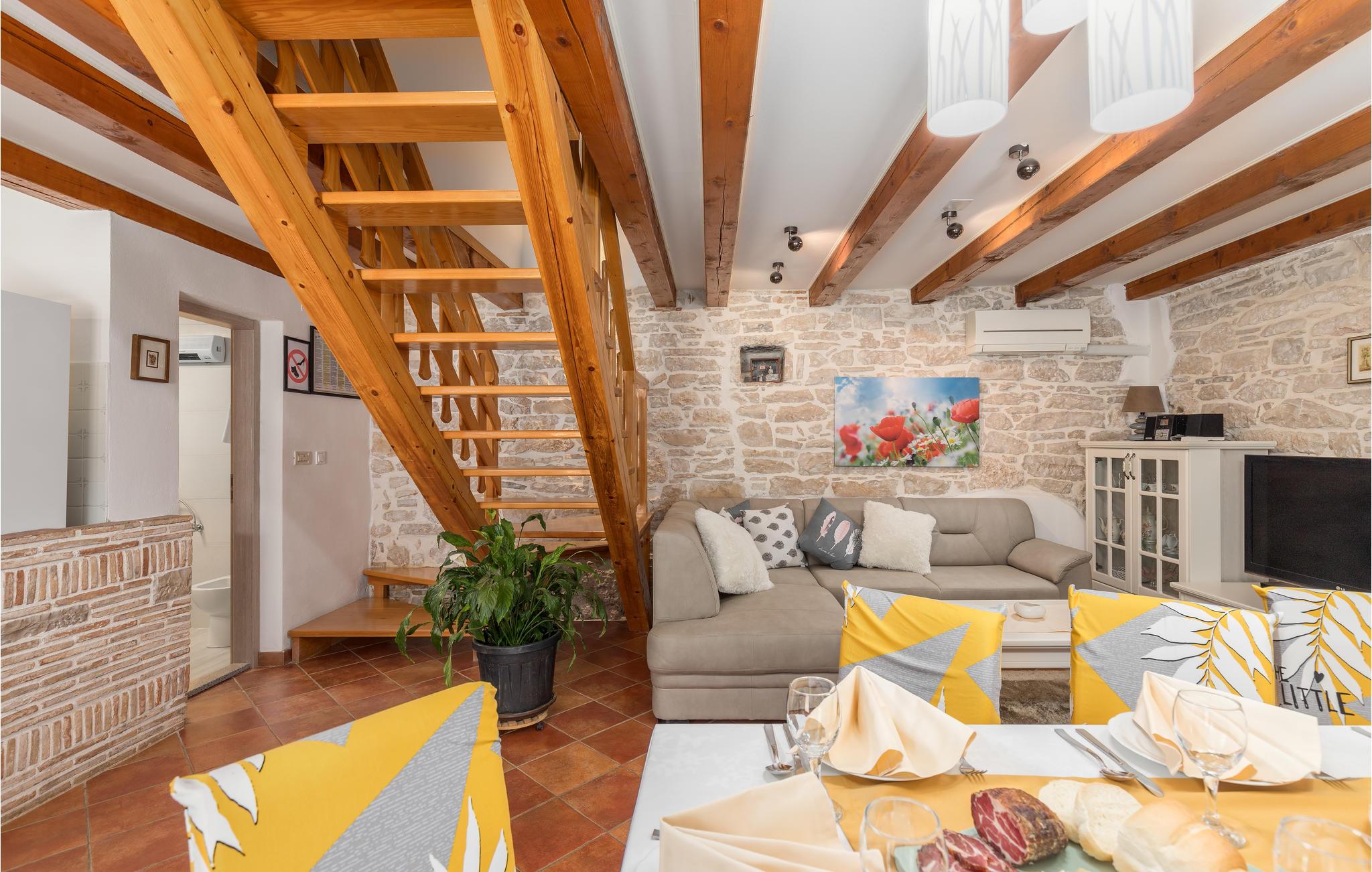 I hjertet af Istrien, i en lille malerisk by, langt fra hverdagens stress og jag, ligger dette rustikke stenhus i to enheder, der er perfekt til to familier eller en større vennekreds. Her kan I tage på lange vandreture i området, udforske de omkringliggende små charmerende landbyer på cykel, tage på en picnic eller køre til en lækker strand, hvor I kan bade og bare ligge og nyde livet. I kan også bare slappe af på den skyggefulde terrasse, der hører til huset eller more jer i den tilhørende swimmingpool eller infrarødsauna. Fire cykler står til jeres rådighed. Nyd ganske enkelt det sunde landliv i Istrien og slap af i krop og sjæl. I Barban kan I se mange mindesmærker fra barokken samt fra gotikken, f.eks. freskerne og de gagolitiske dokumenter, kirker og paladser, bymuren og riddererkonkurrencen "Trka na prstenac". Vi anbefaler jer en udflugt til Baredine, hvor I kan opleve den helt imponerende drypstenshule.
