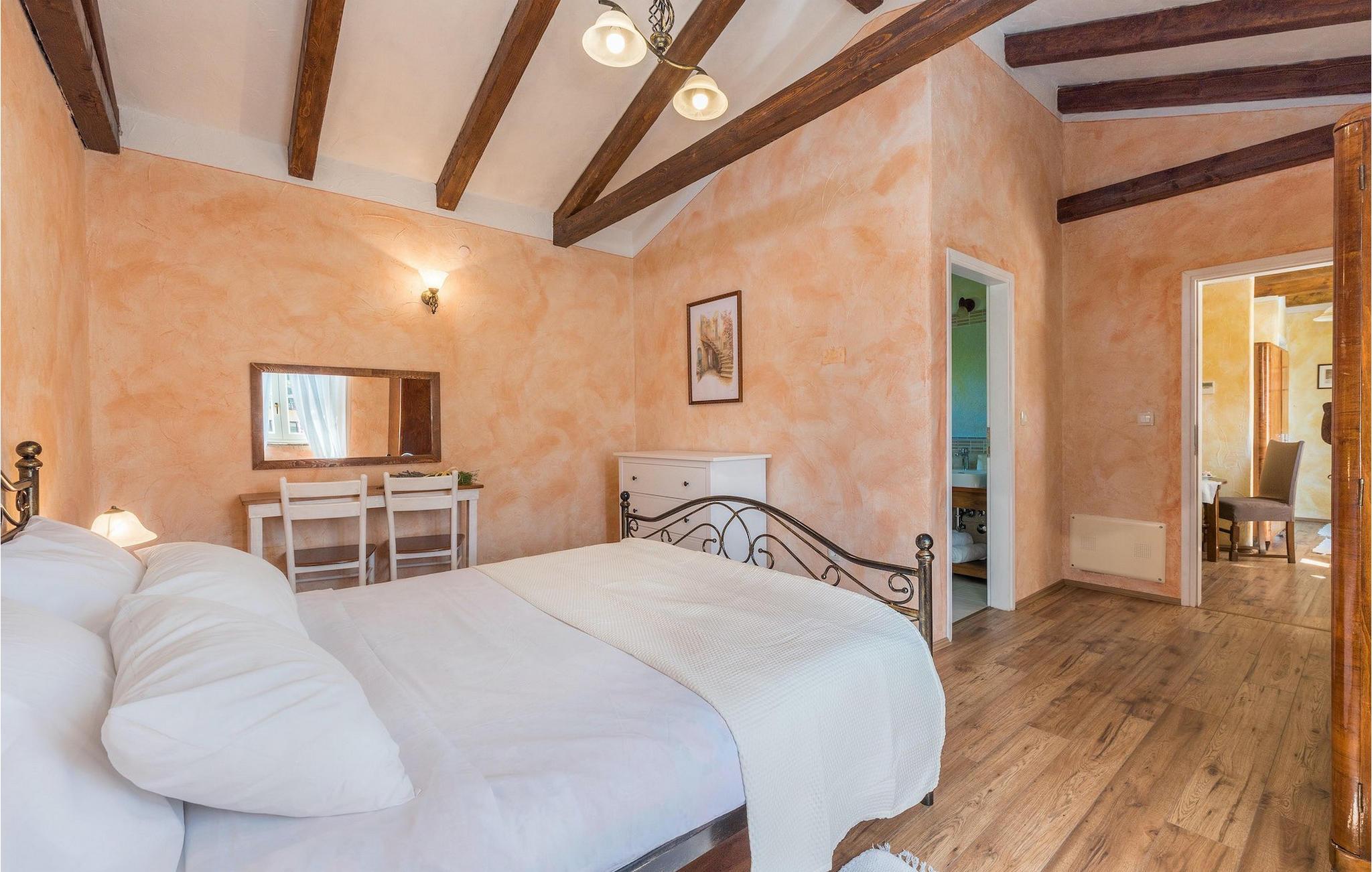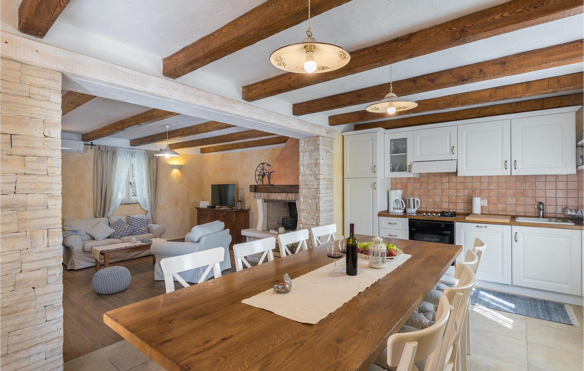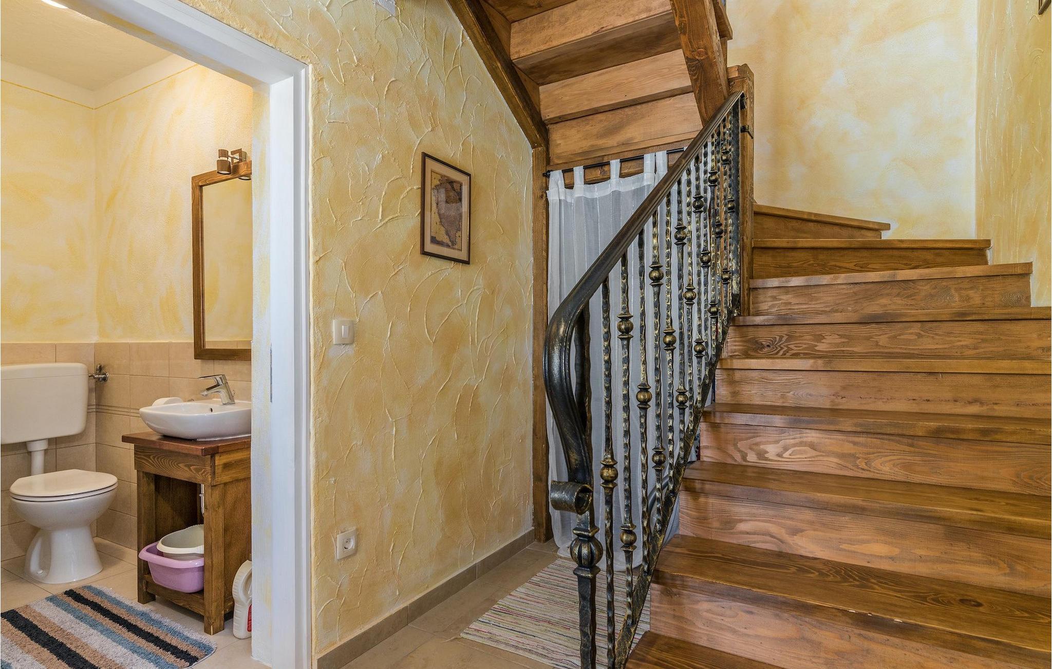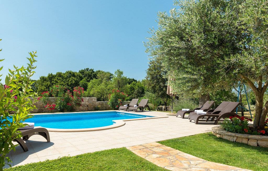 Villa Natura Mikulezi er en charmerende villa, beliggende nær Labin. Villaen kan rumme op til 8+2 gæster, har en smukt plejet have og en indbydende privat pool. Stueetagen i åben plan består af en komfortabel opholdsstue med tv og pejs, som er forbundet med spiseplads og køkken med moderne apparater. Herfra har du direkte adgang til Villaen har 4 soveværelser, 4 ensuite badeværelser samt et gæstetoilet. Et af soveværelserne ligger i stueetagen, mens de tre andre er på første sal. Soveværelserne er rolige og romantiske med et vindue med udsigt over den fredelige natur nedenunder. Villaen er perfekt til en familieferie med sin store grønne have og gynger til børn samt fodboldmål, som er placeret på en greenfield 50m fra villaen. En dejlig overdækket terrasse med loungemøbler er det perfekte sted at nyde en forfriskende drink, mens du også kan tilberede lækre måltider på villaens grill og nyde dem i den også overdækkede udendørs spiseplads. Villa Natura Mikulezi tilbyder privat parkering for op til 3 biler, Wi-Fi og en traditionel konoba (værtshus).