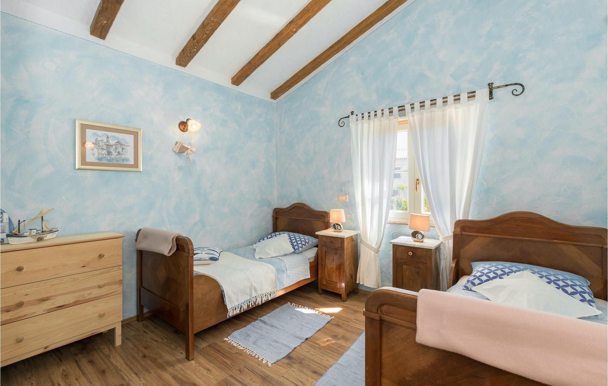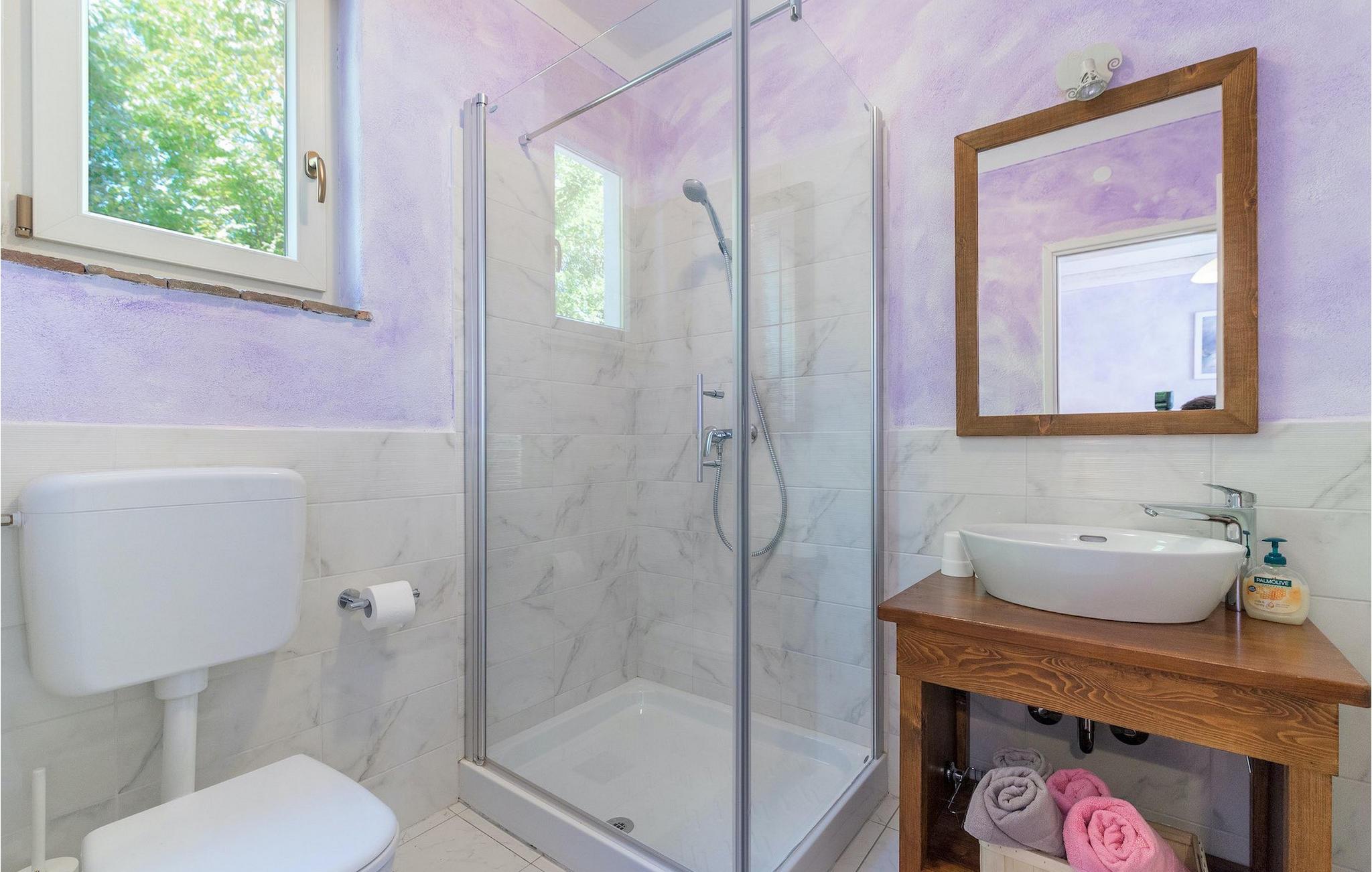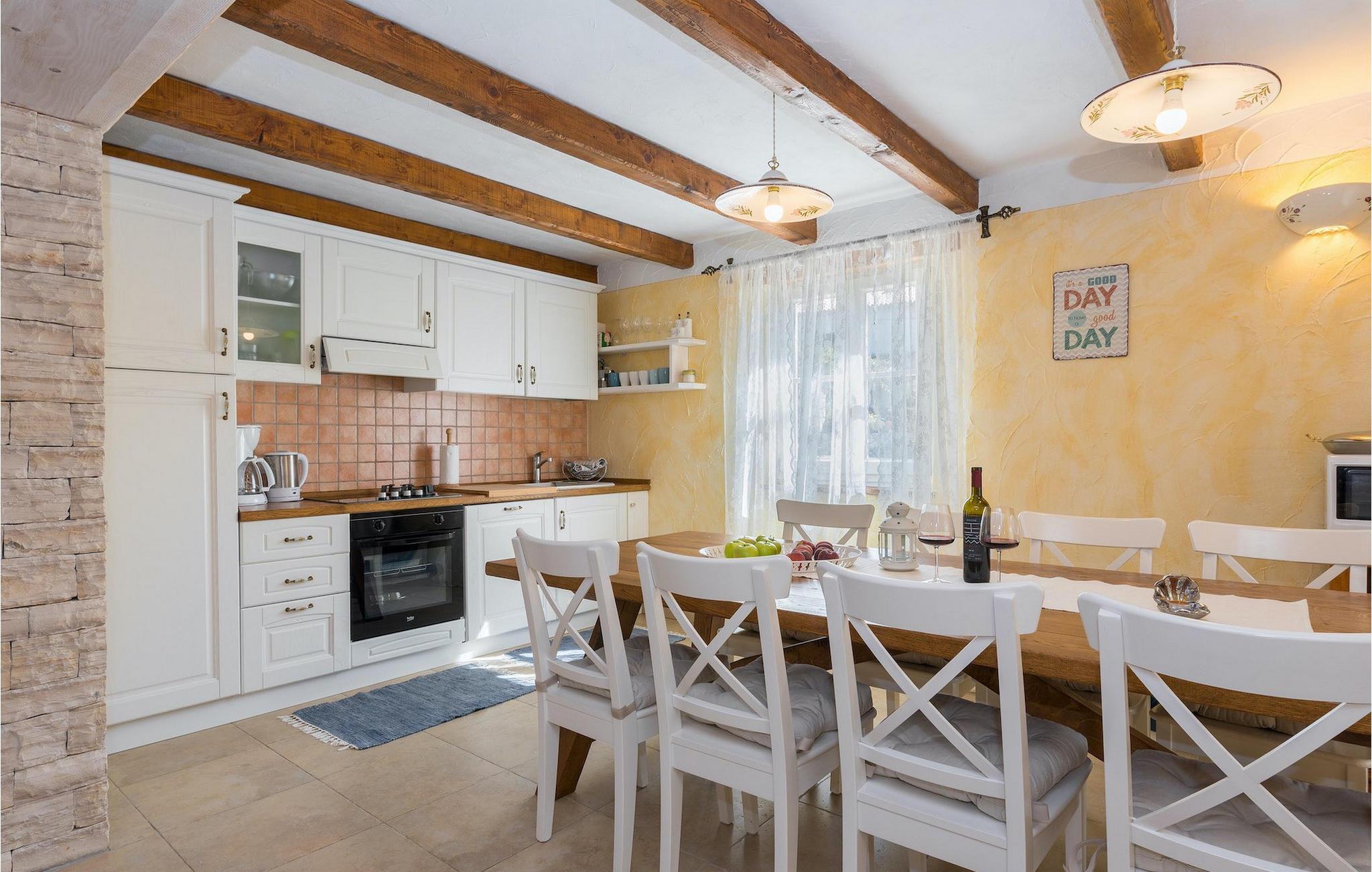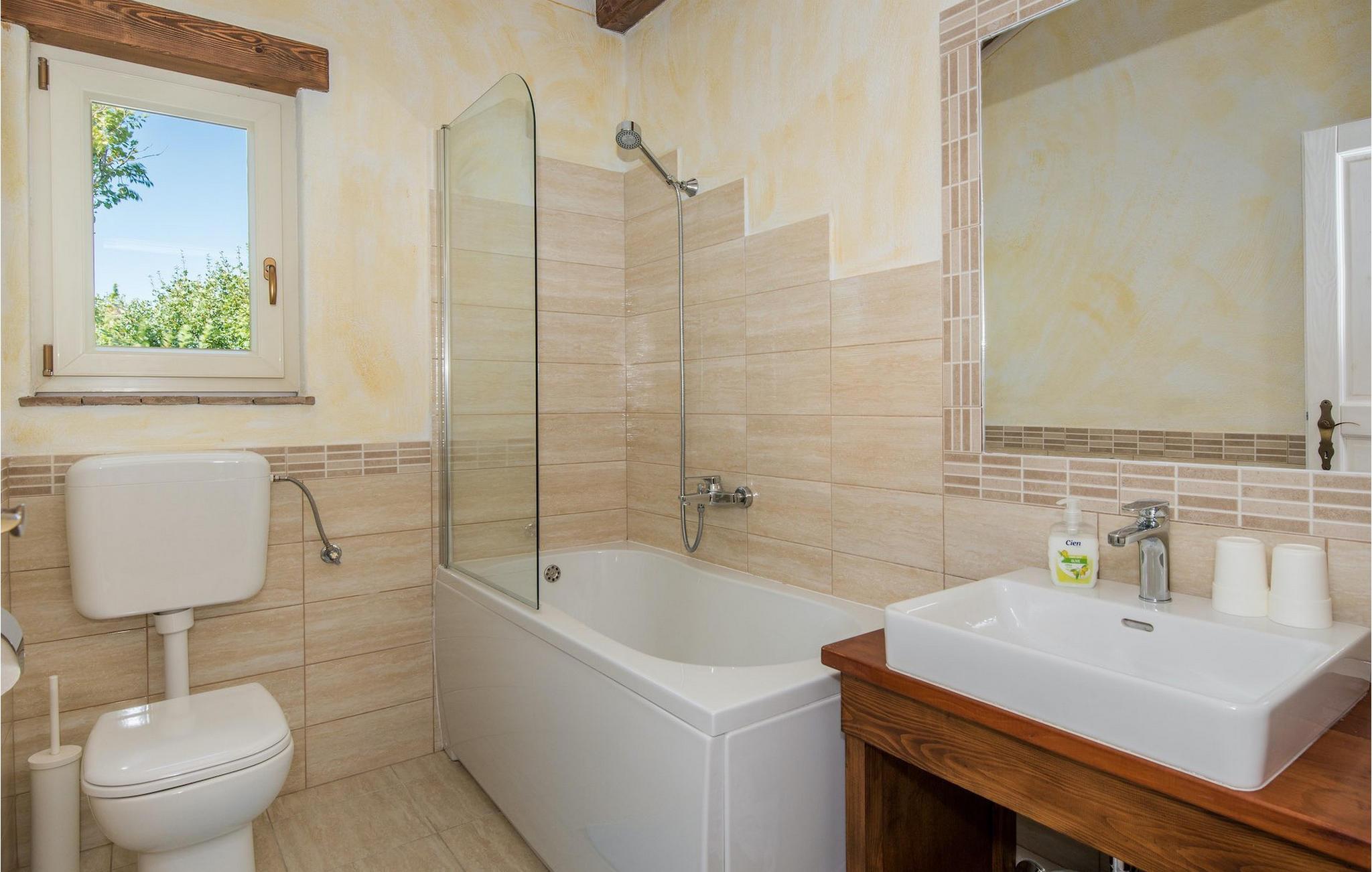Villa Natura Mikulezi er en charmerende villa, beliggende nær Labin. Villaen kan rumme op til 8+2 gæster, har en smukt plejet have og en indbydende privat pool. Stueetagen i åben plan består af en komfortabel opholdsstue med tv og pejs, som er forbundet med spiseplads og køkken med moderne apparater. Herfra har du direkte adgang til Villaen har 4 soveværelser, 4 ensuite badeværelser samt et gæstetoilet. Et af soveværelserne ligger i stueetagen, mens de tre andre er på første sal. Soveværelserne er rolige og romantiske med et vindue med udsigt over den fredelige natur nedenunder. Villaen er perfekt til en familieferie med sin store grønne have og gynger til børn samt fodboldmål, som er placeret på en greenfield 50m fra villaen. En dejlig overdækket terrasse med loungemøbler er det perfekte sted at nyde en forfriskende drink, mens du også kan tilberede lækre måltider på villaens grill og nyde dem i den også overdækkede udendørs spiseplads. Villa Natura Mikulezi tilbyder privat parkering for op til 3 biler, Wi-Fi og en traditionel konoba (værtshus).