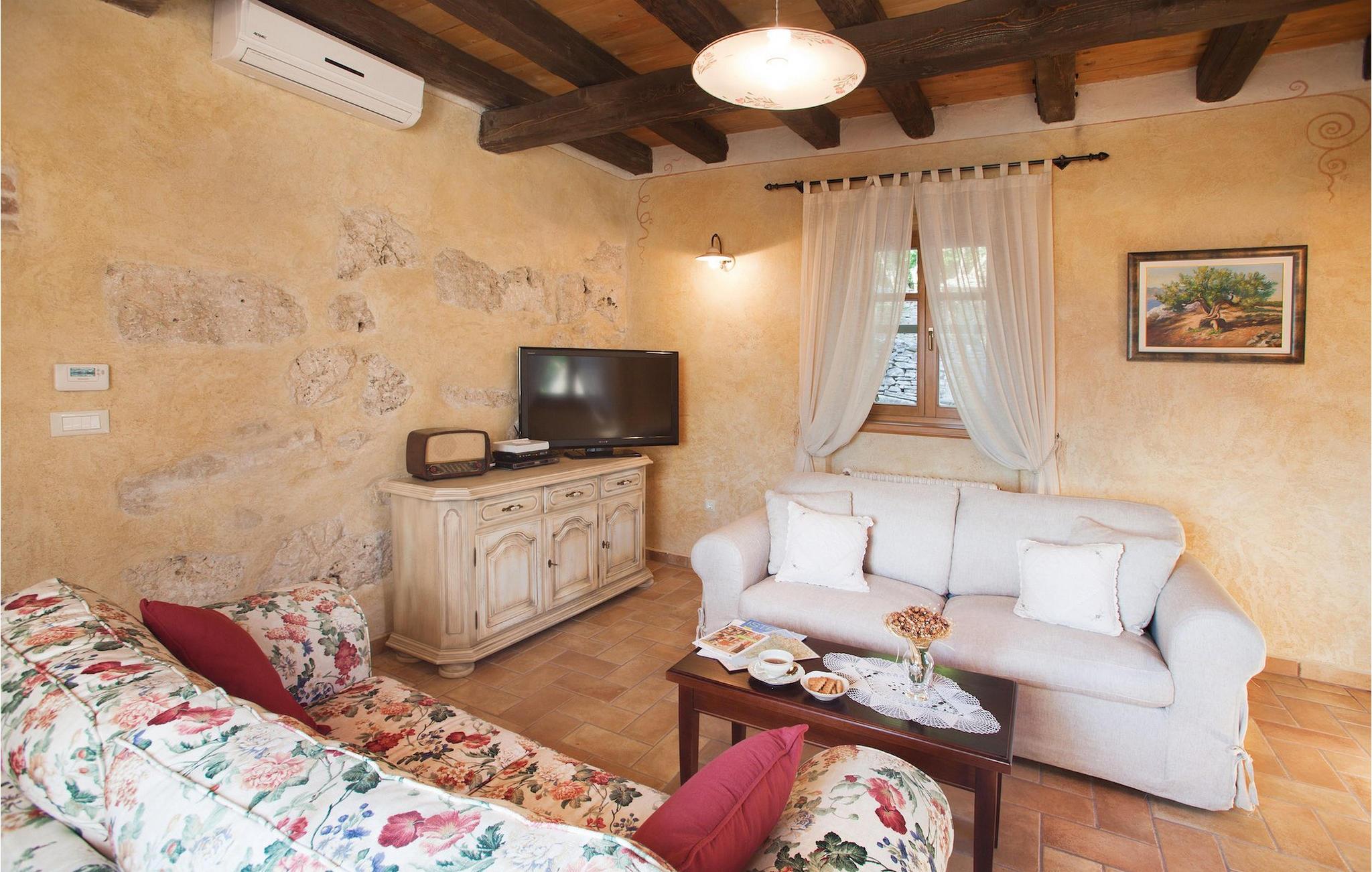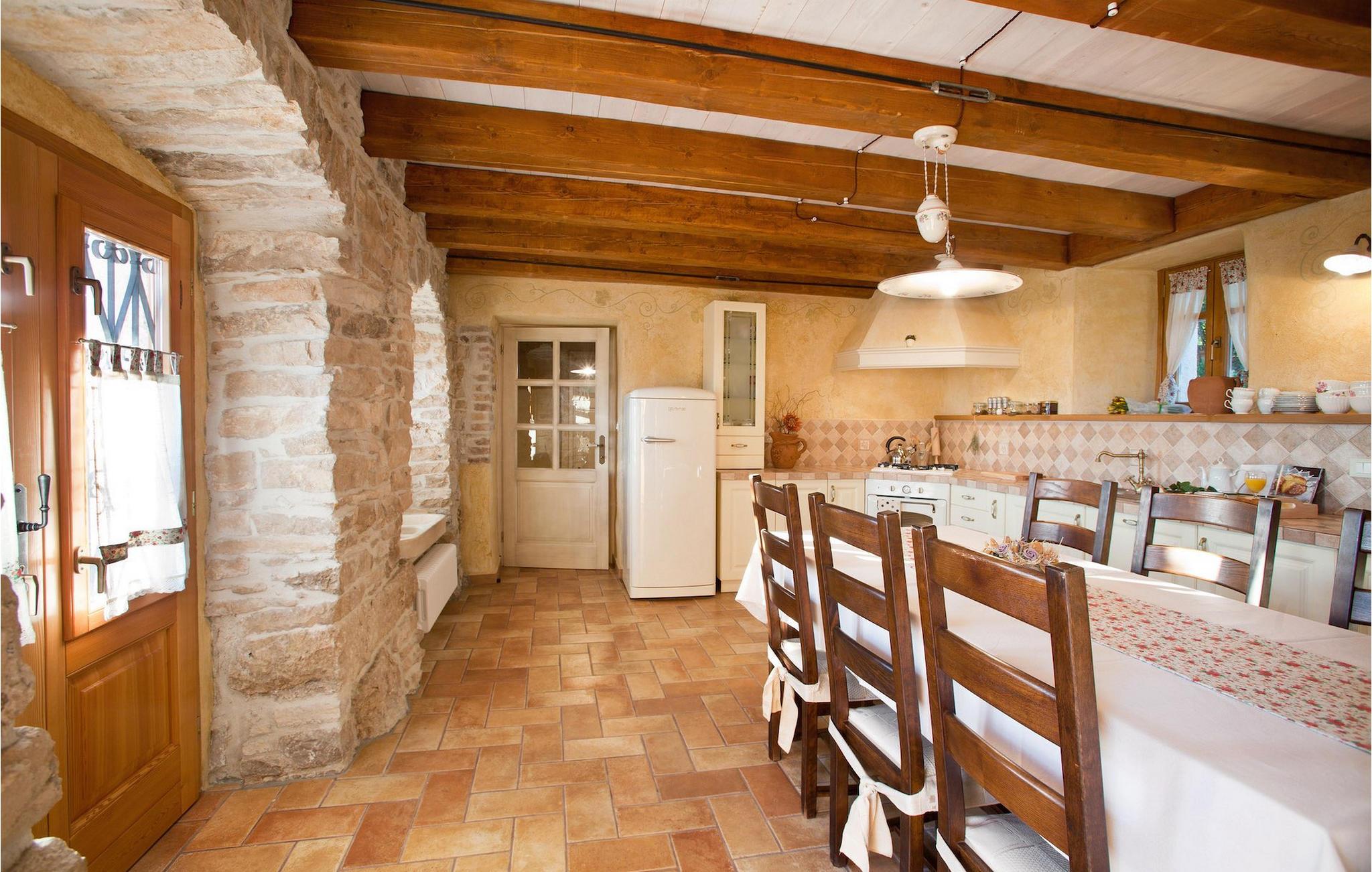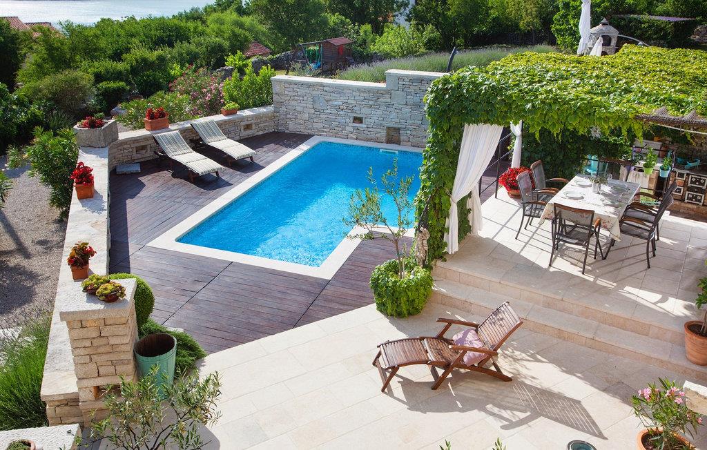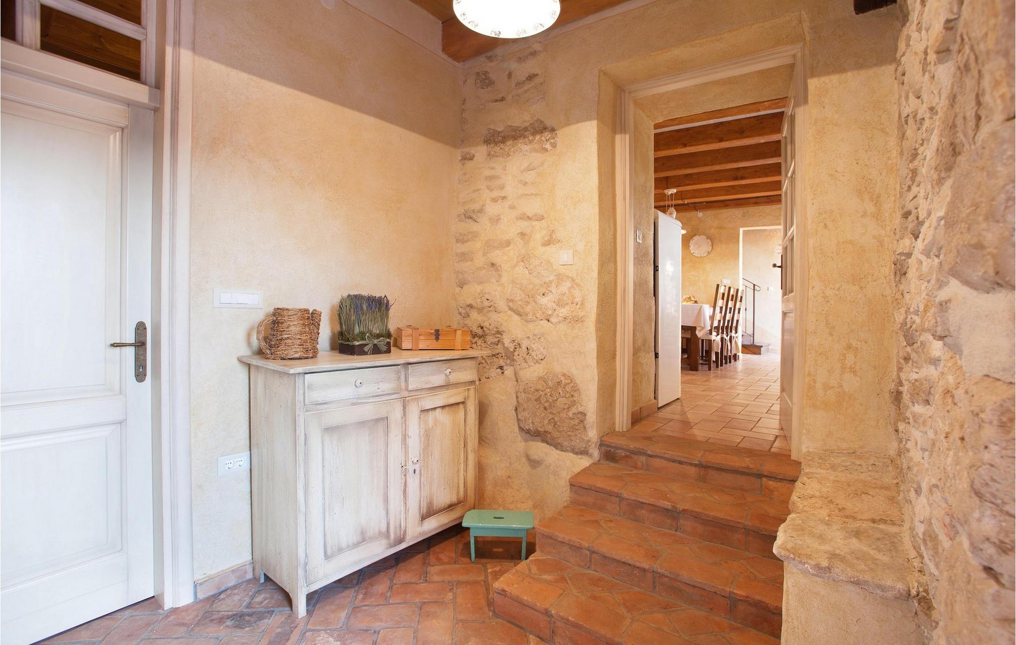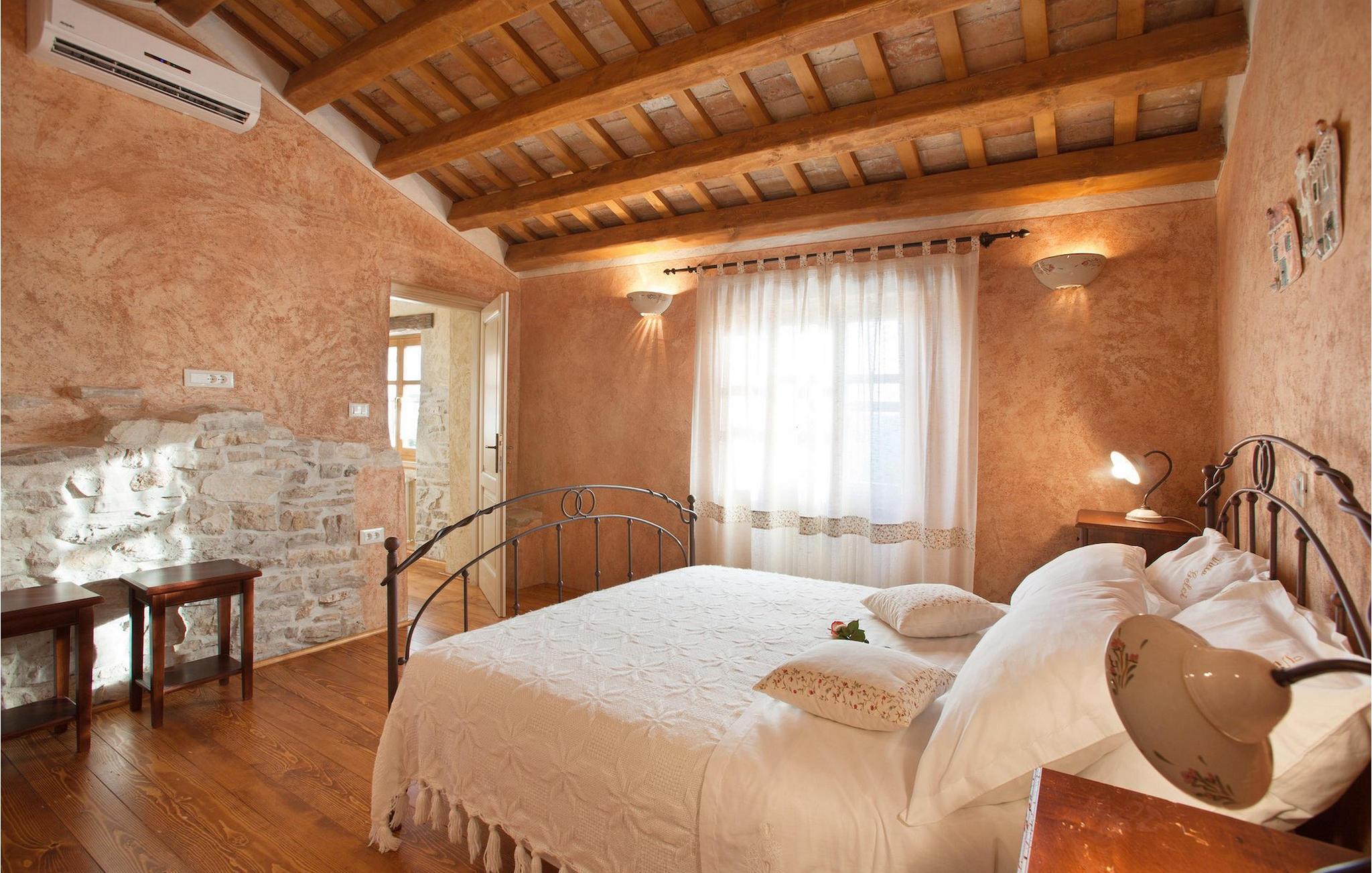 I den udvendige del af den 1400 kvadratmeter store ejendom finder du en rummelig terrasse med privat pool, som giver dig en betagende udsigt over Adriaterhavet og de omkringliggende bakker. Hvis du vil prøve et par lokale delikatesser, står en grill til din rådighed på terrassen. Og mens du sætter dine kulinariske færdigheder på prøve, kan dine børn hygge sig på legepladsen lige ved siden af. Alle gæster, som ikke kun ønsker at slikke sol og hav, men også gerne vil være aktive og udforske det unikke istriske landskab og natur, har mulighed for at leje cykler på stedet. Kort sagt: Alt hvad du behøver for en perfekt ferie kan du finde i den smukke Villa Gelci.Villa Gelci ligger i Trget i Istrien. Denne idylliske fiskerby ligger i den tolv kilometer lange Raša-bugt sydvest for byen Labin. Trget er kendetegnet ved sin uberørte natur og rolige beliggenhed, hvilket gør den perfekt til især familier med børn, men også for alle, der længes efter fred og afslapning. Den første strand ligger kun 900 meter fra Villa Gelci.
