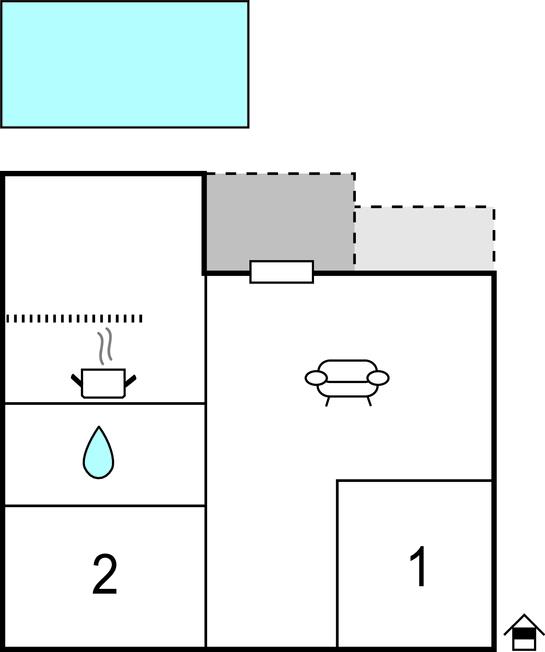 Køkken - 2 Sovepladser. (Sofa, madras eller lignende).