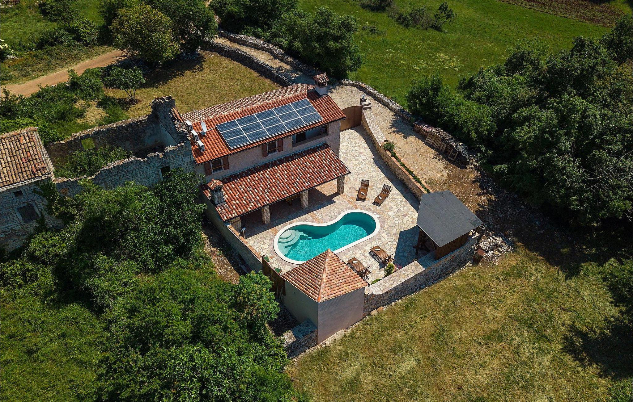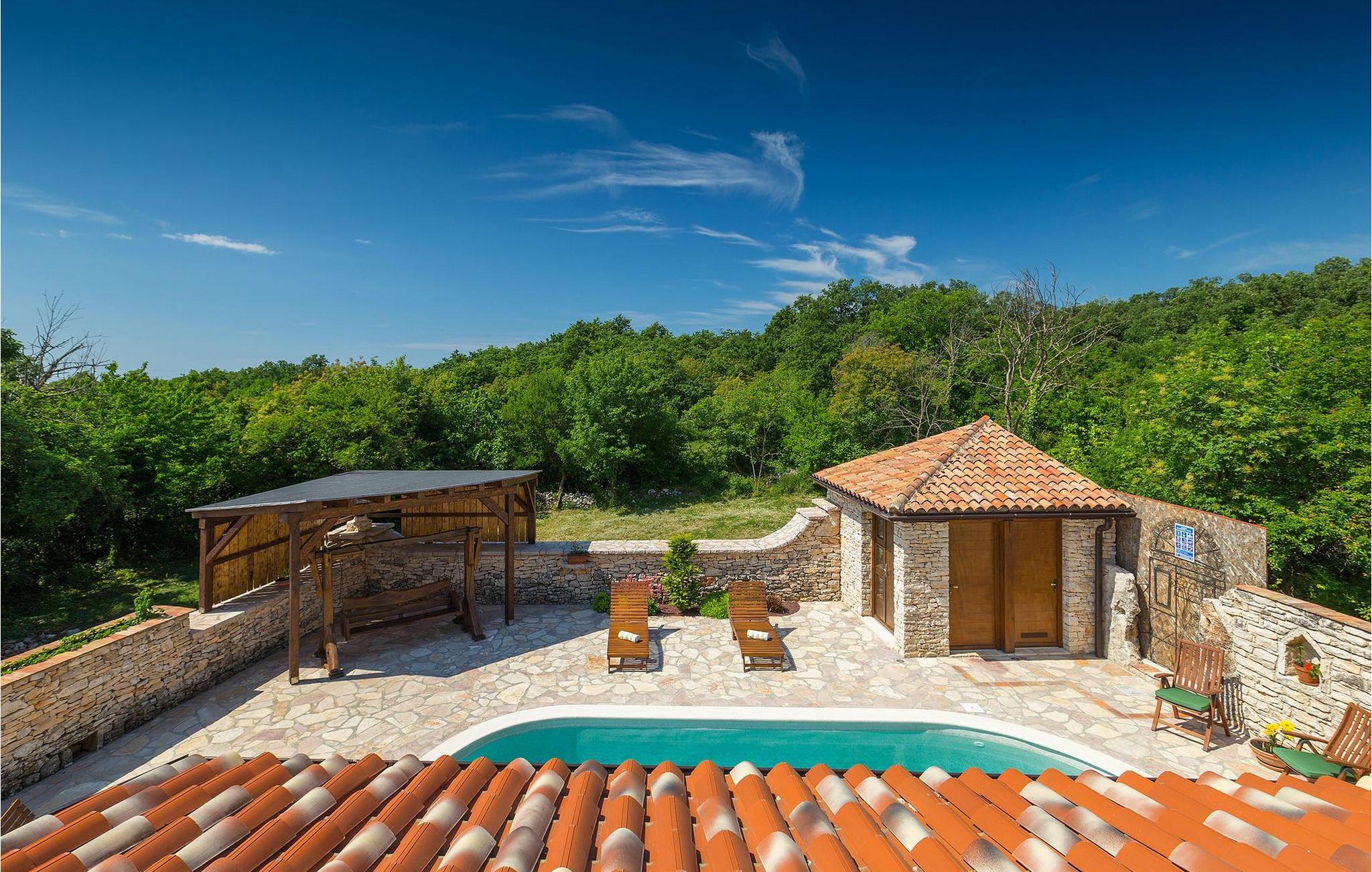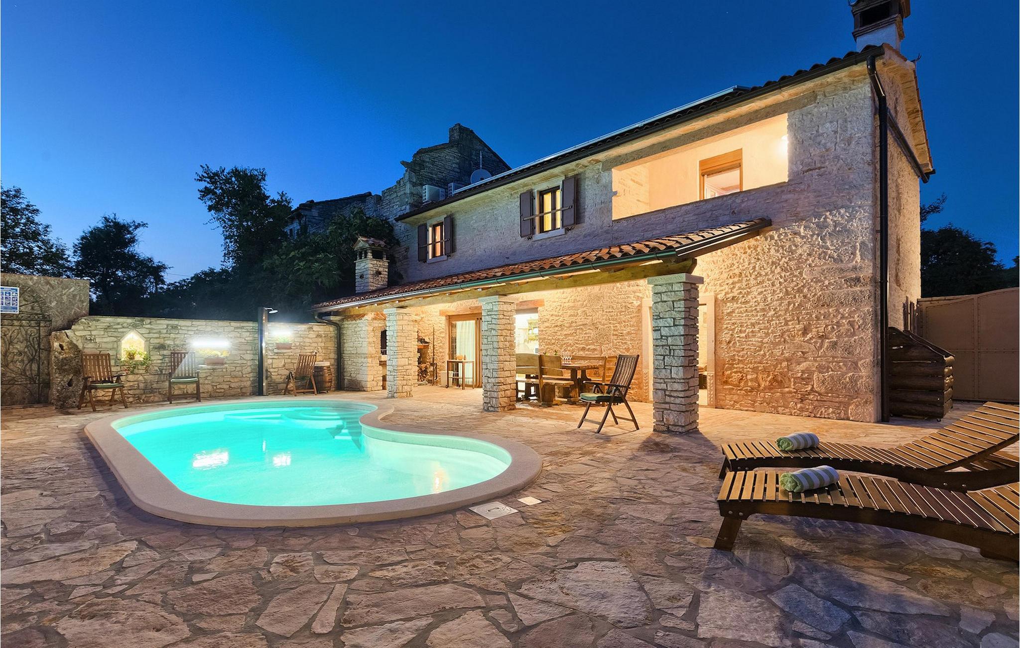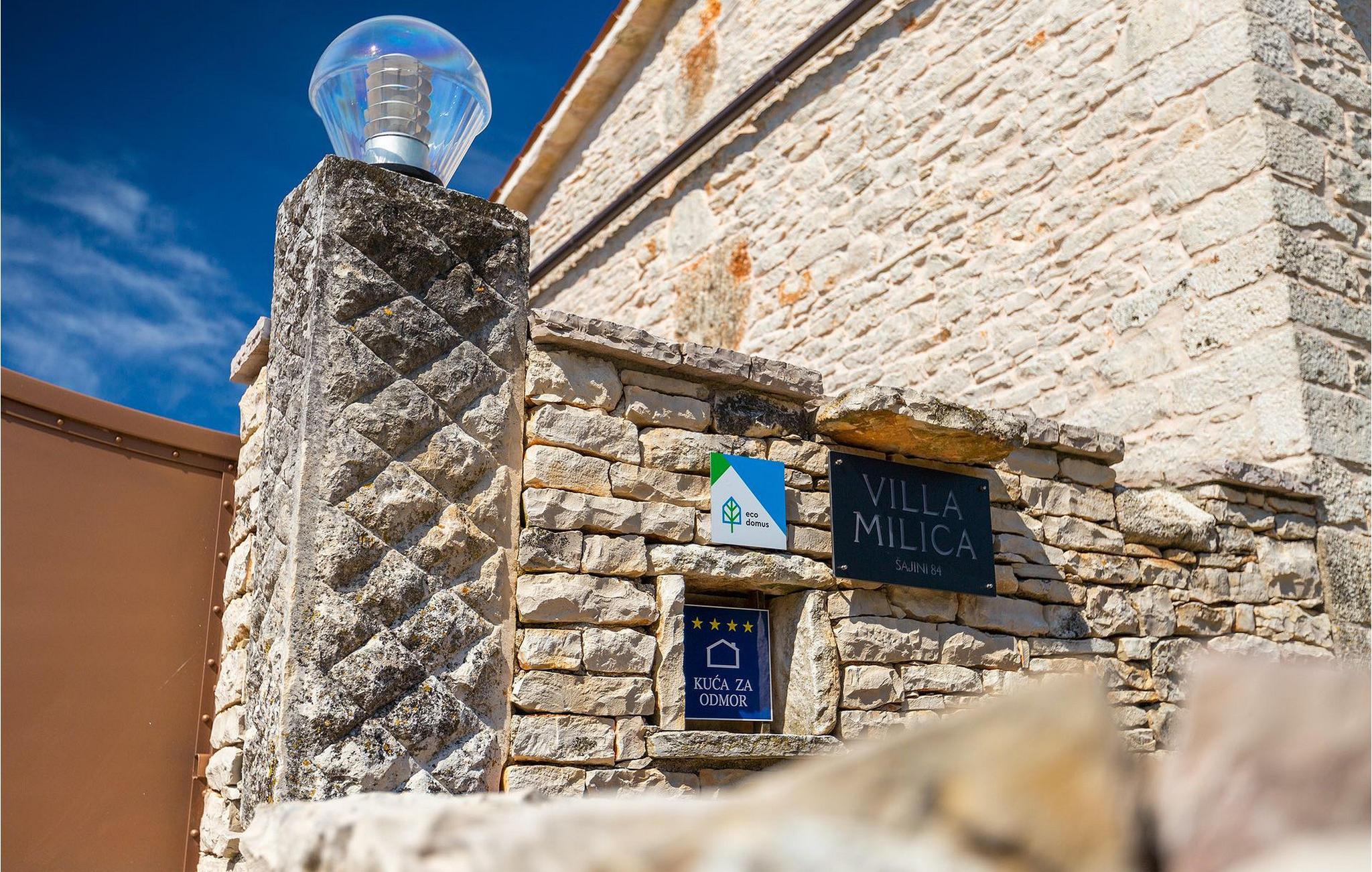 Dette dejlige traditionelle stenhus har tre soveværelser til en maksimal kapacitet på 6 gæster. Det er blevet smukt restaureret med en masse karakter. Der er masser af originale funktioner som de gamle fliser i stuen. Alle værelser er komfortable og har aircondition. Wi-Fi internet er også tilgængeligt. En overdækket terrasse med en grill giver den perfekte spiseplads ved den stenbeklædte pool, som er omgivet af stenmure og giver fuldstændig privatliv. Villaen ligger for enden af landsbyen nedsænket i et afslappende naturligt miljø og derfor ideel til familieaktiviteter, romantiske udflugter og afslapning. Villa Milica er en af de første villaer i Istrien belønnet med et Eco Domus-certifikat, som garanterer, at gæsterne bor i en miljøvenlig villa. For at få certifikatet skulle villaen opfylde betingelser som at bruge miljøvenlige rengøringsmidler og genbrug. Ideen med projektet er at gøre Istrien til en "grøn region" og begrænse den påvirkning, villaerne har på det lokale miljø. En tør damprenser i villaen garanterer et rent og sikkert miljø. Den lille landsby Sajini er den perfekte base for dagsture til de berømte byer Pula, Rovinj, Labin og Opatija. Det er også et glimrende sted at kombinere både afslapning og aktiv ferie. Pula er den vigtigste og største havn i Istrien, og for nylig en rigtig turistskat. Den velbeskyttede Pula-bugt er blandt de bedste naturlige havne i Adriaterhavet. Også, omgivet af det frodige grønne landskab i det sydlige Istrien, besidder byen ekstraordinær skønhed og kultur. Denne ferieby ved kysten med et overraskende antal historiske monumenter, storslåede strande og interiørets fantastiske skønhed er et ideelt sted at slappe af. Langt det mest mindeværdige symbol på den romerske indflydelse i Istrien er den storslåede tyve århundreder gamle by Arena, det sjettestørste amfiteater i verden. I dag byder Pula på gode muligheder for ferier. Turisttilbuddet omfatter mange legepladser til sport, rekreation og underholdning, danseterrasser, diskoteker, kasinoer samt diverse udflugter. Byen er stolt af sit velbevarede amfiteater, det største amforasted i verden, Augustus-templet, mange kirker, klostre, venetiansk og østrig-ungarsk arkitektur. Der er et fremragende og varieret udvalg af mad og vin i dens mange restauranter, såvel som museer, gallerier, koncertbegivenheder, fantastisk natteliv og mange andre attraktioner i denne berømte by. Villa Milica er ikke et festhus, og ungdomsgrupper er ikke tilladt.