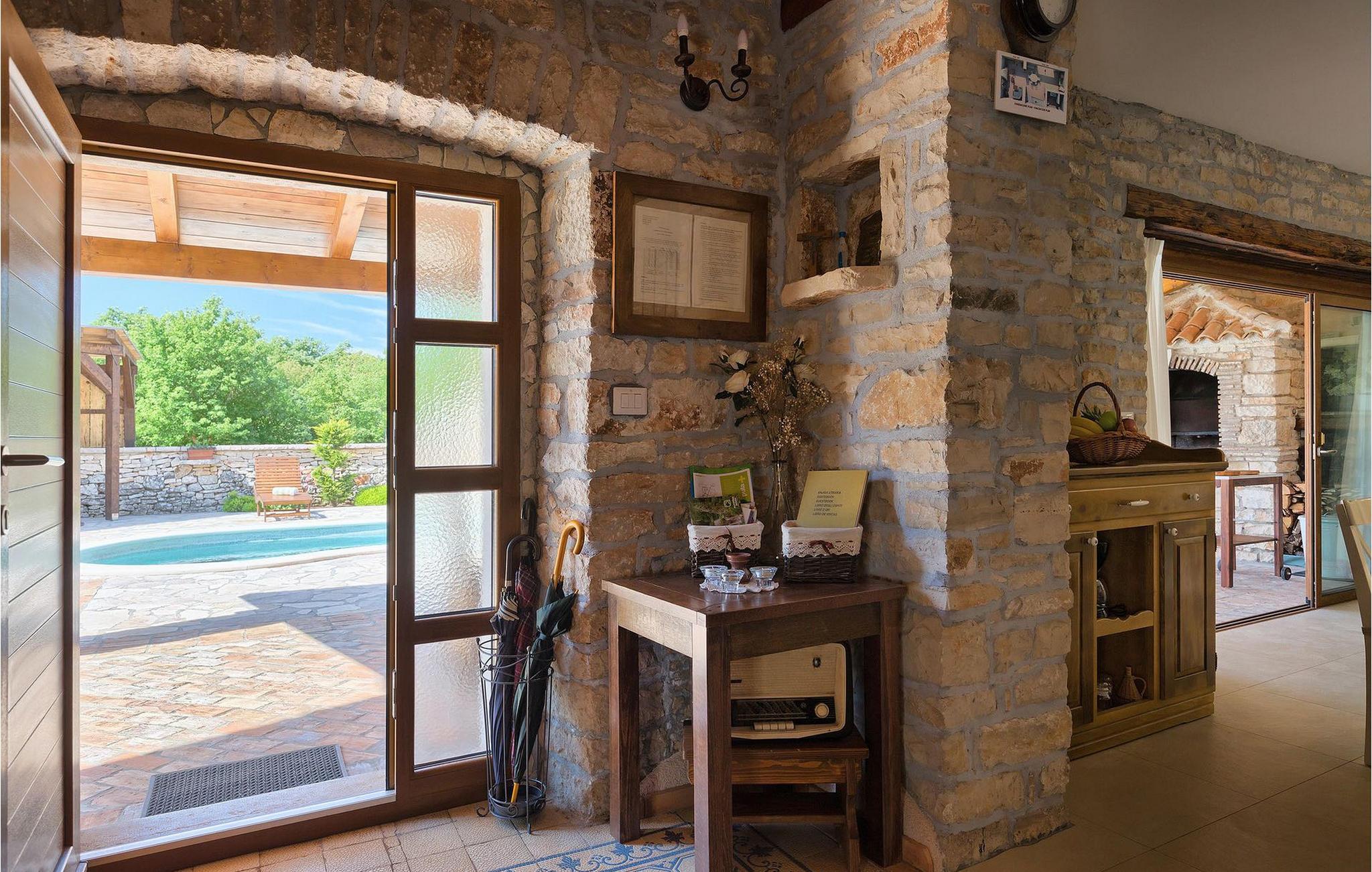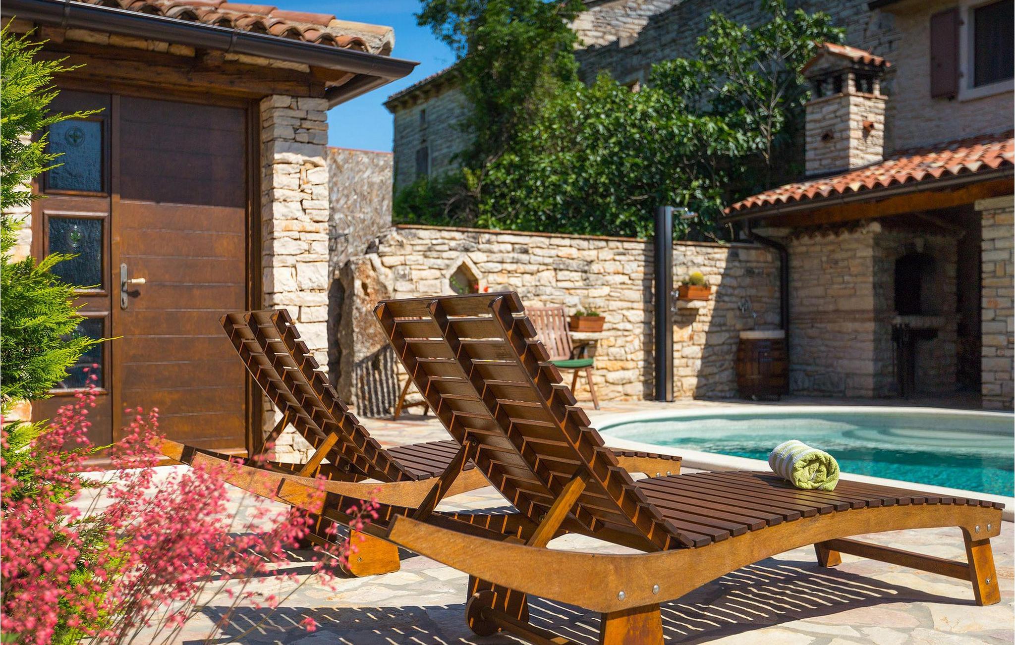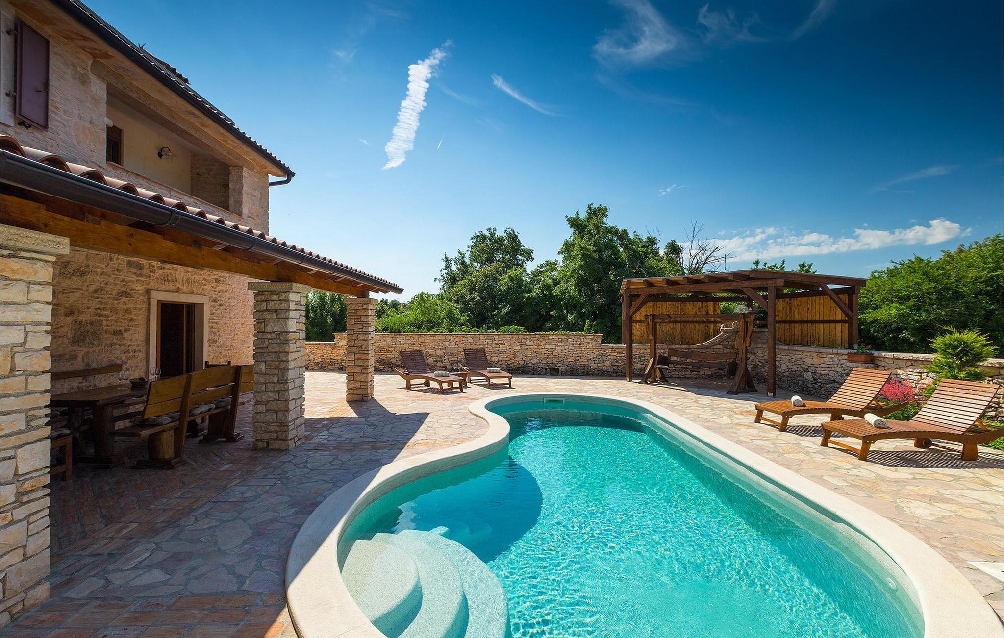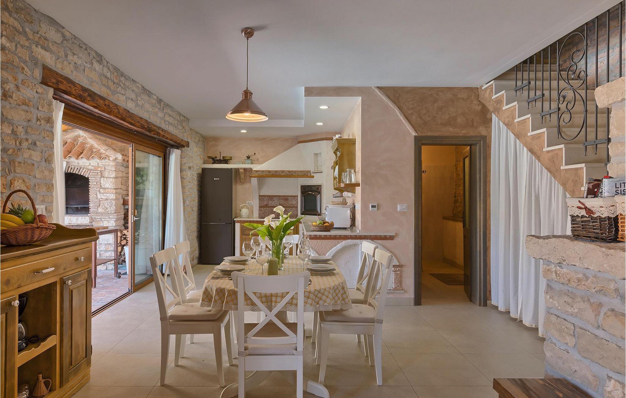 Dette dejlige traditionelle stenhus har tre soveværelser til en maksimal kapacitet på 6 gæster. Det er blevet smukt restaureret med en masse karakter. Der er masser af originale funktioner som de gamle fliser i stuen. Alle værelser er komfortable og har aircondition. Wi-Fi internet er også tilgængeligt. En overdækket terrasse med en grill giver den perfekte spiseplads ved den stenbeklædte pool, som er omgivet af stenmure og giver fuldstændig privatliv. Villaen ligger for enden af landsbyen nedsænket i et afslappende naturligt miljø og derfor ideel til familieaktiviteter, romantiske udflugter og afslapning. Villa Milica er en af de første villaer i Istrien belønnet med et Eco Domus-certifikat, som garanterer, at gæsterne bor i en miljøvenlig villa. For at få certifikatet skulle villaen opfylde betingelser som at bruge miljøvenlige rengøringsmidler og genbrug. Ideen med projektet er at gøre Istrien til en "grøn region" og begrænse den påvirkning, villaerne har på det lokale miljø. En tør damprenser i villaen garanterer et rent og sikkert miljø. Den lille landsby Sajini er den perfekte base for dagsture til de berømte byer Pula, Rovinj, Labin og Opatija. Det er også et glimrende sted at kombinere både afslapning og aktiv ferie. Pula er den vigtigste og største havn i Istrien, og for nylig en rigtig turistskat. Den velbeskyttede Pula-bugt er blandt de bedste naturlige havne i Adriaterhavet. Også, omgivet af det frodige grønne landskab i det sydlige Istrien, besidder byen ekstraordinær skønhed og kultur. Denne ferieby ved kysten med et overraskende antal historiske monumenter, storslåede strande og interiørets fantastiske skønhed er et ideelt sted at slappe af. Langt det mest mindeværdige symbol på den romerske indflydelse i Istrien er den storslåede tyve århundreder gamle by Arena, det sjettestørste amfiteater i verden. I dag byder Pula på gode muligheder for ferier. Turisttilbuddet omfatter mange legepladser til sport, rekreation og underholdning, danseterrasser, diskoteker, kasinoer samt diverse udflugter. Byen er stolt af sit velbevarede amfiteater, det største amforasted i verden, Augustus-templet, mange kirker, klostre, venetiansk og østrig-ungarsk arkitektur. Der er et fremragende og varieret udvalg af mad og vin i dens mange restauranter, såvel som museer, gallerier, koncertbegivenheder, fantastisk natteliv og mange andre attraktioner i denne berømte by. Villa Milica er ikke et festhus, og ungdomsgrupper er ikke tilladt.