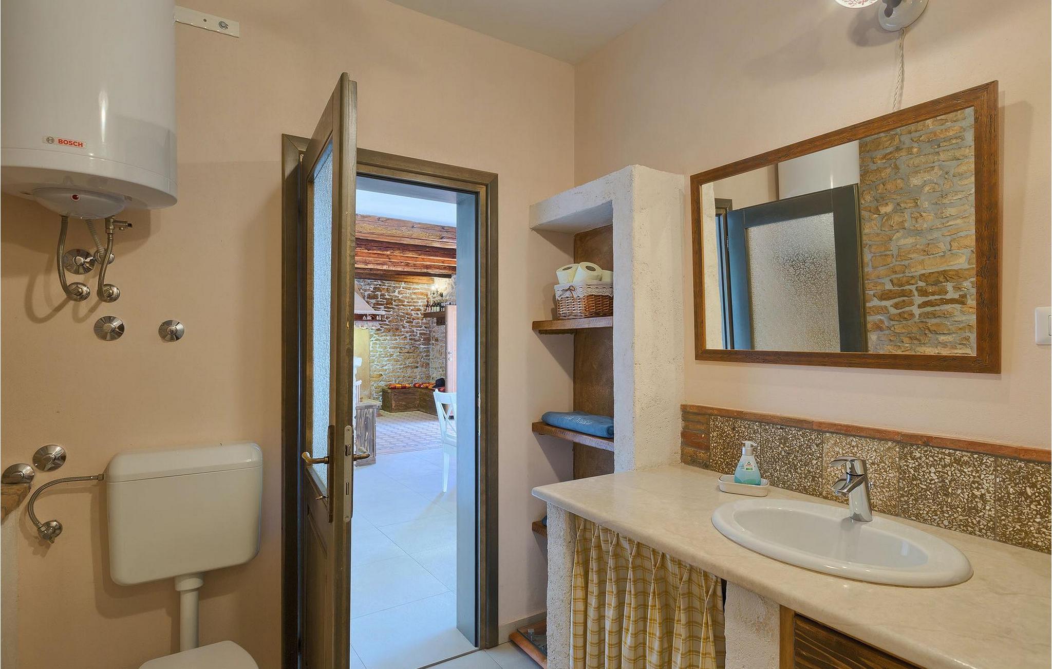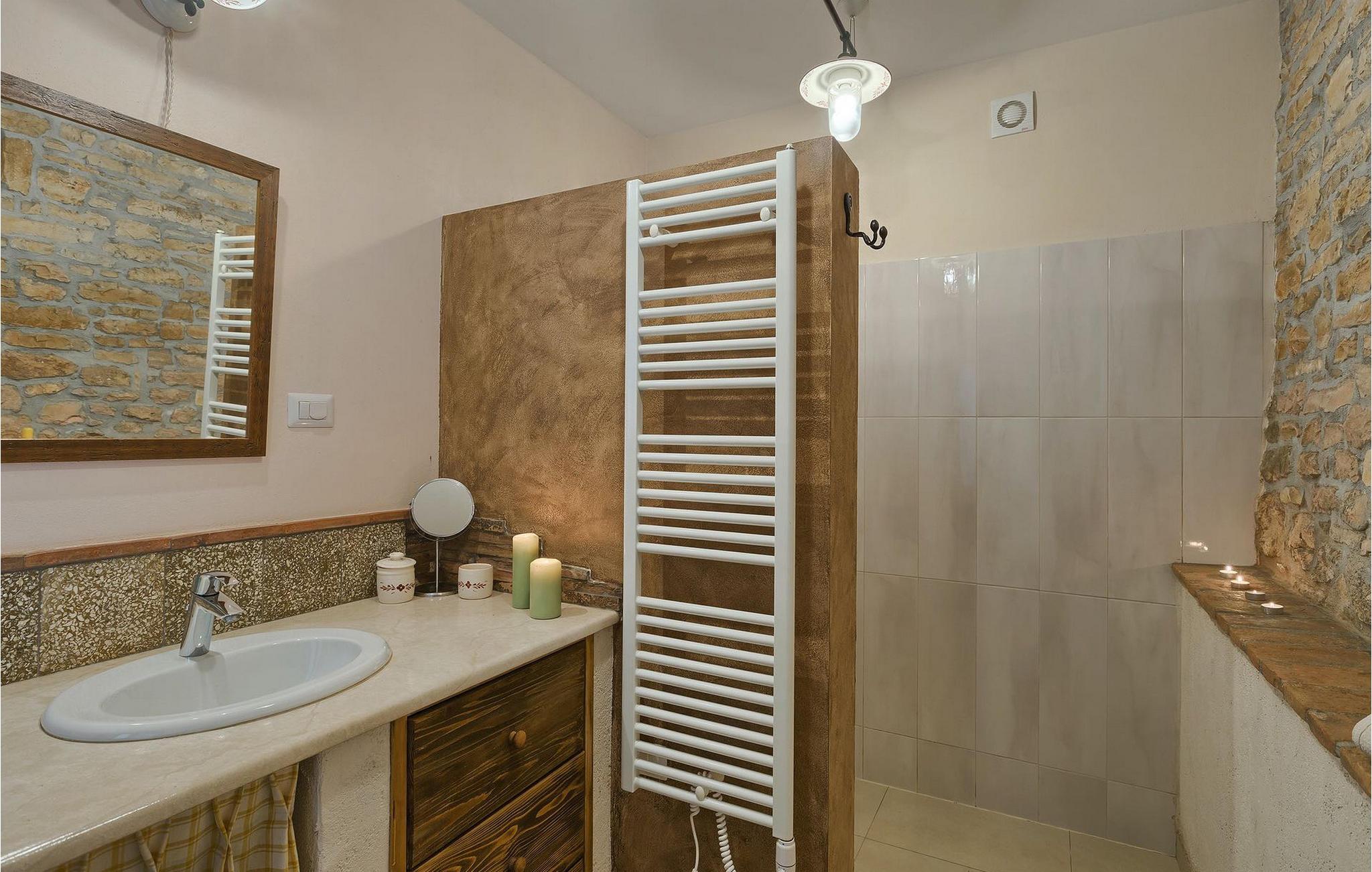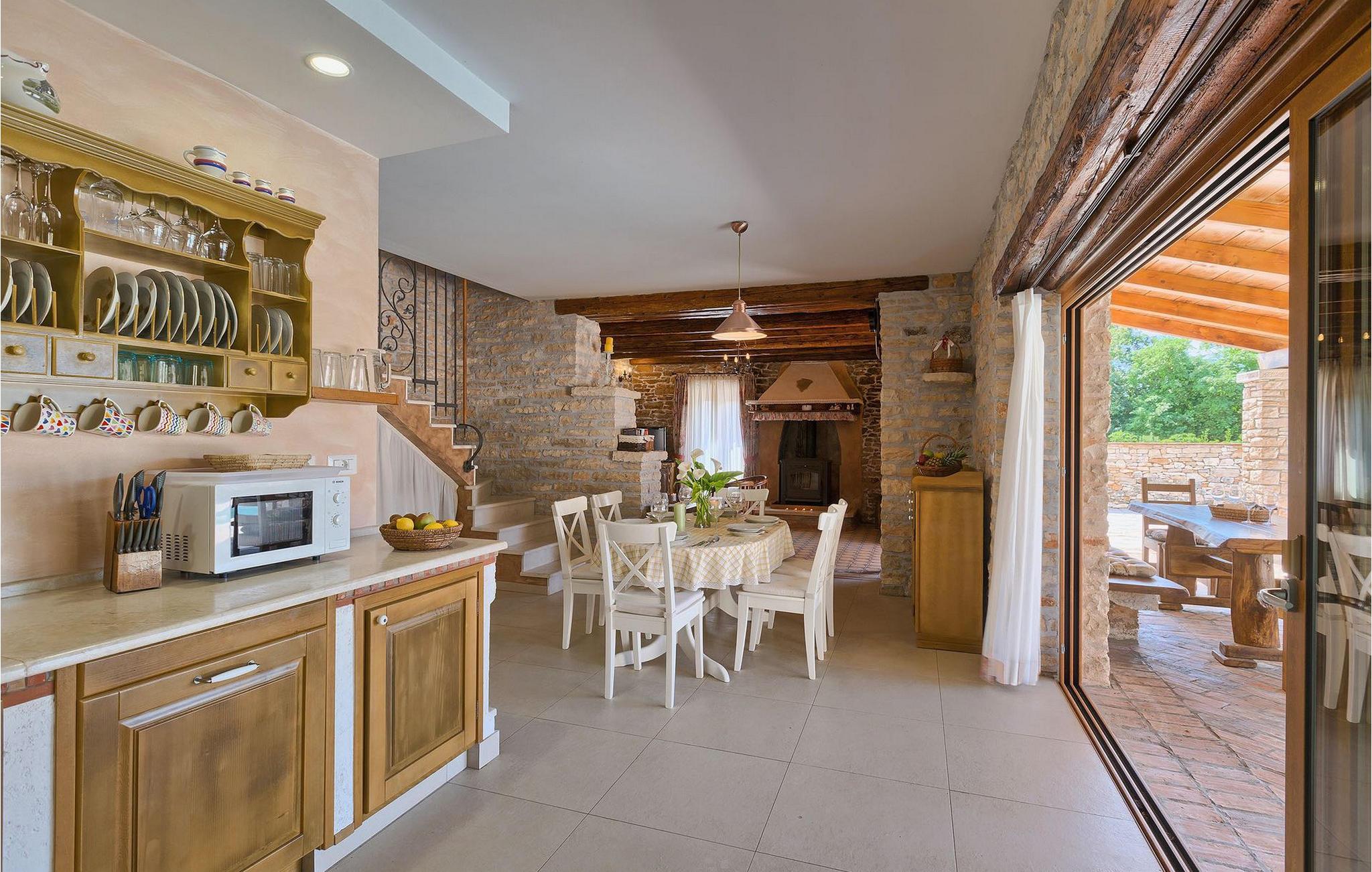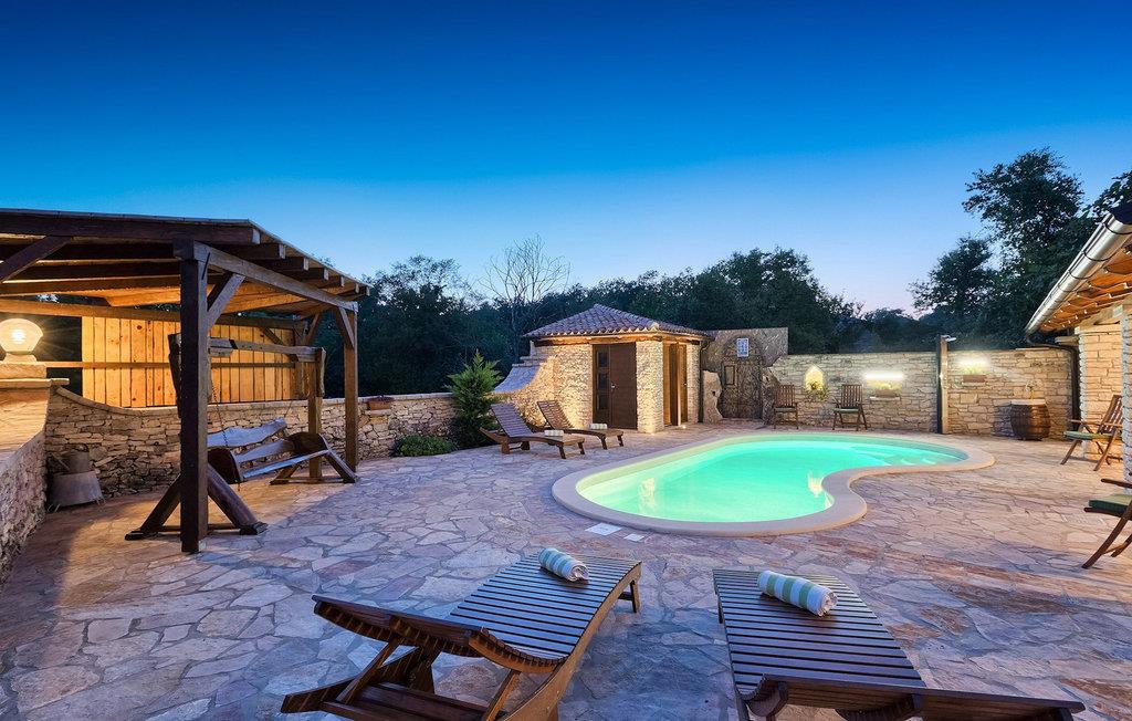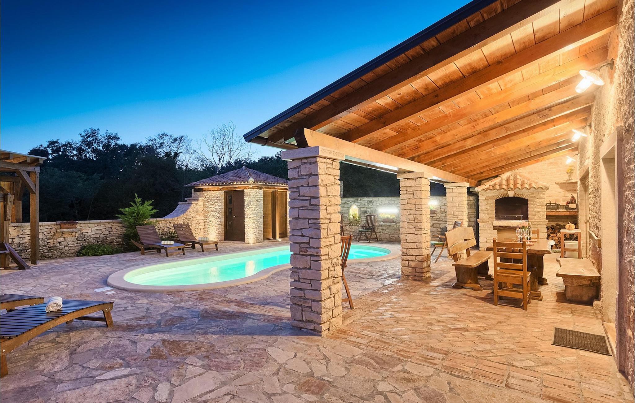 Dette dejlige traditionelle stenhus har tre soveværelser til en maksimal kapacitet på 6 gæster. Det er blevet smukt restaureret med en masse karakter. Der er masser af originale funktioner som de gamle fliser i stuen. Alle værelser er komfortable og har aircondition. Wi-Fi internet er også tilgængeligt. En overdækket terrasse med en grill giver den perfekte spiseplads ved den stenbeklædte pool, som er omgivet af stenmure og giver fuldstændig privatliv. Villaen ligger for enden af landsbyen nedsænket i et afslappende naturligt miljø og derfor ideel til familieaktiviteter, romantiske udflugter og afslapning. Villa Milica er en af de første villaer i Istrien belønnet med et Eco Domus-certifikat, som garanterer, at gæsterne bor i en miljøvenlig villa. For at få certifikatet skulle villaen opfylde betingelser som at bruge miljøvenlige rengøringsmidler og genbrug. Ideen med projektet er at gøre Istrien til en "grøn region" og begrænse den påvirkning, villaerne har på det lokale miljø. En tør damprenser i villaen garanterer et rent og sikkert miljø. Den lille landsby Sajini er den perfekte base for dagsture til de berømte byer Pula, Rovinj, Labin og Opatija. Det er også et glimrende sted at kombinere både afslapning og aktiv ferie. Pula er den vigtigste og største havn i Istrien, og for nylig en rigtig turistskat. Den velbeskyttede Pula-bugt er blandt de bedste naturlige havne i Adriaterhavet. Også, omgivet af det frodige grønne landskab i det sydlige Istrien, besidder byen ekstraordinær skønhed og kultur. Denne ferieby ved kysten med et overraskende antal historiske monumenter, storslåede strande og interiørets fantastiske skønhed er et ideelt sted at slappe af. Langt det mest mindeværdige symbol på den romerske indflydelse i Istrien er den storslåede tyve århundreder gamle by Arena, det sjettestørste amfiteater i verden. I dag byder Pula på gode muligheder for ferier. Turisttilbuddet omfatter mange legepladser til sport, rekreation og underholdning, danseterrasser, diskoteker, kasinoer samt diverse udflugter. Byen er stolt af sit velbevarede amfiteater, det største amforasted i verden, Augustus-templet, mange kirker, klostre, venetiansk og østrig-ungarsk arkitektur. Der er et fremragende og varieret udvalg af mad og vin i dens mange restauranter, såvel som museer, gallerier, koncertbegivenheder, fantastisk natteliv og mange andre attraktioner i denne berømte by. Villa Milica er ikke et festhus, og ungdomsgrupper er ikke tilladt.