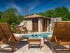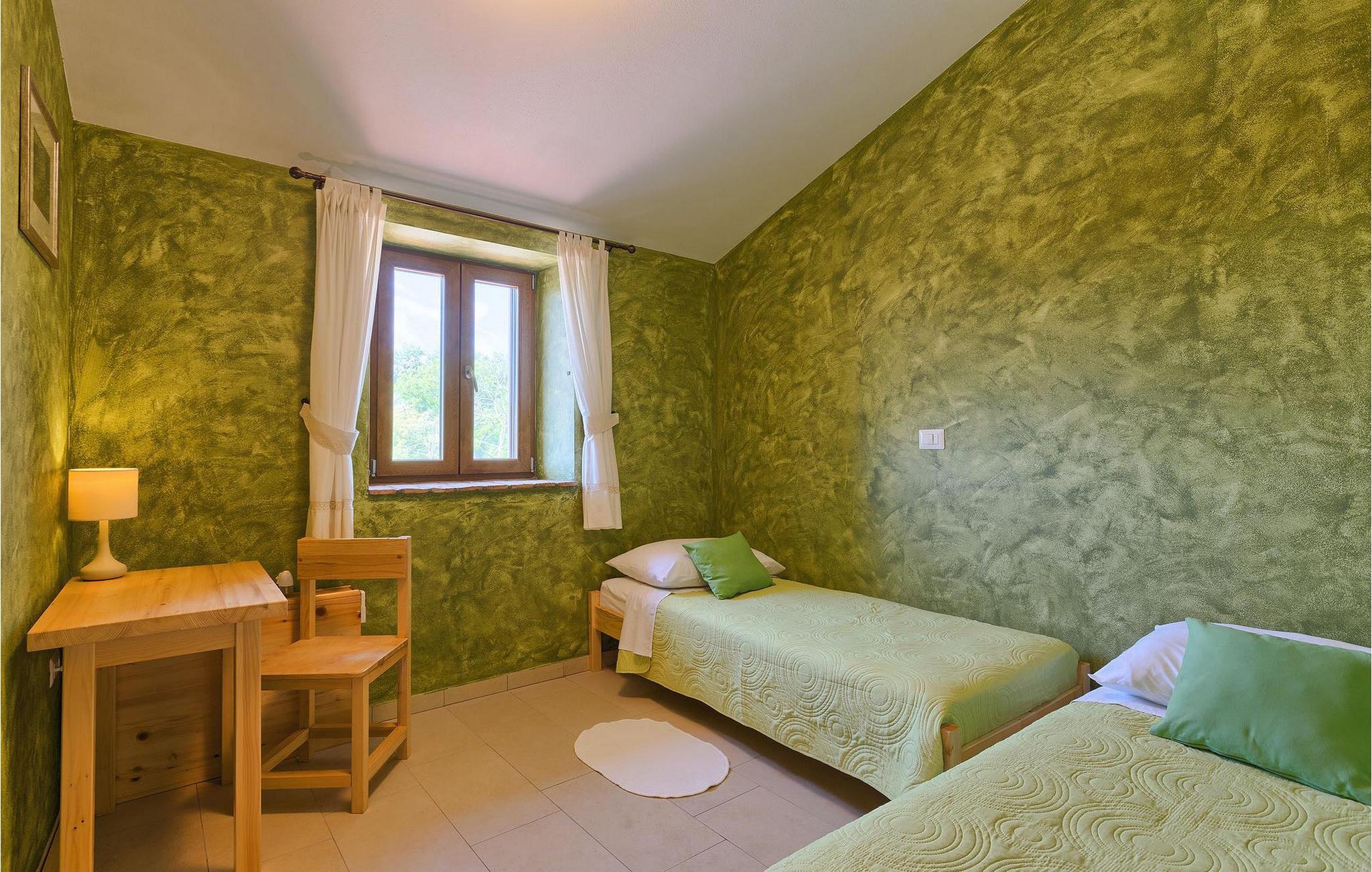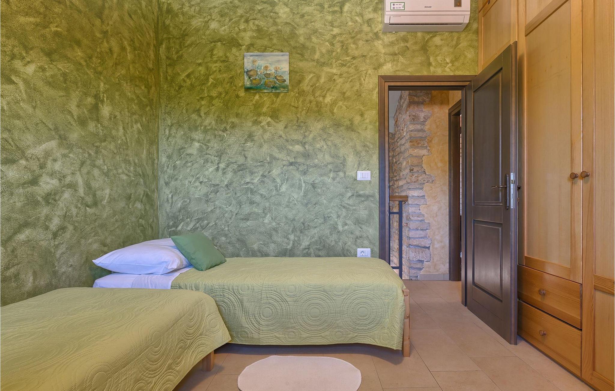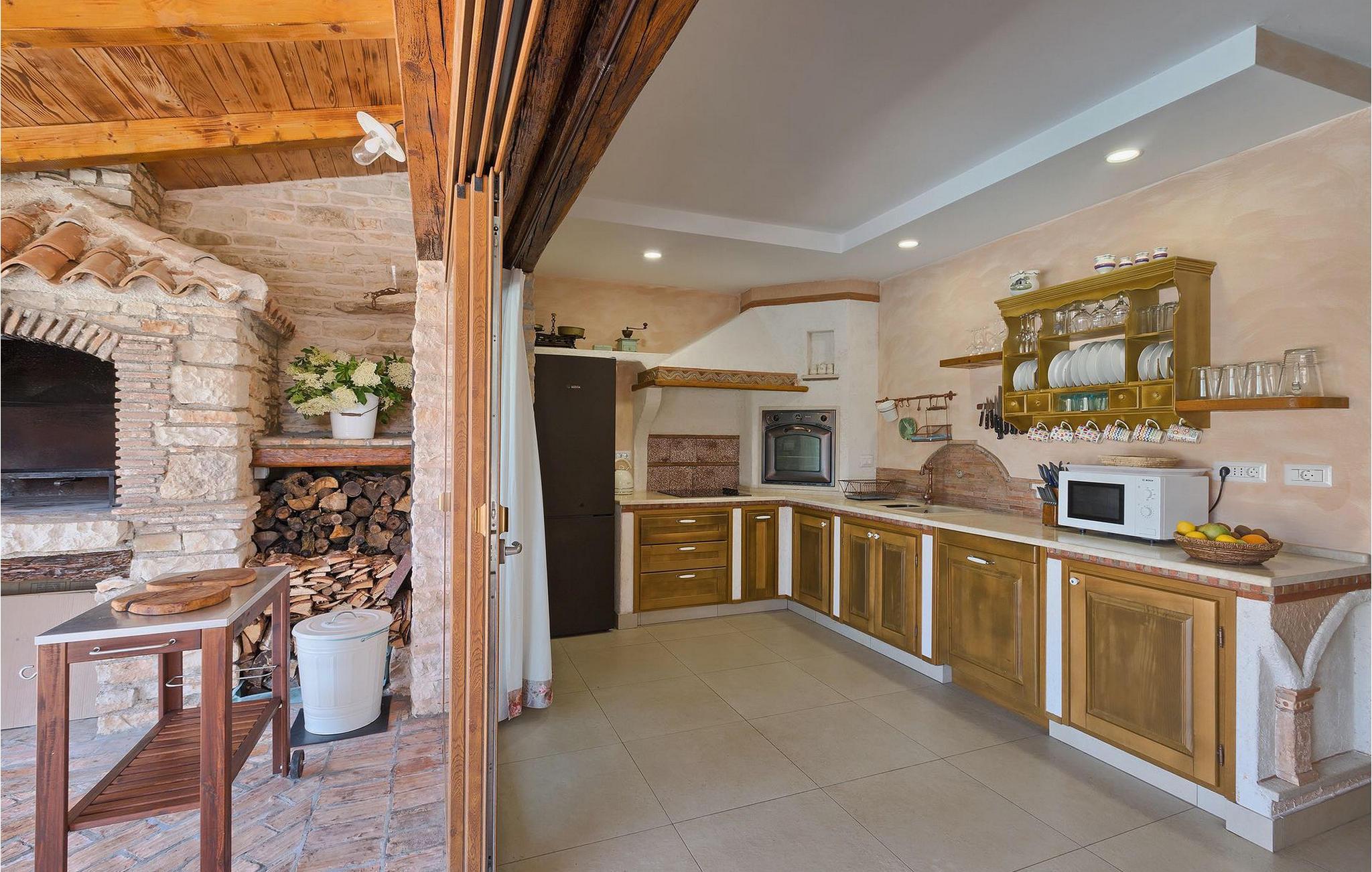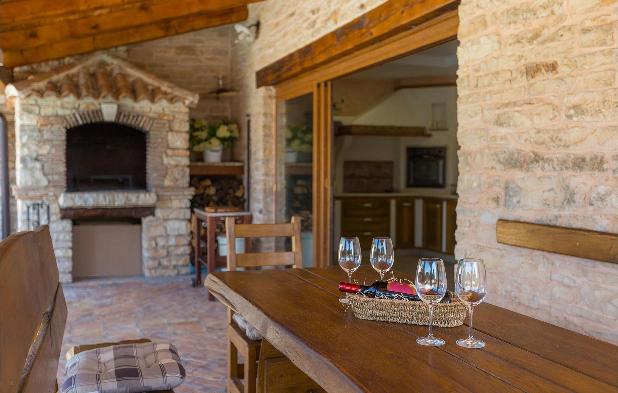 Dette dejlige traditionelle stenhus har tre soveværelser til en maksimal kapacitet på 6 gæster. Det er blevet smukt restaureret med en masse karakter. Der er masser af originale funktioner som de gamle fliser i stuen. Alle værelser er komfortable og har aircondition. Wi-Fi internet er også tilgængeligt. En overdækket terrasse med en grill giver den perfekte spiseplads ved den stenbeklædte pool, som er omgivet af stenmure og giver fuldstændig privatliv. Villaen ligger for enden af landsbyen nedsænket i et afslappende naturligt miljø og derfor ideel til familieaktiviteter, romantiske udflugter og afslapning. Villa Milica er en af de første villaer i Istrien belønnet med et Eco Domus-certifikat, som garanterer, at gæsterne bor i en miljøvenlig villa. For at få certifikatet skulle villaen opfylde betingelser som at bruge miljøvenlige rengøringsmidler og genbrug. Ideen med projektet er at gøre Istrien til en "grøn region" og begrænse den påvirkning, villaerne har på det lokale miljø. En tør damprenser i villaen garanterer et rent og sikkert miljø. Den lille landsby Sajini er den perfekte base for dagsture til de berømte byer Pula, Rovinj, Labin og Opatija. Det er også et glimrende sted at kombinere både afslapning og aktiv ferie. Pula er den vigtigste og største havn i Istrien, og for nylig en rigtig turistskat. Den velbeskyttede Pula-bugt er blandt de bedste naturlige havne i Adriaterhavet. Også, omgivet af det frodige grønne landskab i det sydlige Istrien, besidder byen ekstraordinær skønhed og kultur. Denne ferieby ved kysten med et overraskende antal historiske monumenter, storslåede strande og interiørets fantastiske skønhed er et ideelt sted at slappe af. Langt det mest mindeværdige symbol på den romerske indflydelse i Istrien er den storslåede tyve århundreder gamle by Arena, det sjettestørste amfiteater i verden. I dag byder Pula på gode muligheder for ferier. Turisttilbuddet omfatter mange legepladser til sport, rekreation og underholdning, danseterrasser, diskoteker, kasinoer samt diverse udflugter. Byen er stolt af sit velbevarede amfiteater, det største amforasted i verden, Augustus-templet, mange kirker, klostre, venetiansk og østrig-ungarsk arkitektur. Der er et fremragende og varieret udvalg af mad og vin i dens mange restauranter, såvel som museer, gallerier, koncertbegivenheder, fantastisk natteliv og mange andre attraktioner i denne berømte by. Villa Milica er ikke et festhus, og ungdomsgrupper er ikke tilladt.