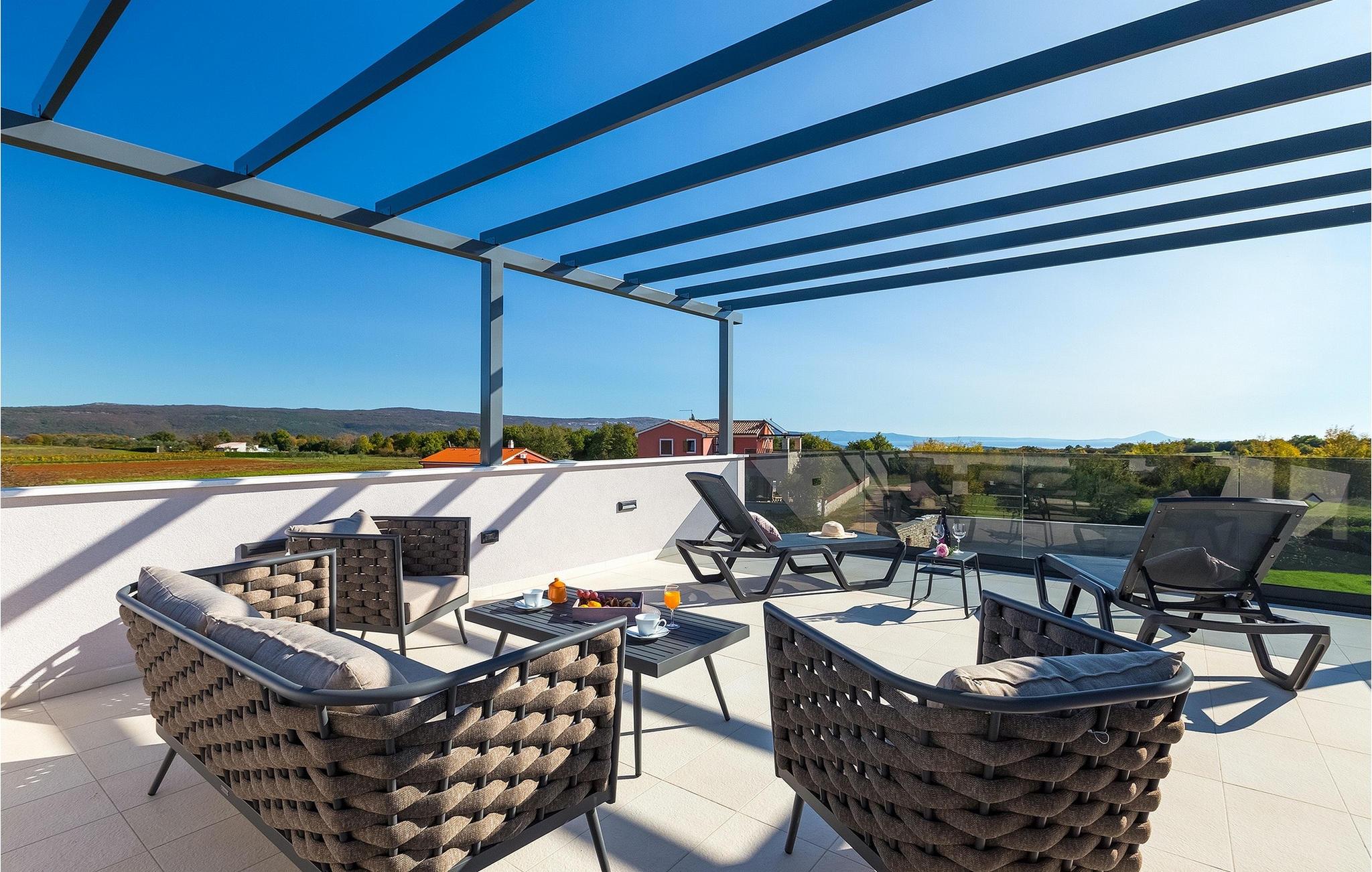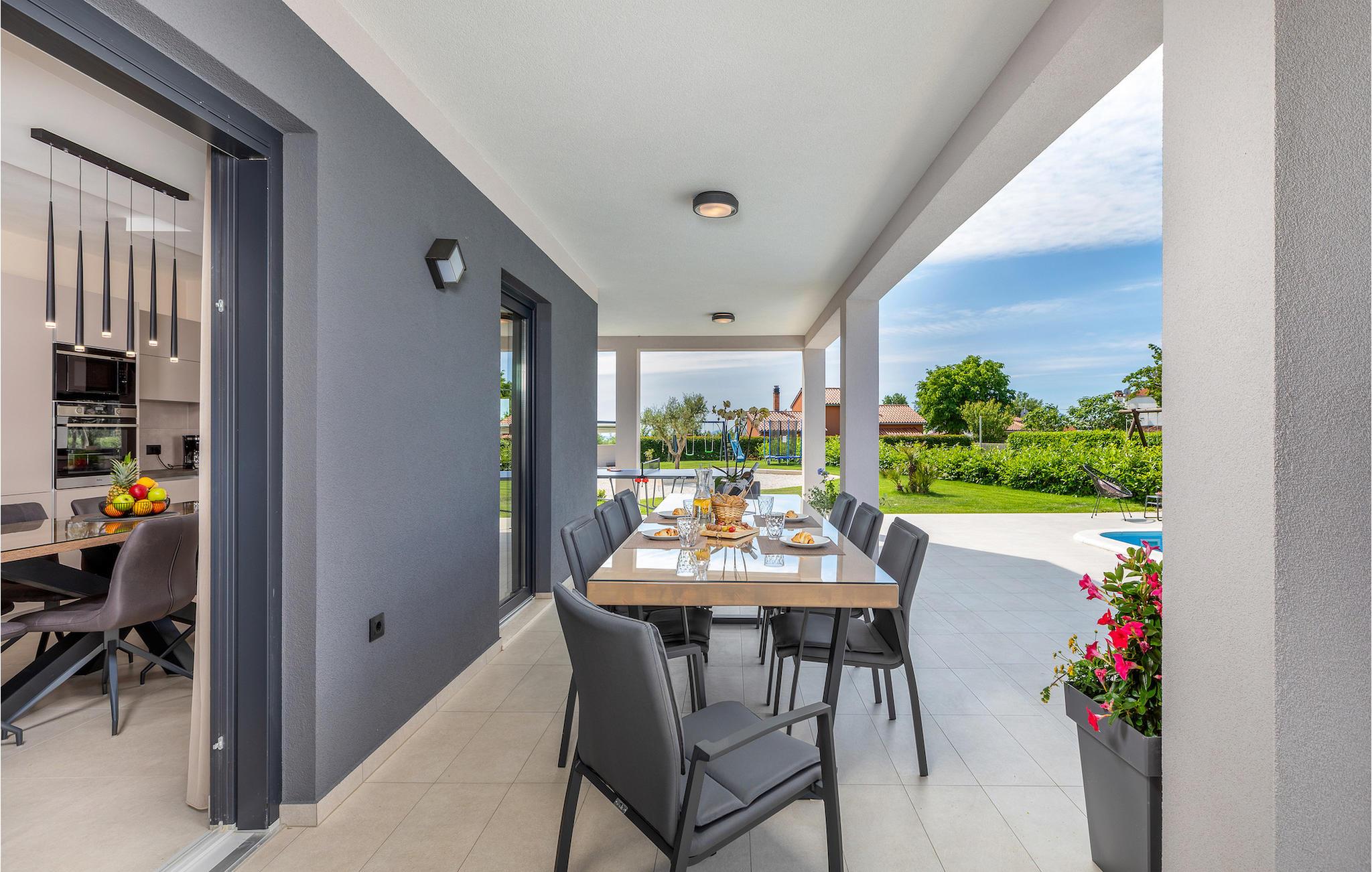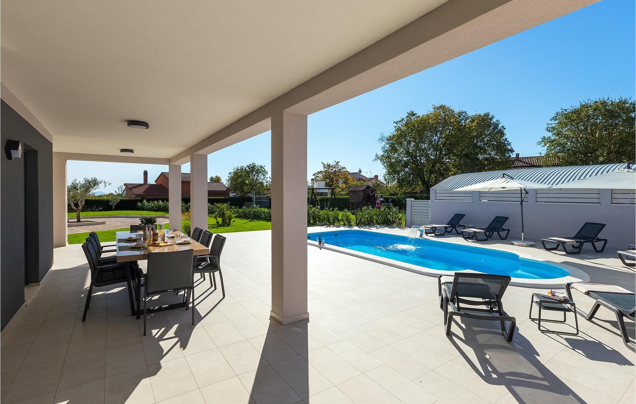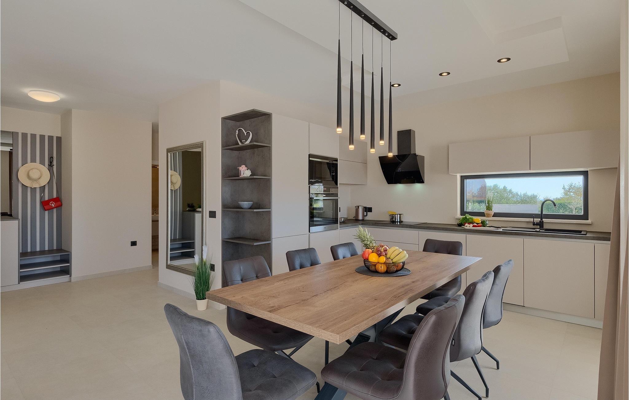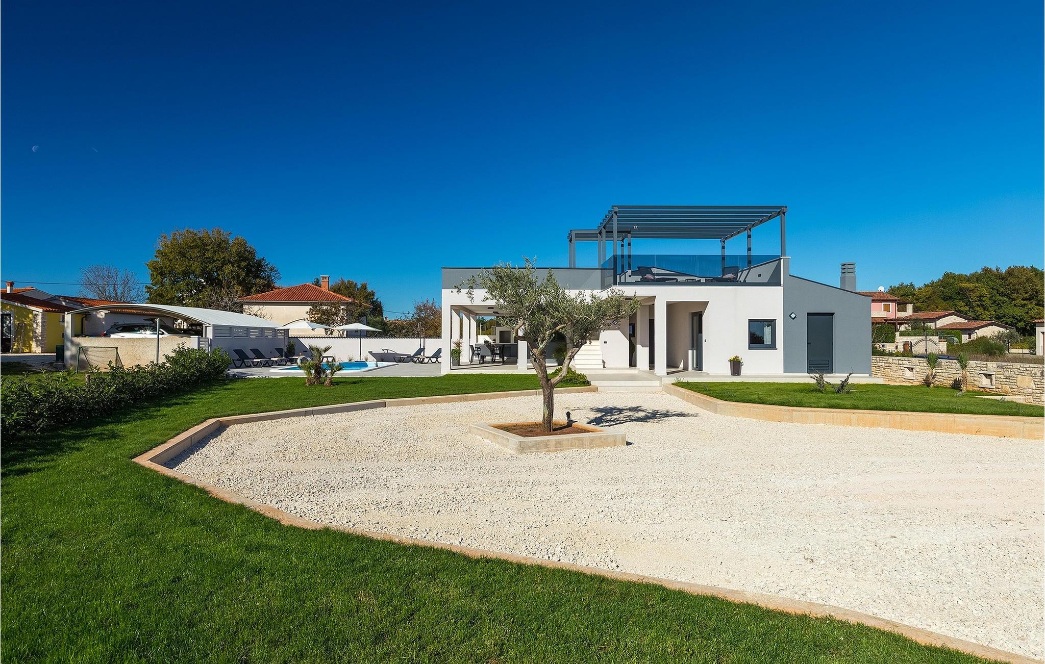 Den moderne indrettede Villa Bella Vita ligger midt i et malerisk landskab i Istrien, omgivet af bakker og olivenlunde. Villa Bella Vita tilbyder komfortabel indkvartering til 8 personer i smukt dekorerede omgivelser. Ud over det smukt dekorerede interiør, er det, der gør denne villa magisk, dens udsigt, der strækker sig til bugten Blaz. Stueetagen består af stue, køkken, spisestue, tre soveværelser med eget badeværelse. Et af badeværelserne har direkte adgang til terrassen og poolen. På første sal er der en stor terrasse med panoramaudsigt over havet, hvor du kan tilbringe aftenen med at nyde en af de smukkeste solnedgange. Tilbring dine dage i denne afslappende villa, der vil give dig en ideel ferie for din familie og venner, hvor du kan nyde solen ved poolen. Og hvis du vil forfriske dig selv, er bugten kun 2 km væk. Pak dine kufferter og besøg Villa Bella Vita og udforsk det smukke Istrien!
