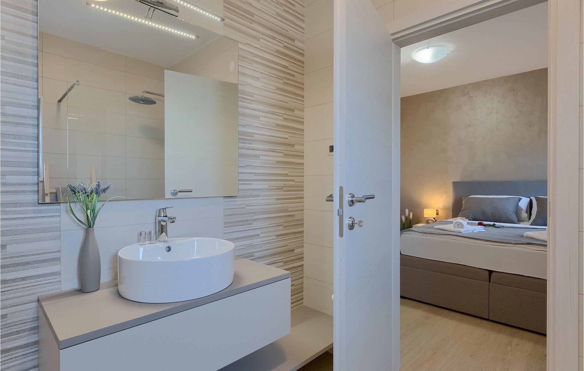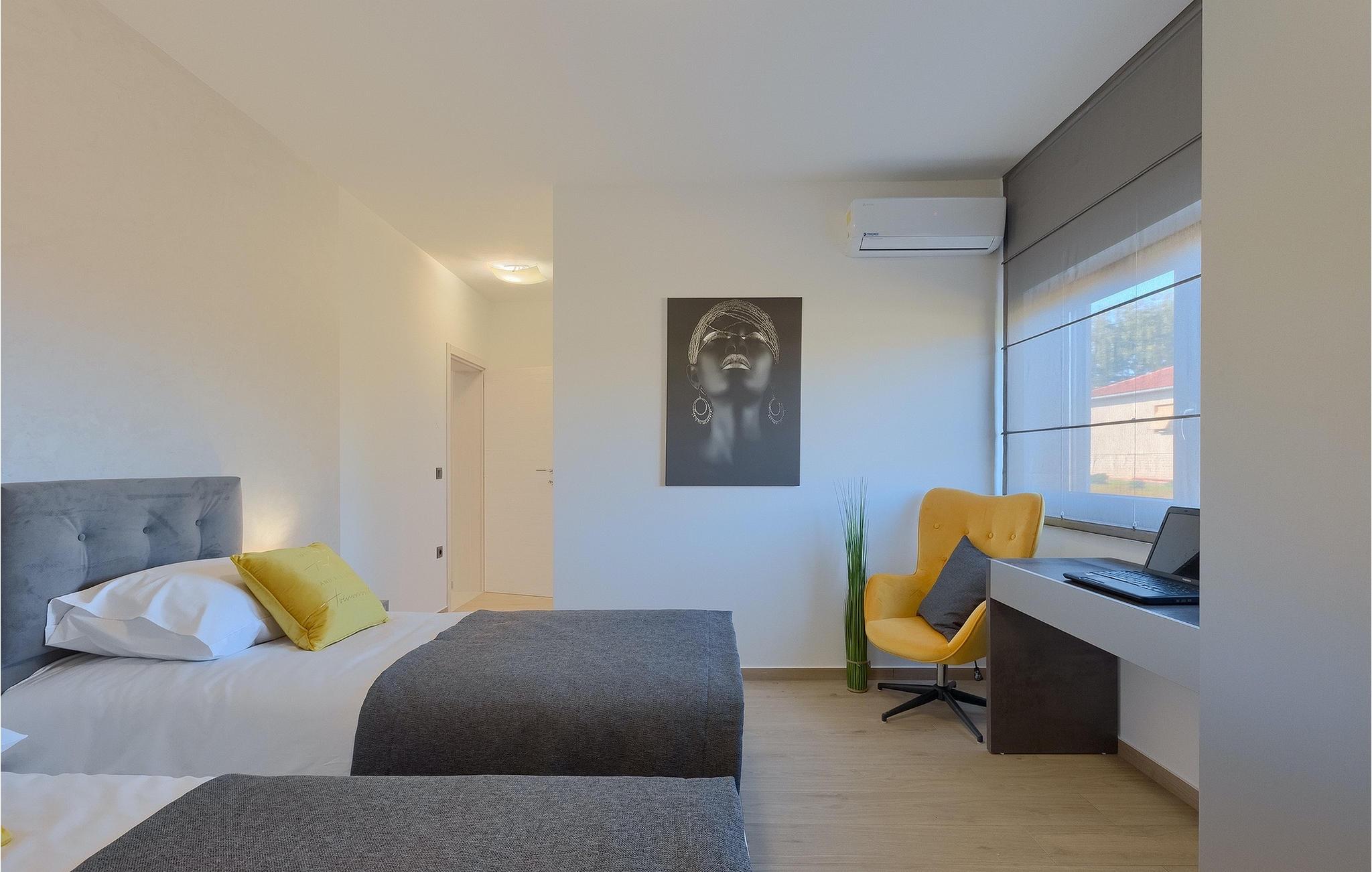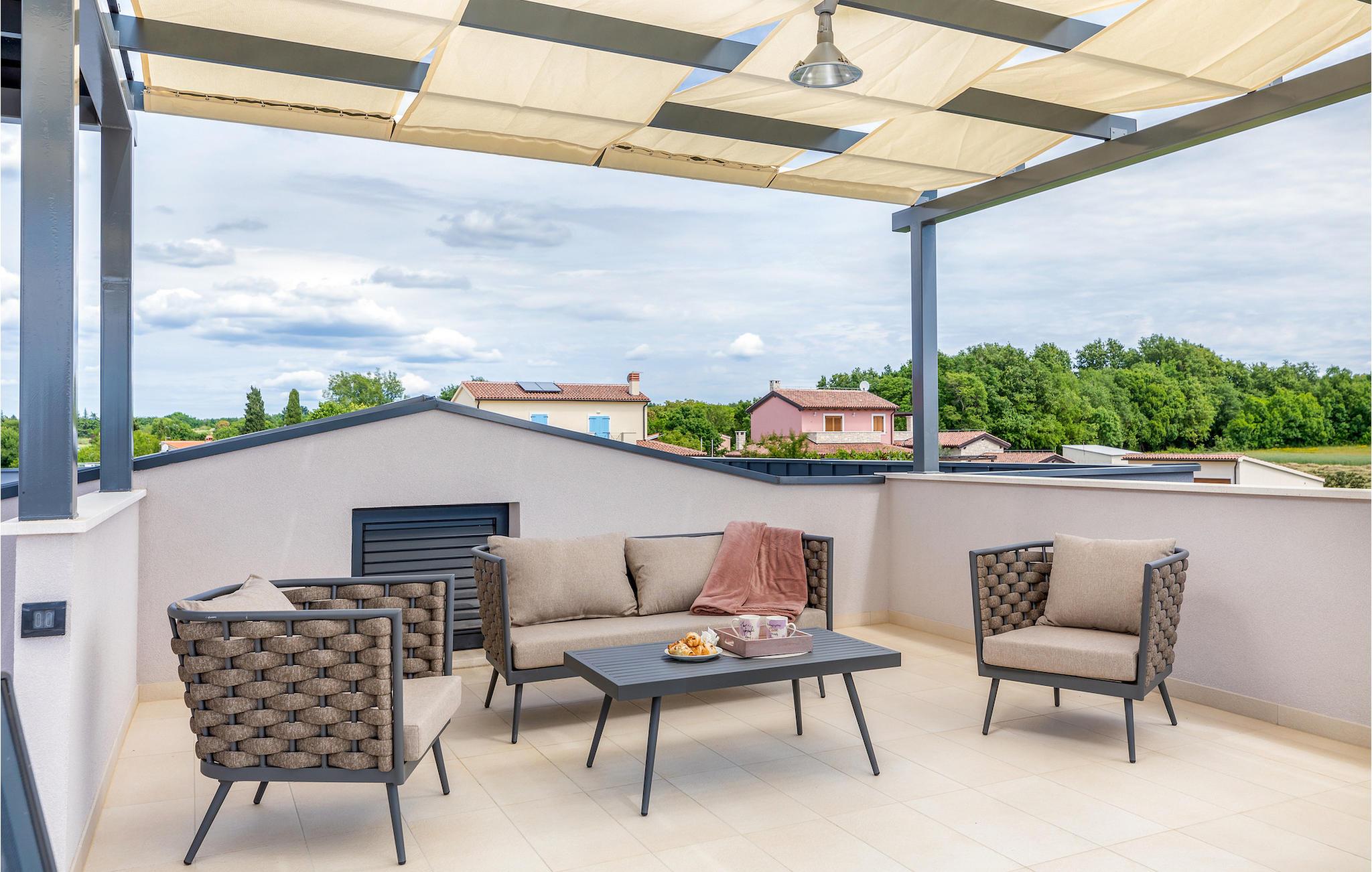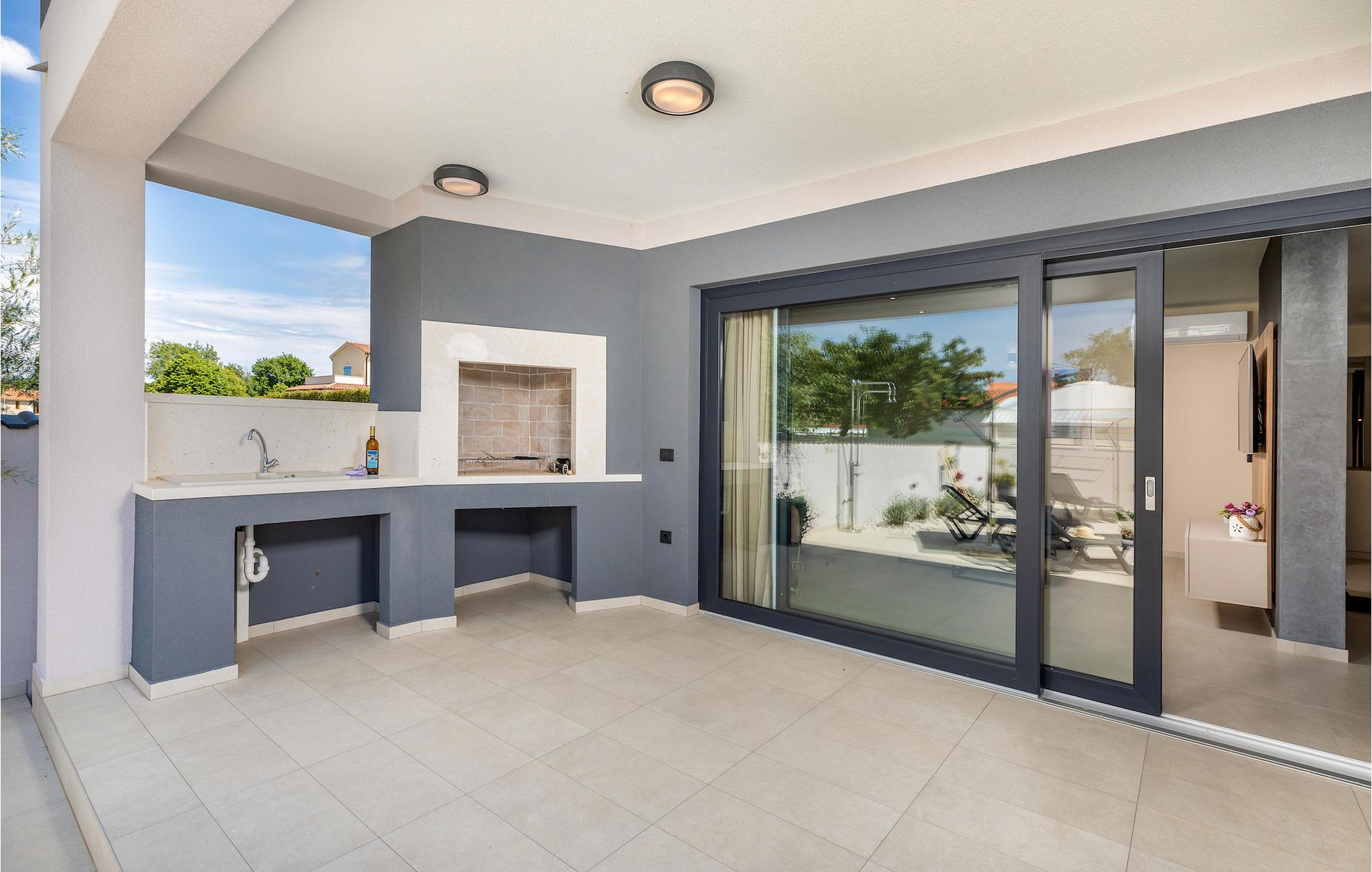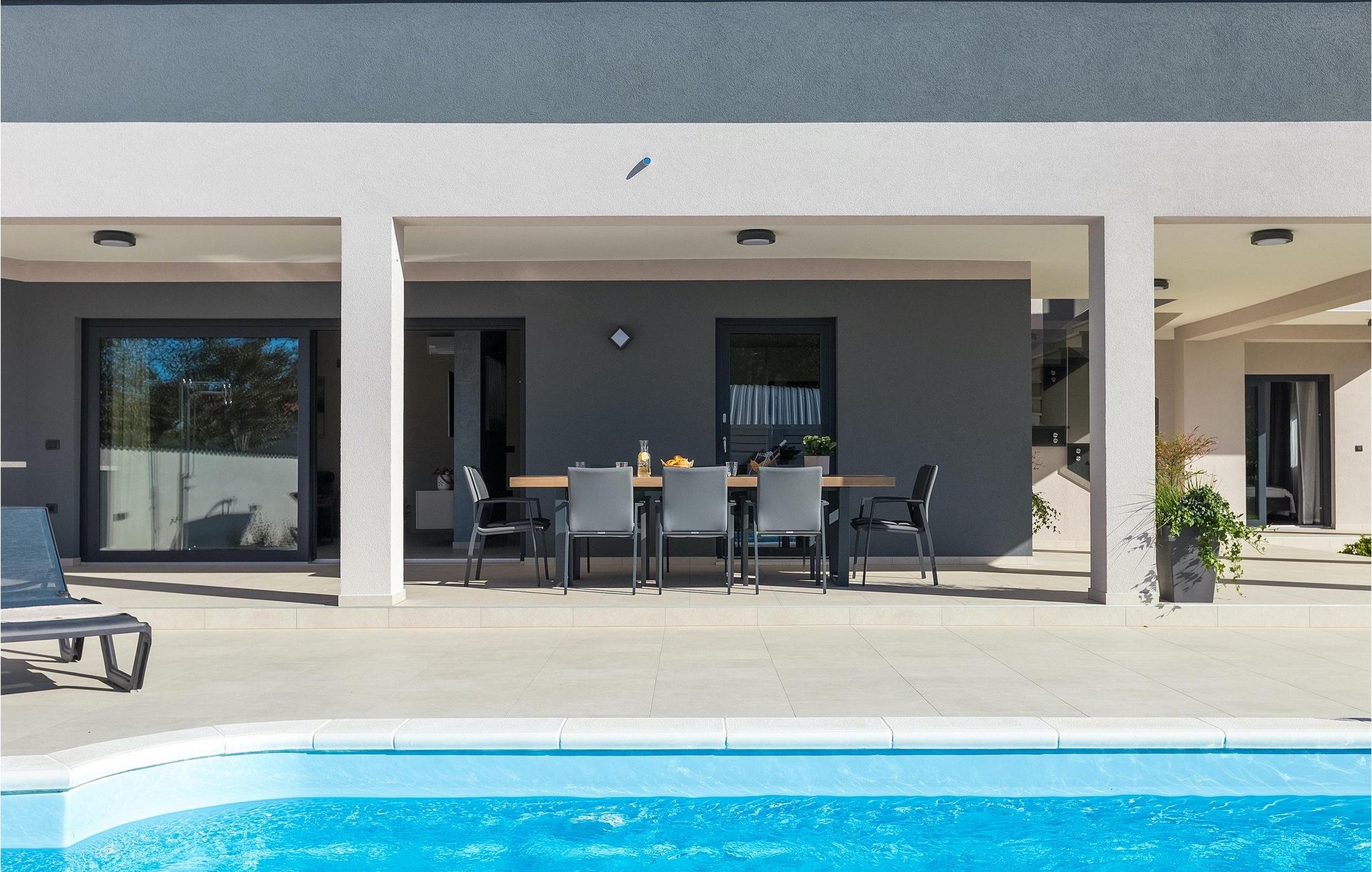 Den moderne indrettede Villa Bella Vita ligger midt i et malerisk landskab i Istrien, omgivet af bakker og olivenlunde. Villa Bella Vita tilbyder komfortabel indkvartering til 8 personer i smukt dekorerede omgivelser. Ud over det smukt dekorerede interiør, er det, der gør denne villa magisk, dens udsigt, der strækker sig til bugten Blaz. Stueetagen består af stue, køkken, spisestue, tre soveværelser med eget badeværelse. Et af badeværelserne har direkte adgang til terrassen og poolen. På første sal er der en stor terrasse med panoramaudsigt over havet, hvor du kan tilbringe aftenen med at nyde en af de smukkeste solnedgange. Tilbring dine dage i denne afslappende villa, der vil give dig en ideel ferie for din familie og venner, hvor du kan nyde solen ved poolen. Og hvis du vil forfriske dig selv, er bugten kun 2 km væk. Pak dine kufferter og besøg Villa Bella Vita og udforsk det smukke Istrien!