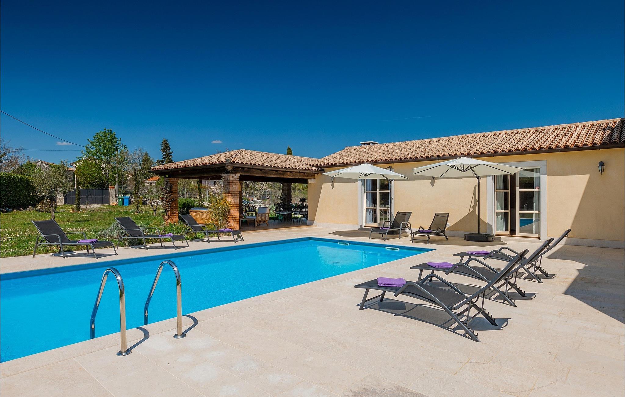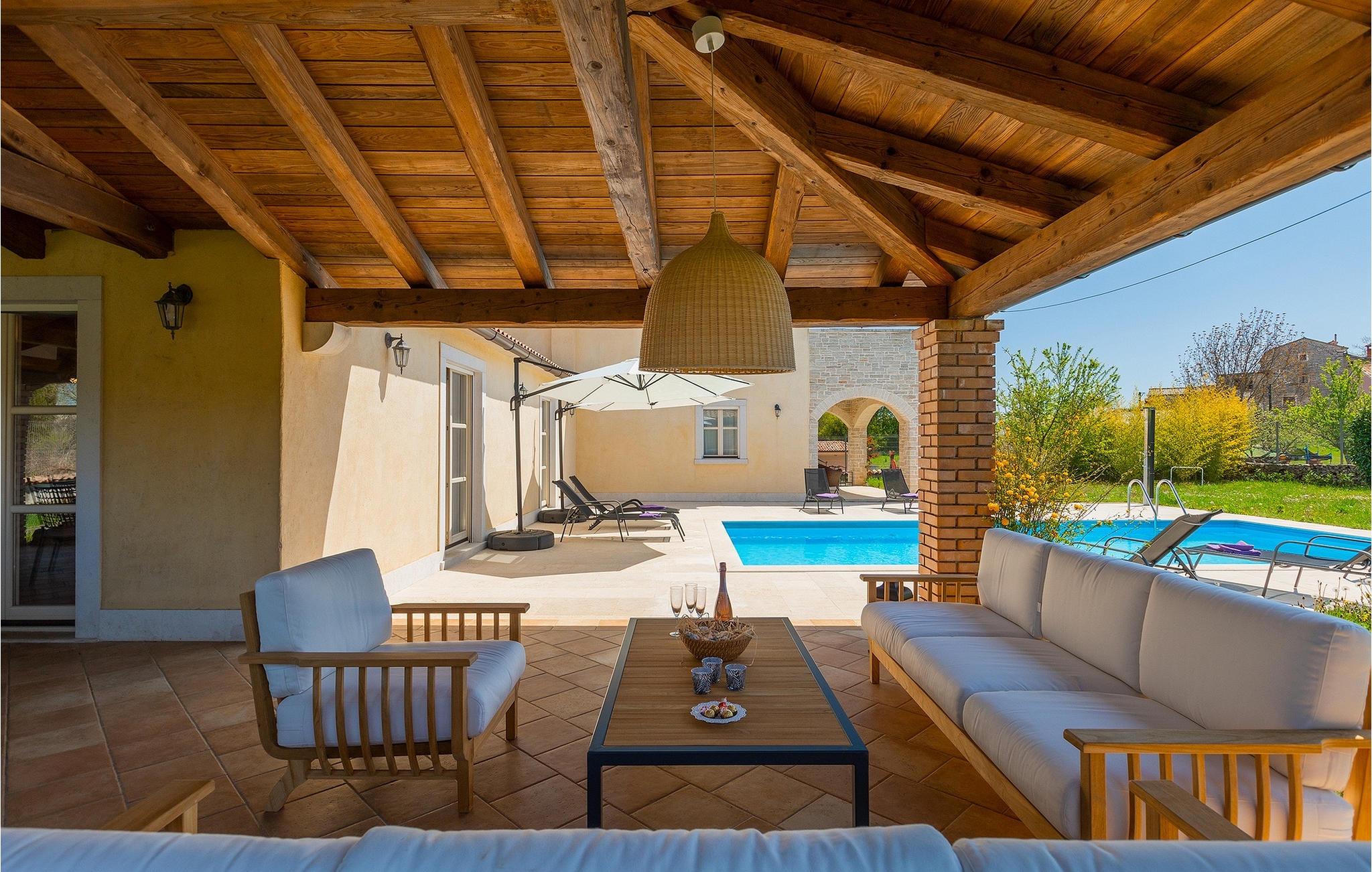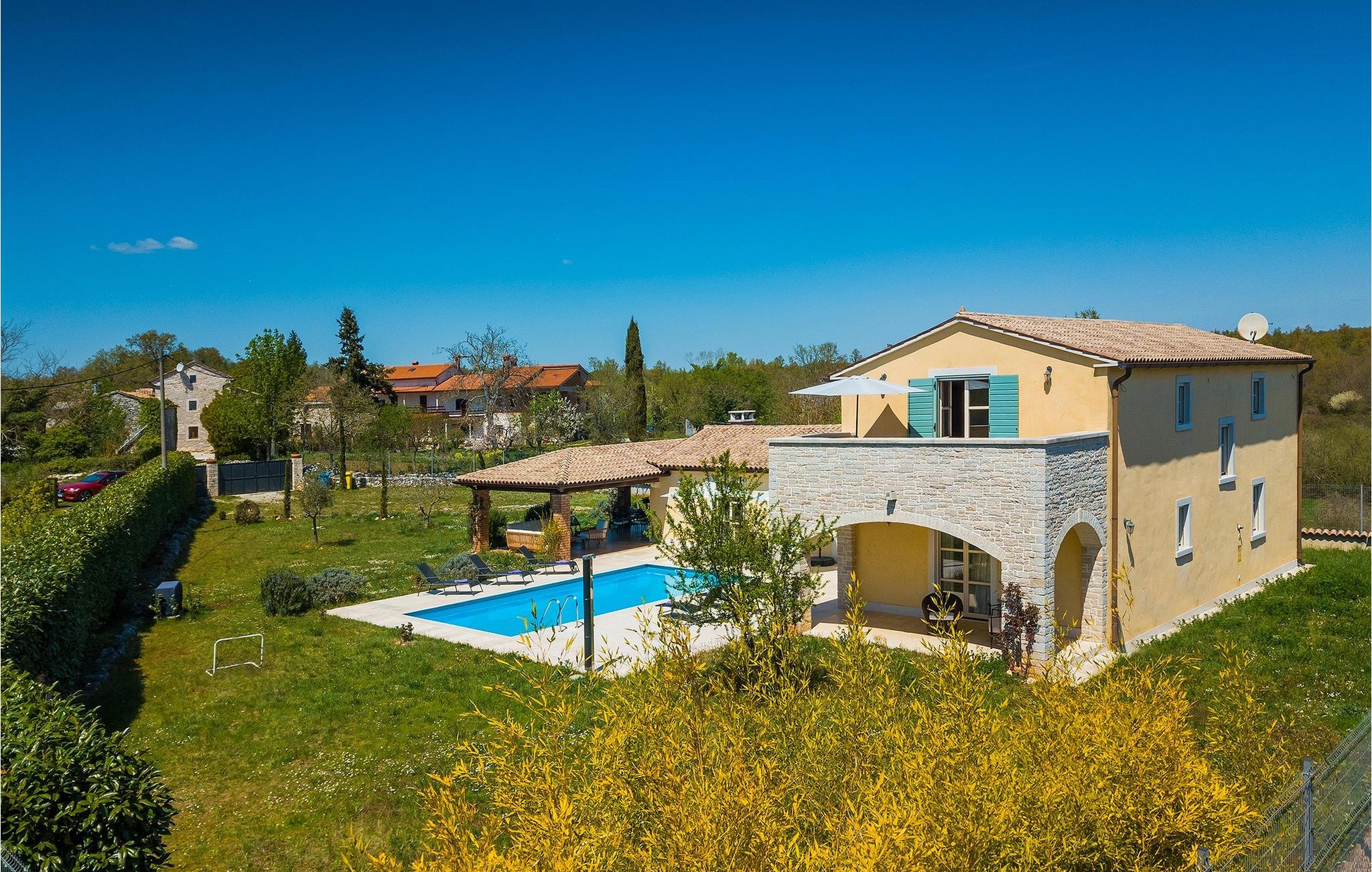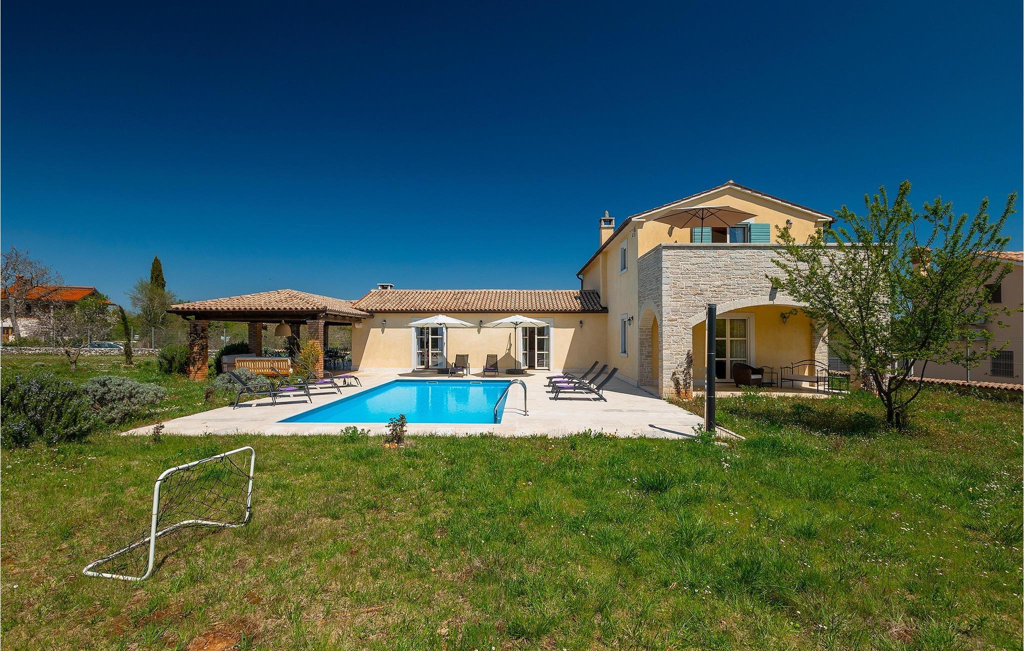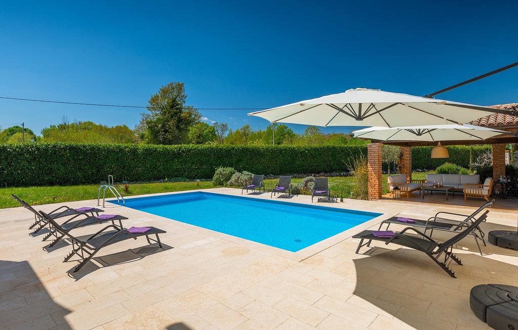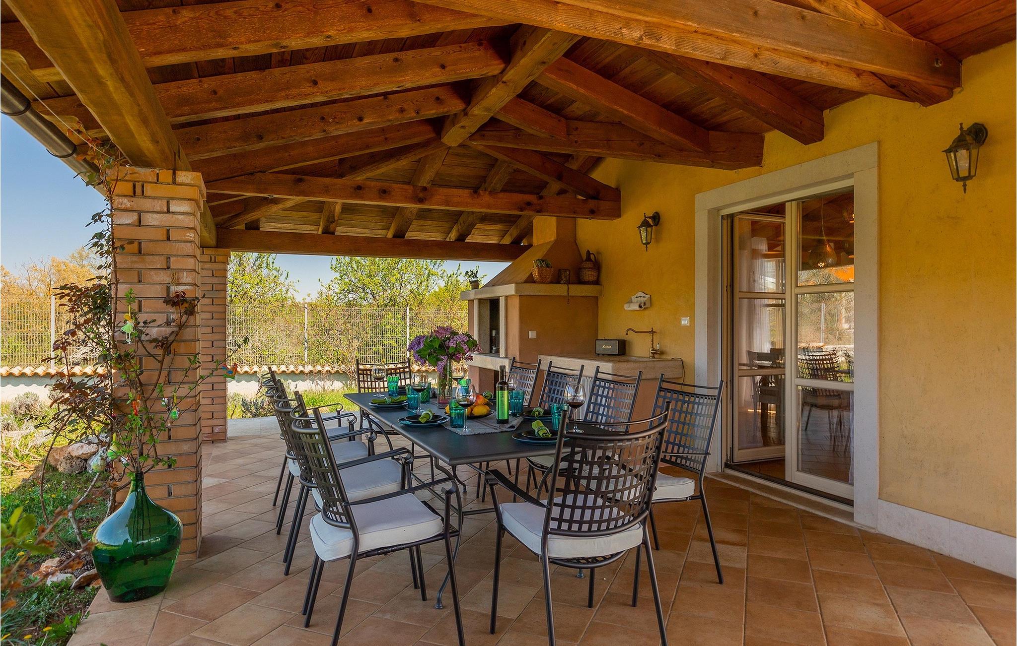 Den smukke Villa Lavanda Savicenta ligger i den lille landsby Rojnici i Barban kommune. Familievillaen kan i alt rumme op til 10 personer. Stueetagen består af en rummelig stue med pejs, en spiseplads, et fuldt udstyret køkken og to soveværelser med eget badeværelse. Ovenpå finder du yderligere to soveværelser, også med ensuite badeværelser. I alt har villaen 4 soveværelser, hvoraf to er udstyret med dobbeltseng og de to andre med to enkeltsenge. Foran villaen er en 40m2 privat pool, hvor du kan tage en forfriskende svømmetur eller slappe af på en af de komfortable liggestole. Ved siden af poolområdet er en overdækket spiseplads med en kulgrill, hvor du kan tilberede lækre måltider til din familie og venner. Villaen er det perfekte valg for en stor familie med børn eller en gruppe venner, der ønsker at tilbringe en afslappende ferie i Istrien. Den charmerende villa er beliggende i en lille landsby Rojnici, i kommunen Barban. Alle de nødvendige faciliteter såsom butikker, caféer og restauranter ligger i nærheden af villaen. Hvis du vil holde din ferie ved det turkise Adriaterhav, ligger den første strand 18 kilometer væk i Trget. Placeringen af villaen er et ideelt udgangspunkt for mange dagsture. Vi anbefaler, at du besøger kystbyer som Pula og dets storslåede amfiteater, Rovinj og mange farverige huse, og Porec med dens Euphrasian Basilica, som tilhører Unescos kulturarv. For alle naturelskere er en uundværlig destination at besøge den eneste nationalpark i Istrien, og det er Brijuni. Dette magiske sted vil glæde dig med smukke strande, uberørt natur og talrige dyreliv. Det centrale Istrien er ideelt for alle elskere af aktiv sport og gastronomi. Besøg dalen ved floden Mirna og adskillige byer på bakkerne, såsom Motovun, Grožnjan og Buzet.