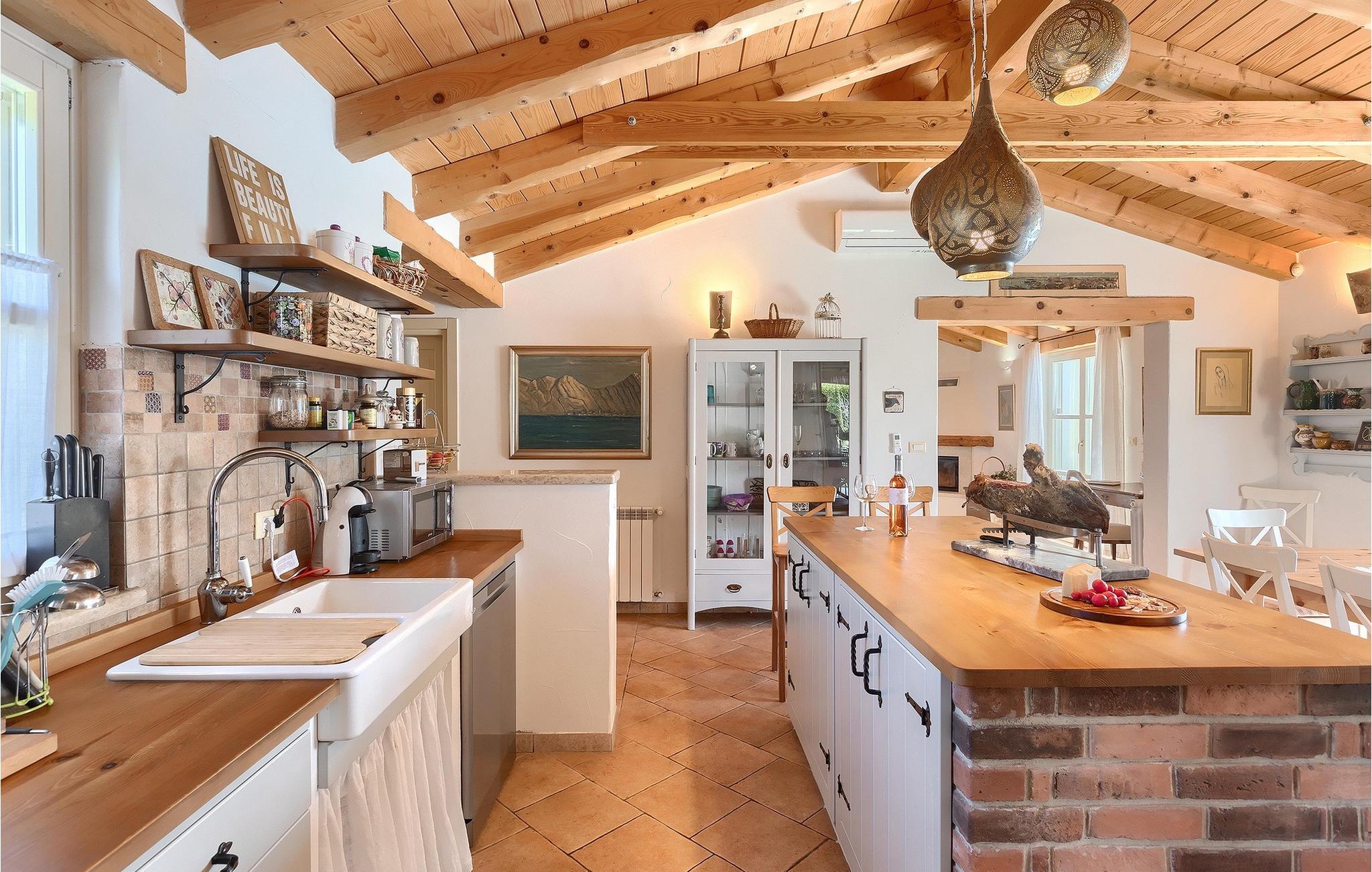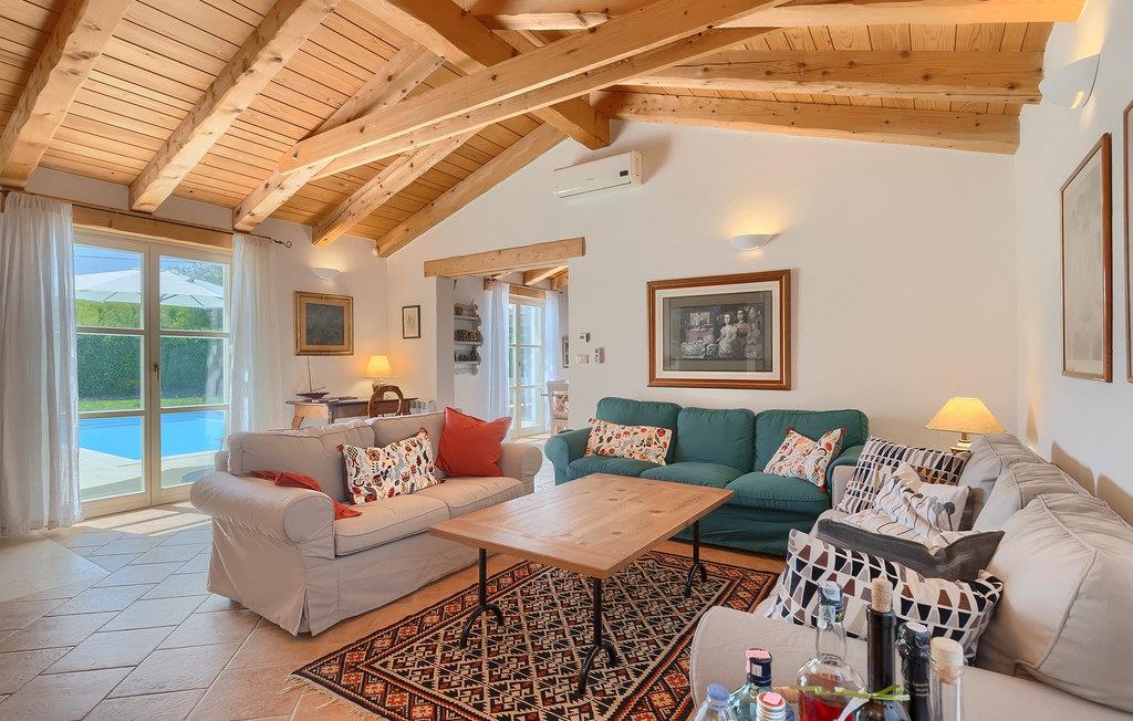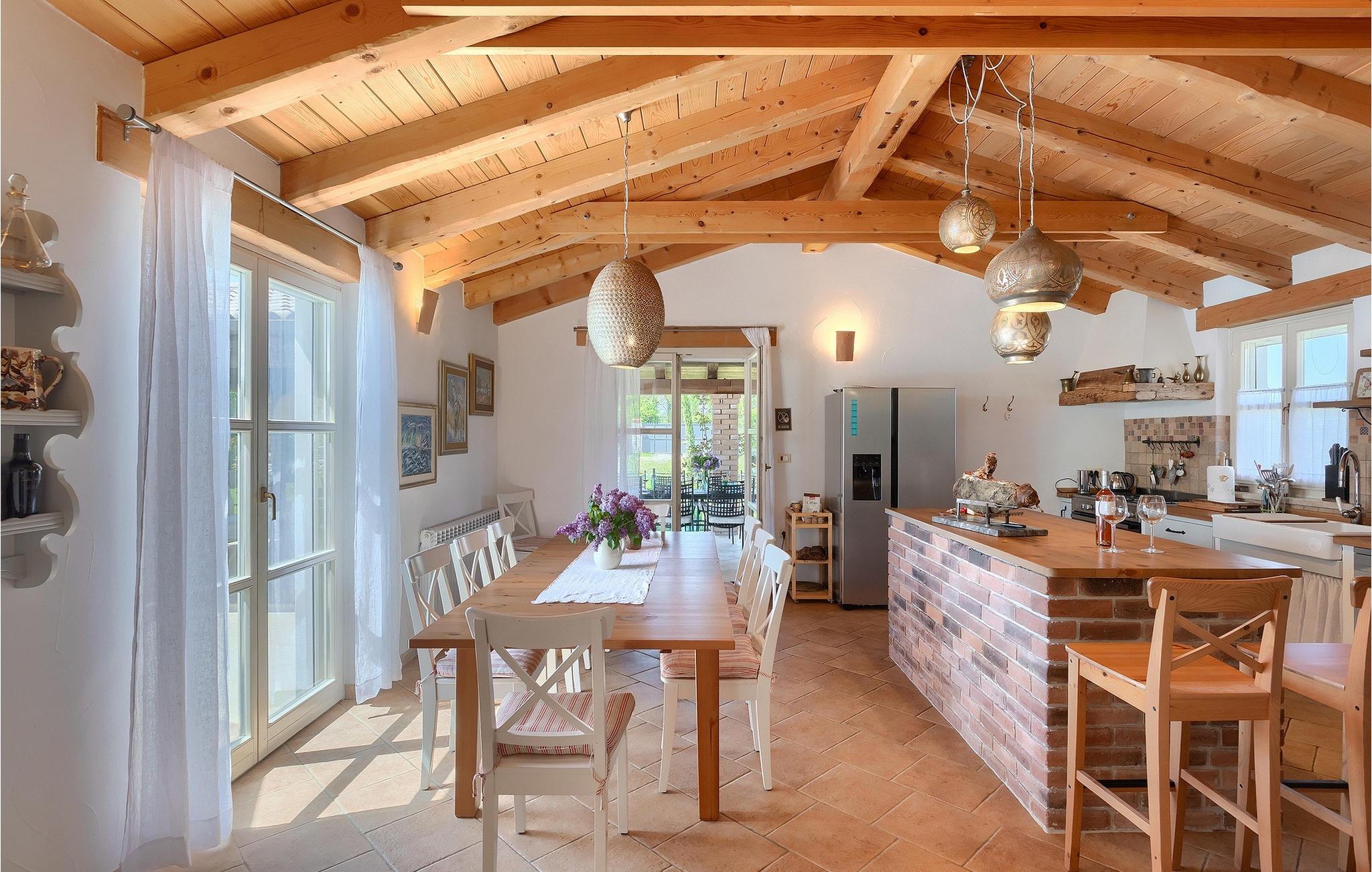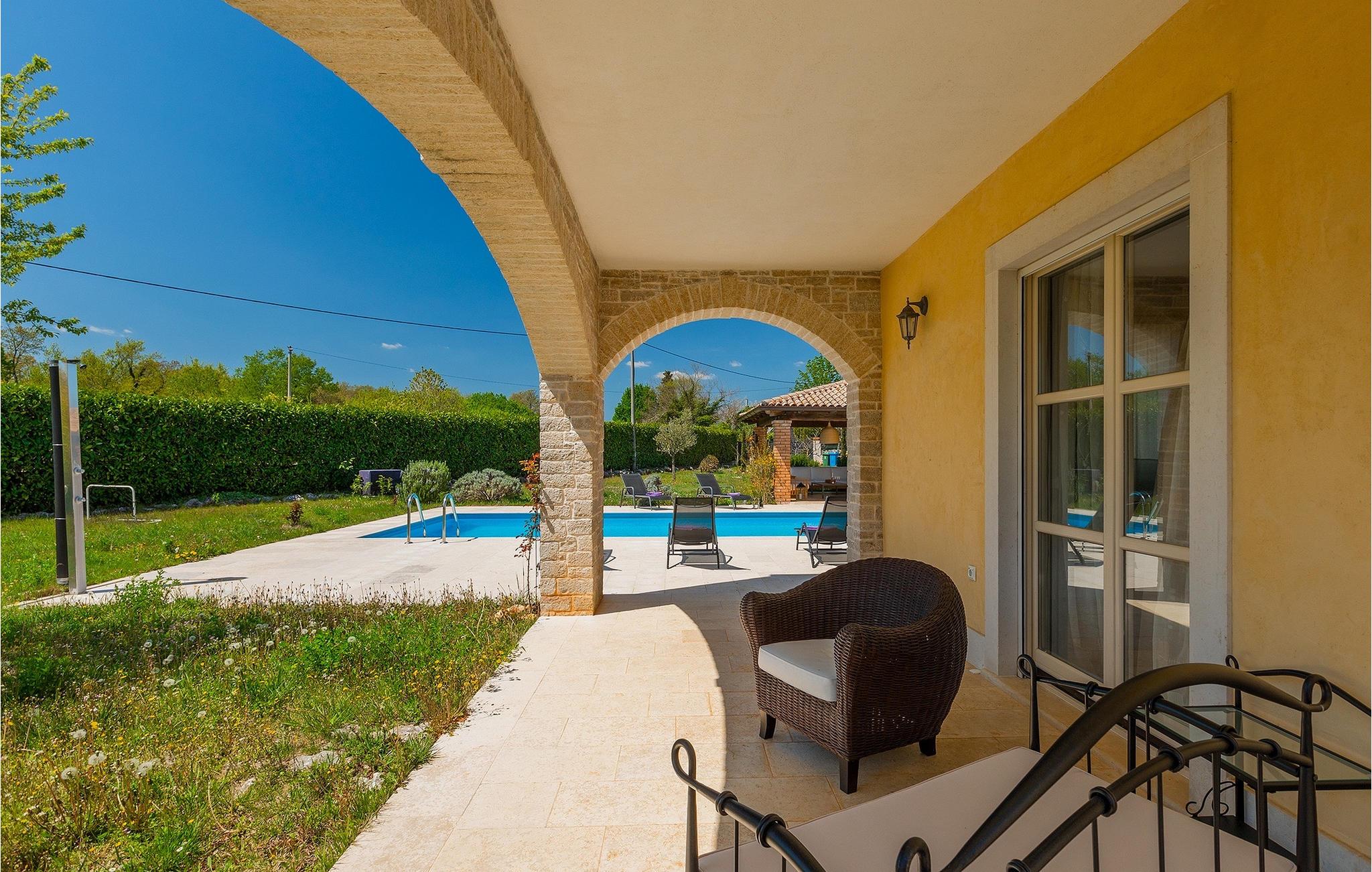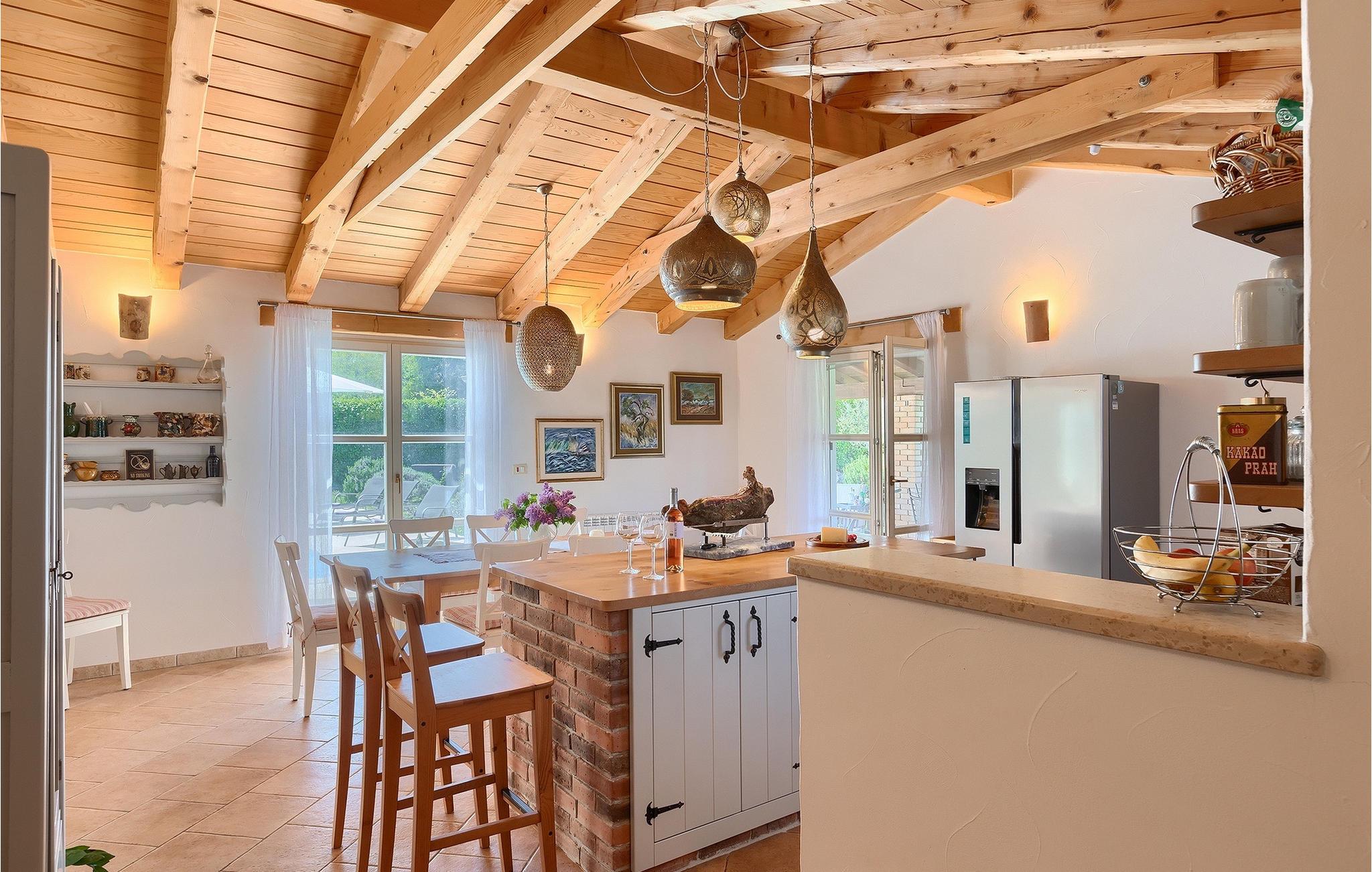 Den smukke Villa Lavanda Savicenta ligger i den lille landsby Rojnici i Barban kommune. Familievillaen kan i alt rumme op til 10 personer. Stueetagen består af en rummelig stue med pejs, en spiseplads, et fuldt udstyret køkken og to soveværelser med eget badeværelse. Ovenpå finder du yderligere to soveværelser, også med ensuite badeværelser. I alt har villaen 4 soveværelser, hvoraf to er udstyret med dobbeltseng og de to andre med to enkeltsenge. Foran villaen er en 40m2 privat pool, hvor du kan tage en forfriskende svømmetur eller slappe af på en af de komfortable liggestole. Ved siden af poolområdet er en overdækket spiseplads med en kulgrill, hvor du kan tilberede lækre måltider til din familie og venner. Villaen er det perfekte valg for en stor familie med børn eller en gruppe venner, der ønsker at tilbringe en afslappende ferie i Istrien. Den charmerende villa er beliggende i en lille landsby Rojnici, i kommunen Barban. Alle de nødvendige faciliteter såsom butikker, caféer og restauranter ligger i nærheden af villaen. Hvis du vil holde din ferie ved det turkise Adriaterhav, ligger den første strand 18 kilometer væk i Trget. Placeringen af villaen er et ideelt udgangspunkt for mange dagsture. Vi anbefaler, at du besøger kystbyer som Pula og dets storslåede amfiteater, Rovinj og mange farverige huse, og Porec med dens Euphrasian Basilica, som tilhører Unescos kulturarv. For alle naturelskere er en uundværlig destination at besøge den eneste nationalpark i Istrien, og det er Brijuni. Dette magiske sted vil glæde dig med smukke strande, uberørt natur og talrige dyreliv. Det centrale Istrien er ideelt for alle elskere af aktiv sport og gastronomi. Besøg dalen ved floden Mirna og adskillige byer på bakkerne, såsom Motovun, Grožnjan og Buzet.