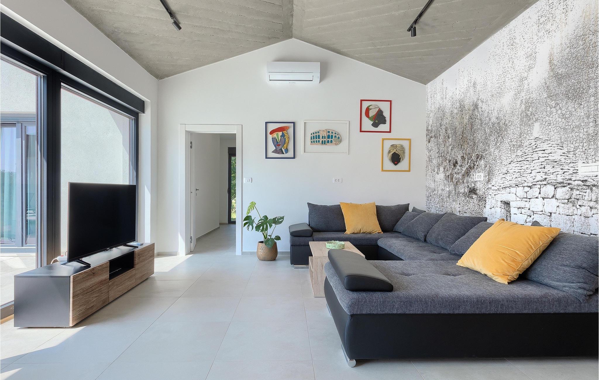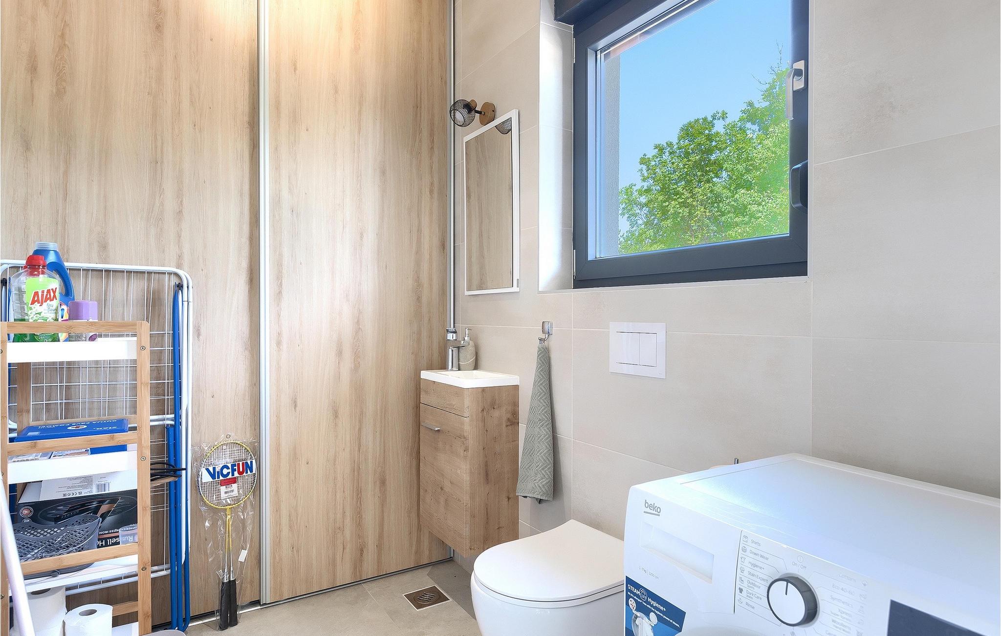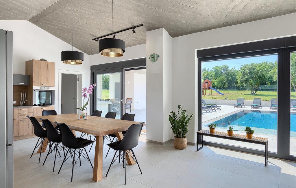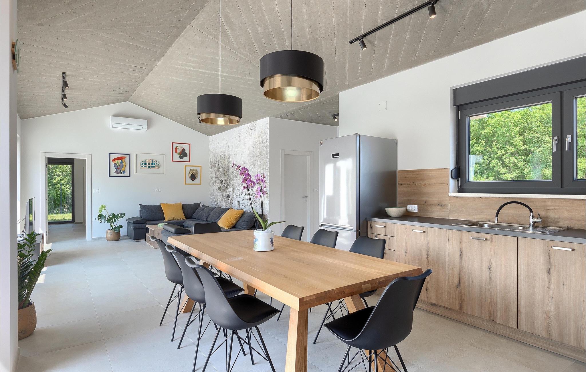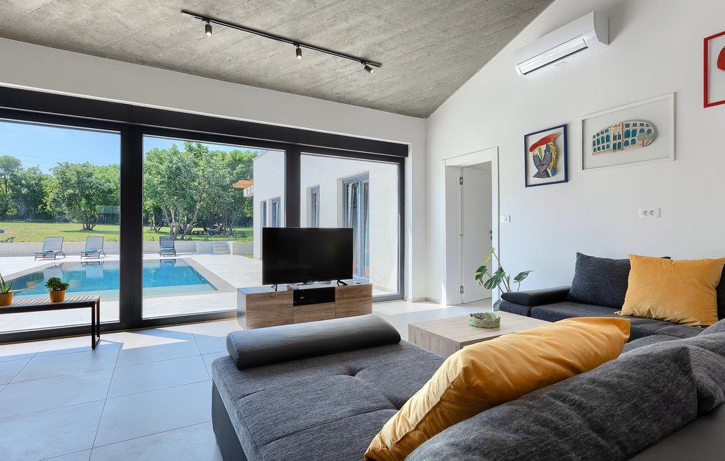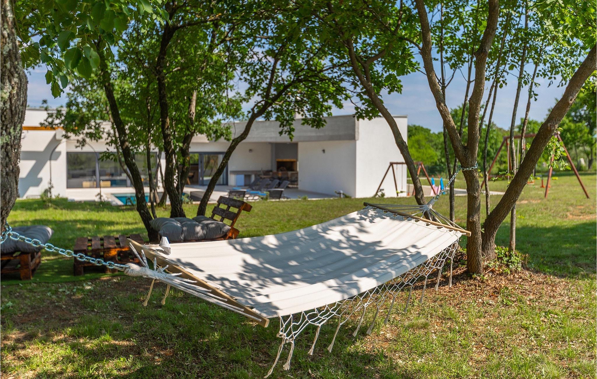 Villa Bateli ist eine modern eingerichtete und charmante einstöckige Villa, deren Außenbereich sich bis zu 4000 m2 erstreckt. Im Außenbereich befindet sich ein privater Pool, in dem Sie mit Ihren Liebsten schwimmen oder auf Liegestühlen die Sonnenstrahlen genießen können. Es gibt auch einen Ruhebereich mit einem großen Tisch, an dem Sie sich mit einem erfrischenden Getränk mit Blick auf den Pool abkühlen können. Während Sie sich ausruhen, können die anderen versuchen, köstliche istrische Köstlichkeiten auf dem Grill in der Sommerküche zuzubereiten, um die beliebte Gastronomie dieser Region zu erleben. Die Terrasse bietet einen Blick auf die idyllische istrische Landschaft, die von roter Erde und Wald charakterisiert ist. Von der Terrasse aus gelangt man direkt in das Innere des einstöckigen Hauses, wo sich ein lichtdurchflutetes Wohnzimmer, eine voll ausgestattete Küche und ein Esszimmer befinden, und im Anschluss ein Flur, der zu den anderen Räumen führt. Im Anschluss des Flures befinden sich 4 komfortable Schlafzimmer, die einen ruhigen und erholsamen Schlaf bieten, einige davon mit direktem Ausgang und Blick auf den Pool. Jedes Zimmer verfügt über ein eigenes Bad. Wenn Sie eine Villa für Ihren Traumurlaub in der Region Istrien suchen, buchen Sie die Villa Bateli und sichern Sie sich einen unvergesslichen Urlaub für sich und Ihre Lieben!Die Villa Bateli liegt in der Nähe der beliebten istrischen Städte Labin und Rabac, die für ihre Restaurants mit istrischen Köstlichkeiten und Kunstateliers bekannt sind. Bei Tagesausflügen können Sie die wunderschöne Landschaft Istriens genießen, einige Vorschläge sind Küstenstädte wie Pula, Porec, Rovinj oder Motovun. Aufgrund seiner begehrten zentralen Lage für Adrenalinliebhaber befindet sich der Adrenalinpark Galvani in der Nähe, wo Sie Aktivitäten wie Kajakfahren, Quadfahren, Safaris, Radfahren und Wandern auf bekannten Wegen durch die idyllische Natur ausprobieren können. Für Liebhaber der Gastronomie ist die Verkostung istrischer Köstlichkeiten - istrischer Malvasia, Prosciutto und Pasta mit Trüffeln, für die diese Region berühmt ist, ein Muss.