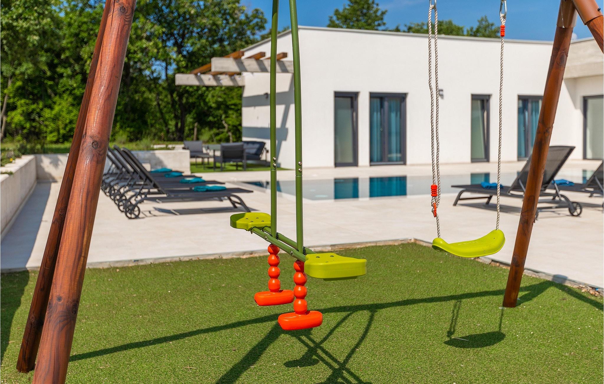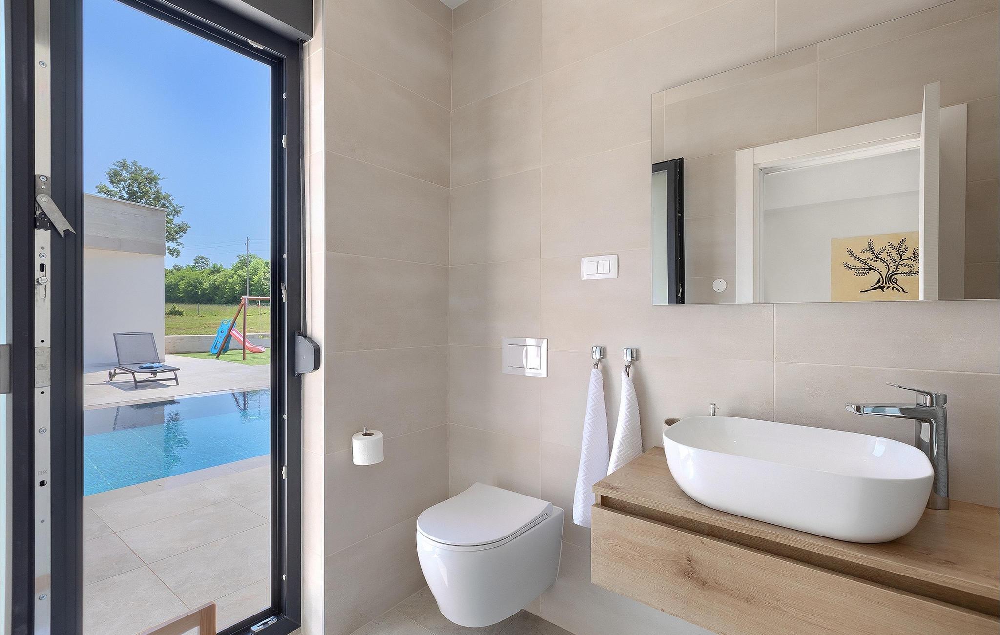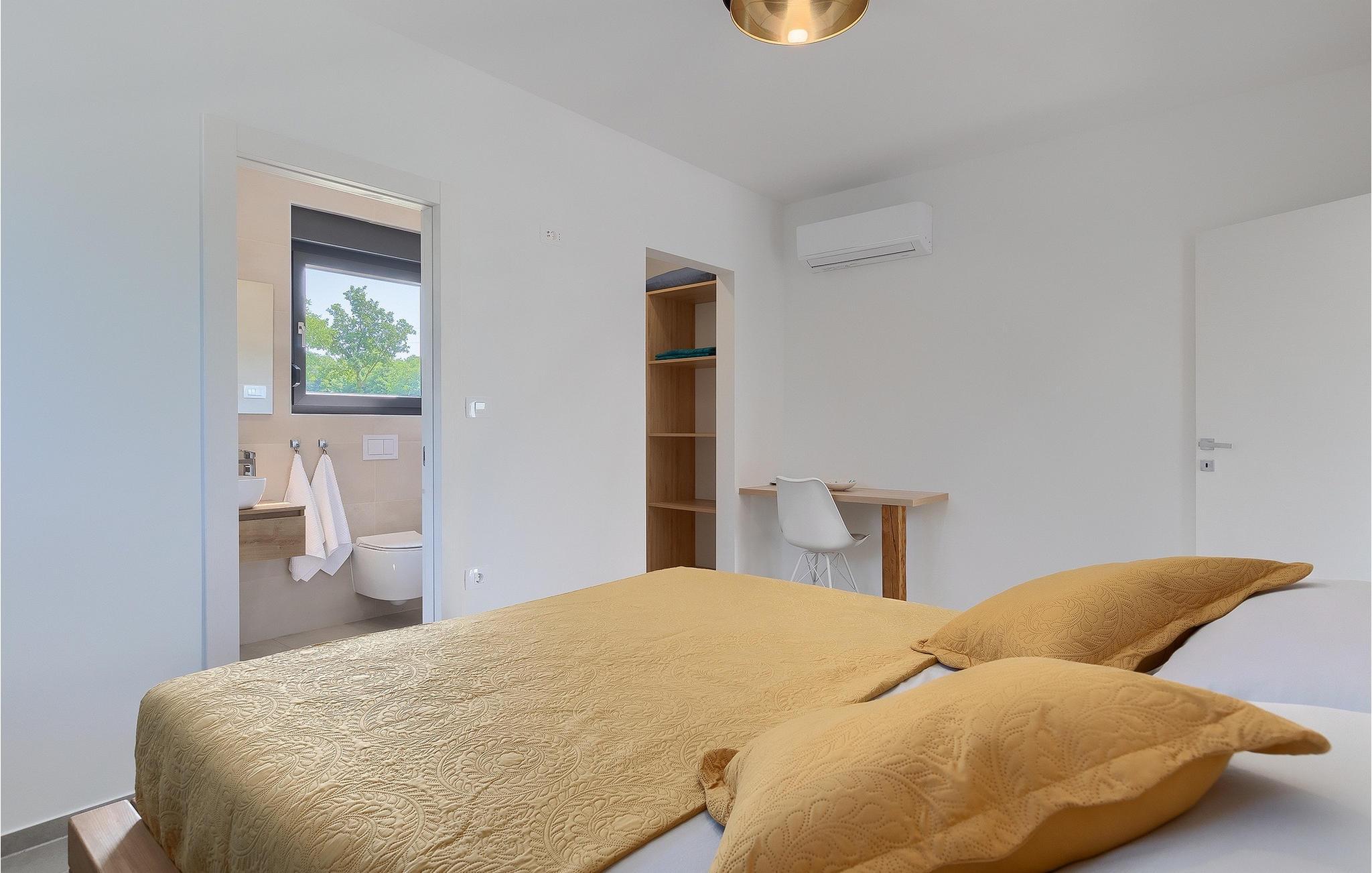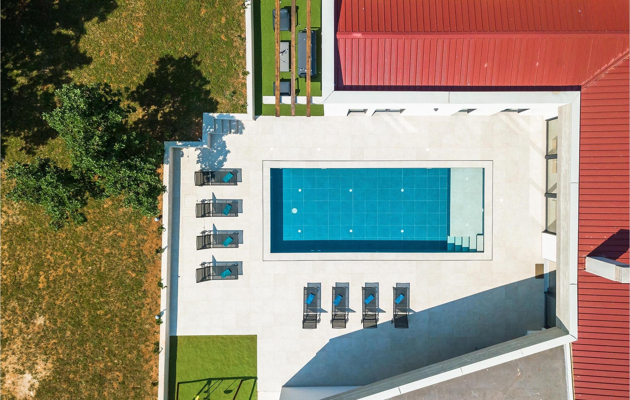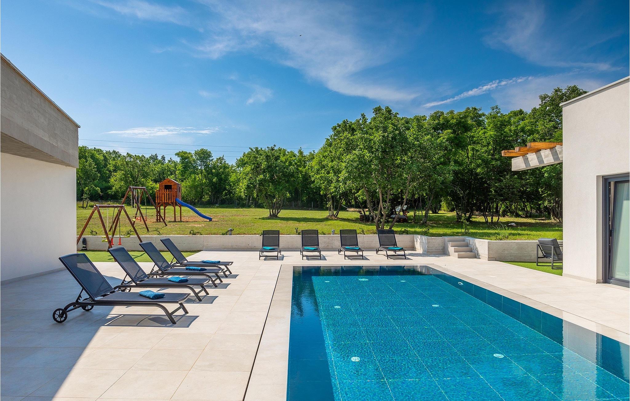 Villa Bateli ist eine modern eingerichtete und charmante einstöckige Villa, deren Außenbereich sich bis zu 4000 m2 erstreckt. Im Außenbereich befindet sich ein privater Pool, in dem Sie mit Ihren Liebsten schwimmen oder auf Liegestühlen die Sonnenstrahlen genießen können. Es gibt auch einen Ruhebereich mit einem großen Tisch, an dem Sie sich mit einem erfrischenden Getränk mit Blick auf den Pool abkühlen können. Während Sie sich ausruhen, können die anderen versuchen, köstliche istrische Köstlichkeiten auf dem Grill in der Sommerküche zuzubereiten, um die beliebte Gastronomie dieser Region zu erleben. Die Terrasse bietet einen Blick auf die idyllische istrische Landschaft, die von roter Erde und Wald charakterisiert ist. Von der Terrasse aus gelangt man direkt in das Innere des einstöckigen Hauses, wo sich ein lichtdurchflutetes Wohnzimmer, eine voll ausgestattete Küche und ein Esszimmer befinden, und im Anschluss ein Flur, der zu den anderen Räumen führt. Im Anschluss des Flures befinden sich 4 komfortable Schlafzimmer, die einen ruhigen und erholsamen Schlaf bieten, einige davon mit direktem Ausgang und Blick auf den Pool. Jedes Zimmer verfügt über ein eigenes Bad. Wenn Sie eine Villa für Ihren Traumurlaub in der Region Istrien suchen, buchen Sie die Villa Bateli und sichern Sie sich einen unvergesslichen Urlaub für sich und Ihre Lieben!Die Villa Bateli liegt in der Nähe der beliebten istrischen Städte Labin und Rabac, die für ihre Restaurants mit istrischen Köstlichkeiten und Kunstateliers bekannt sind. Bei Tagesausflügen können Sie die wunderschöne Landschaft Istriens genießen, einige Vorschläge sind Küstenstädte wie Pula, Porec, Rovinj oder Motovun. Aufgrund seiner begehrten zentralen Lage für Adrenalinliebhaber befindet sich der Adrenalinpark Galvani in der Nähe, wo Sie Aktivitäten wie Kajakfahren, Quadfahren, Safaris, Radfahren und Wandern auf bekannten Wegen durch die idyllische Natur ausprobieren können. Für Liebhaber der Gastronomie ist die Verkostung istrischer Köstlichkeiten - istrischer Malvasia, Prosciutto und Pasta mit Trüffeln, für die diese Region berühmt ist, ein Muss.