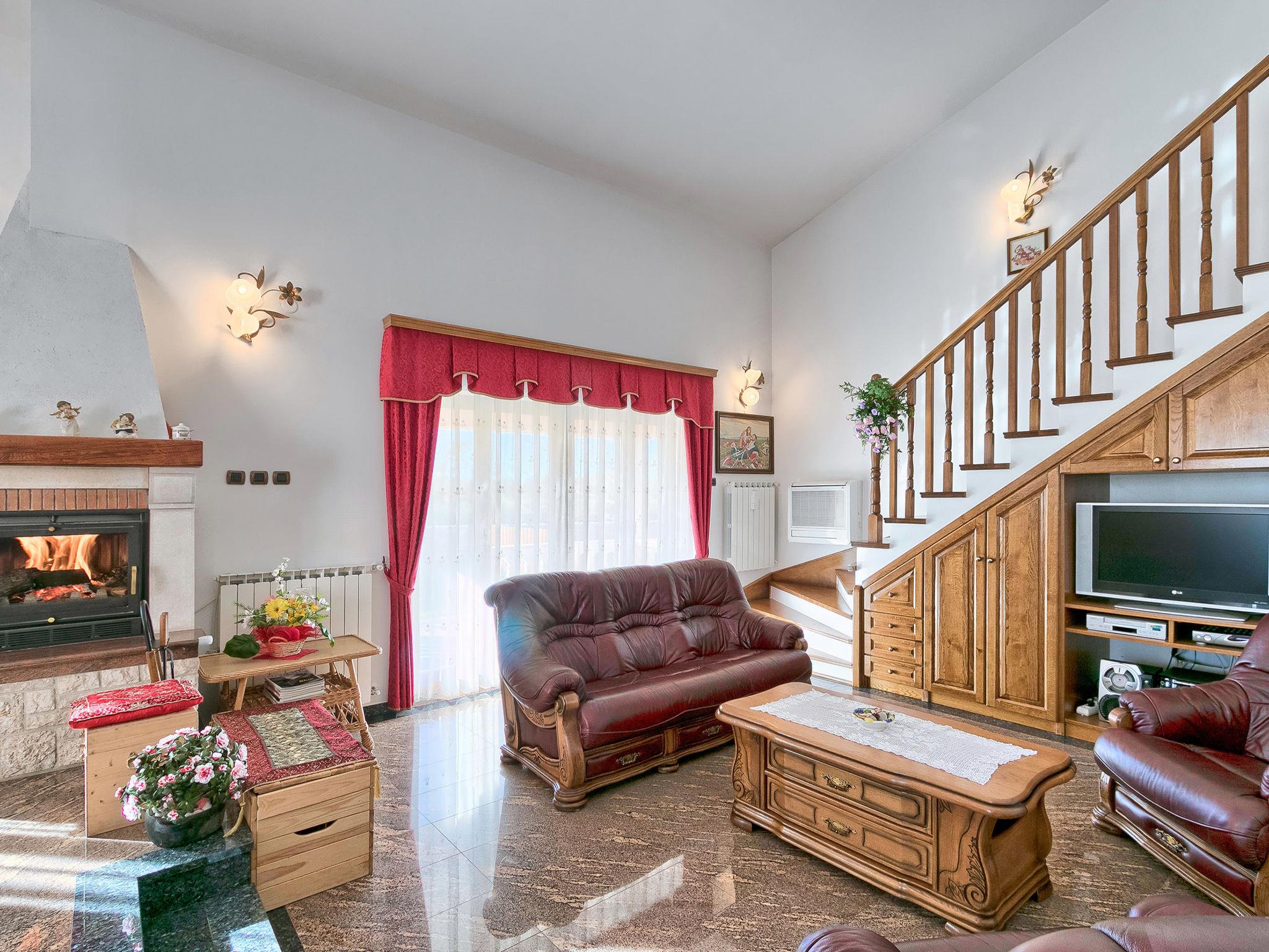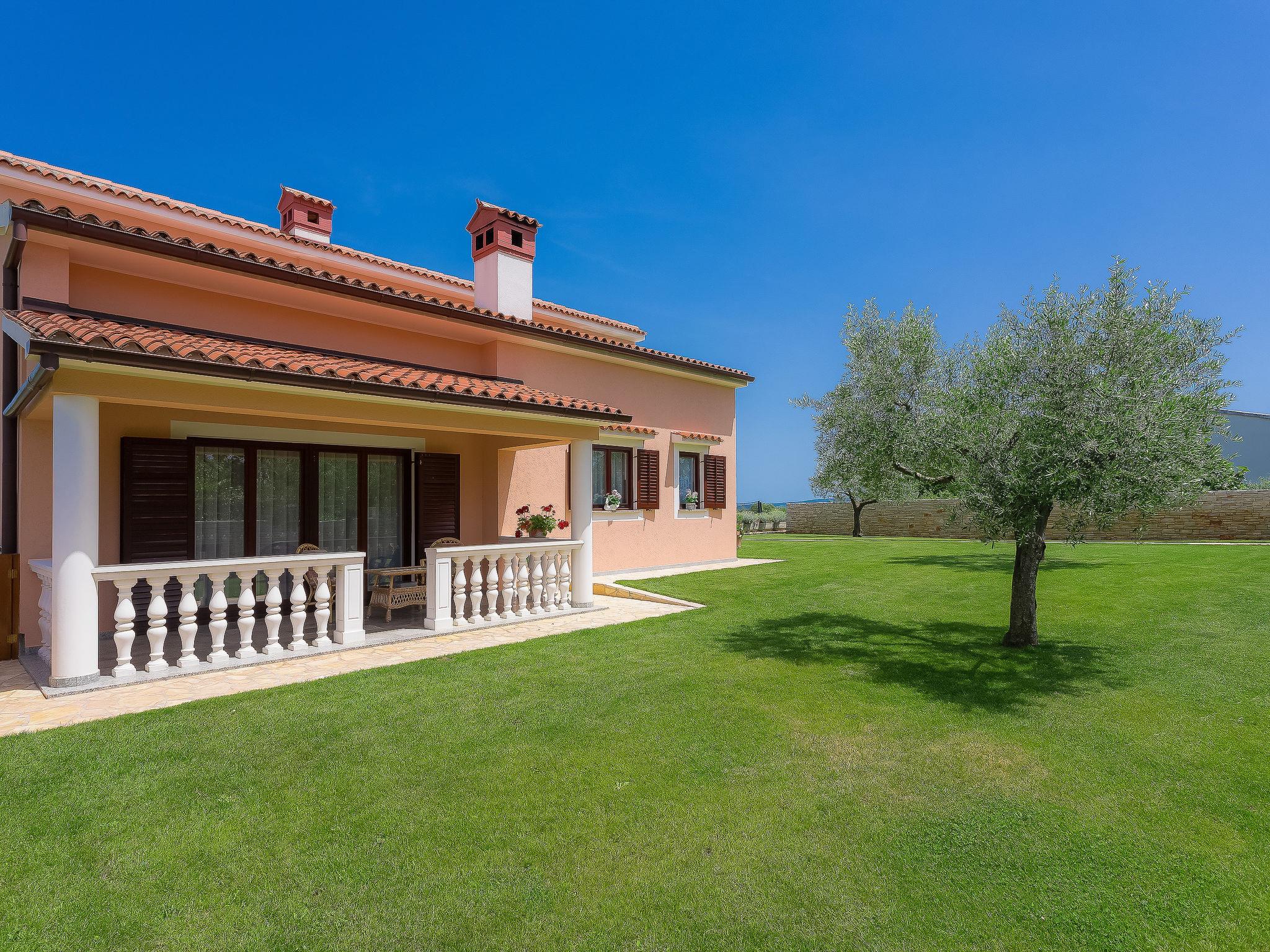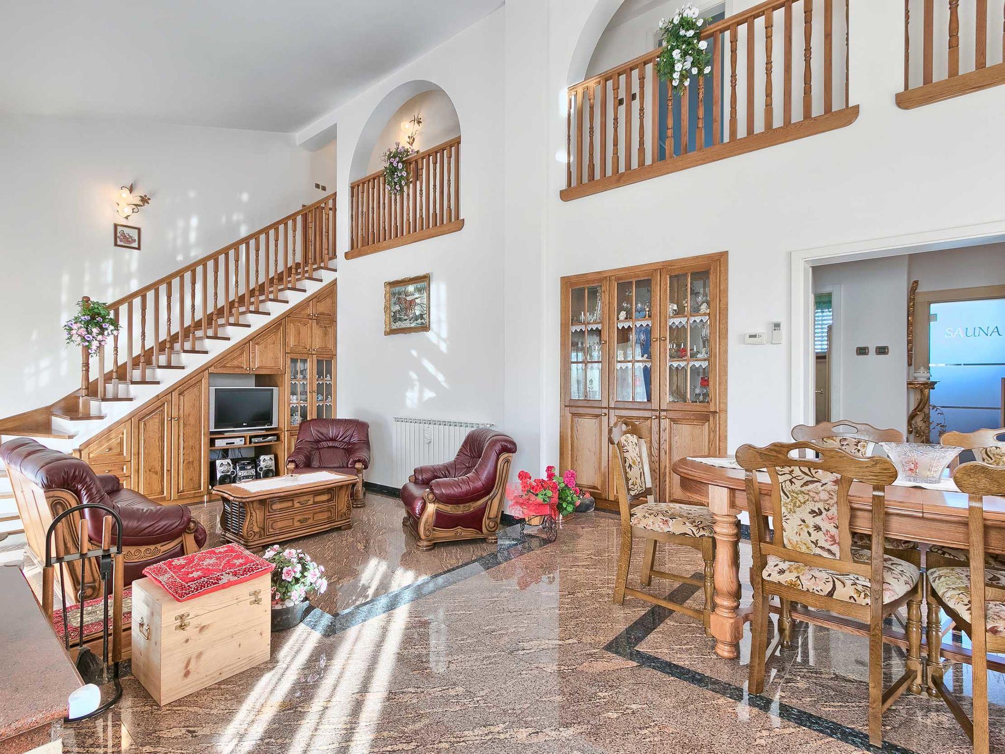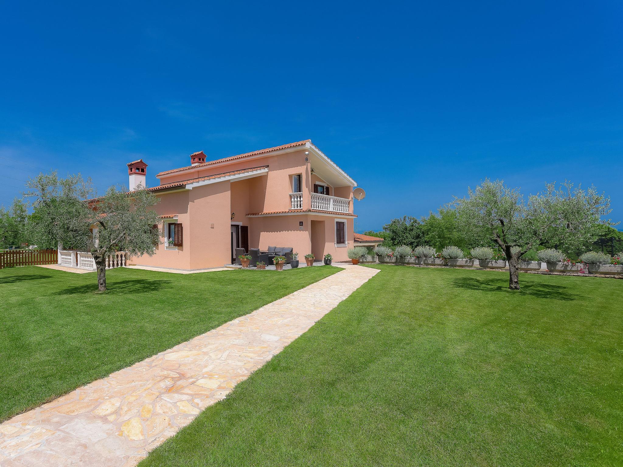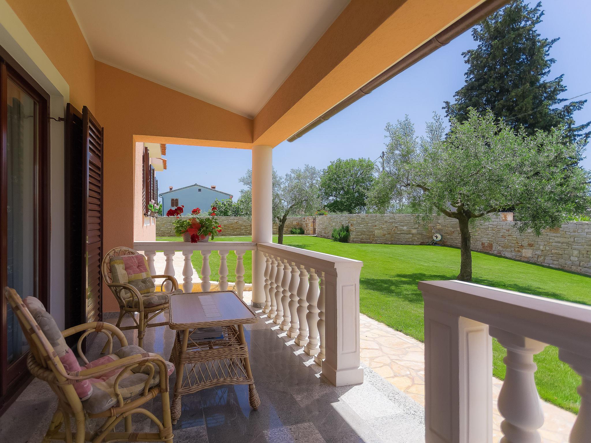 Beautiful single-family house "Mirjana", 2 storeys. In the hamlet Frkeci 2 km from the centre of Barban, 20 km from the centre of Rabac, in a quiet, sunny position, 10 km from the sea. Private: property 1'500 m2 (fenced), beautiful garden with lawn and wildlife garden, swimming pool angular (10 x 4 m, depth 150 cm, seasonal availability: 27.Apr. - 28.Sep.) with internal staircase. Outdoor shower, pool house with fridge and cooking stove, terrace (30 m2), garden furniture, barbecue, children's playground (slide, swing). In the house: internet access, sauna, trampoline, washing machine. Parking (for 3 cars) at the house on the premises. Shop 2 km, supermarket 12 km, restaurant 2 km, bus stop 2.2 km, pebble beach 12 km, rocky beach 10 km. Riding stable 9 km, walking paths from the house 500 m, cycle lane 550 m. Nearby attractions: adrenalin park 8 km. Groups of teenagers on request only.