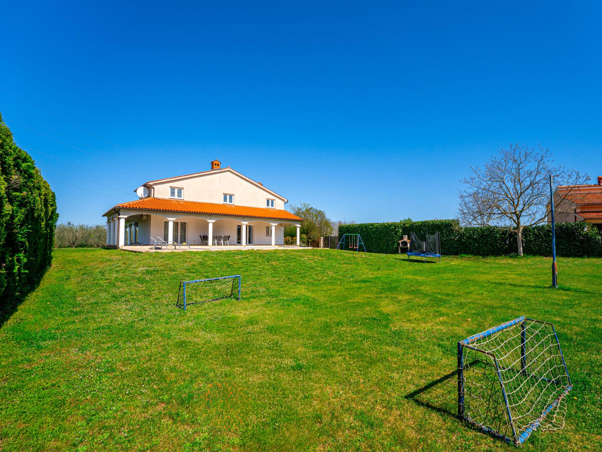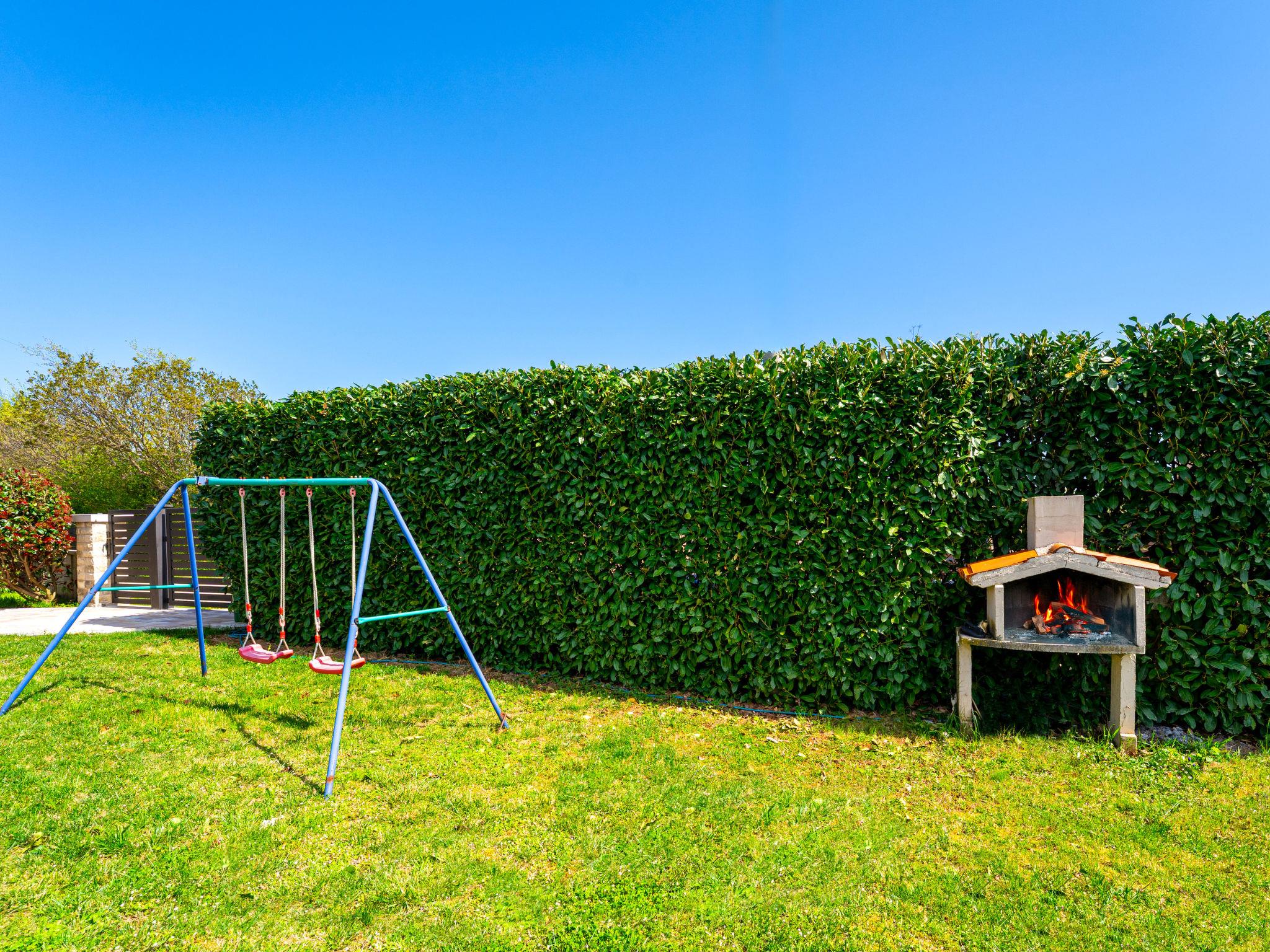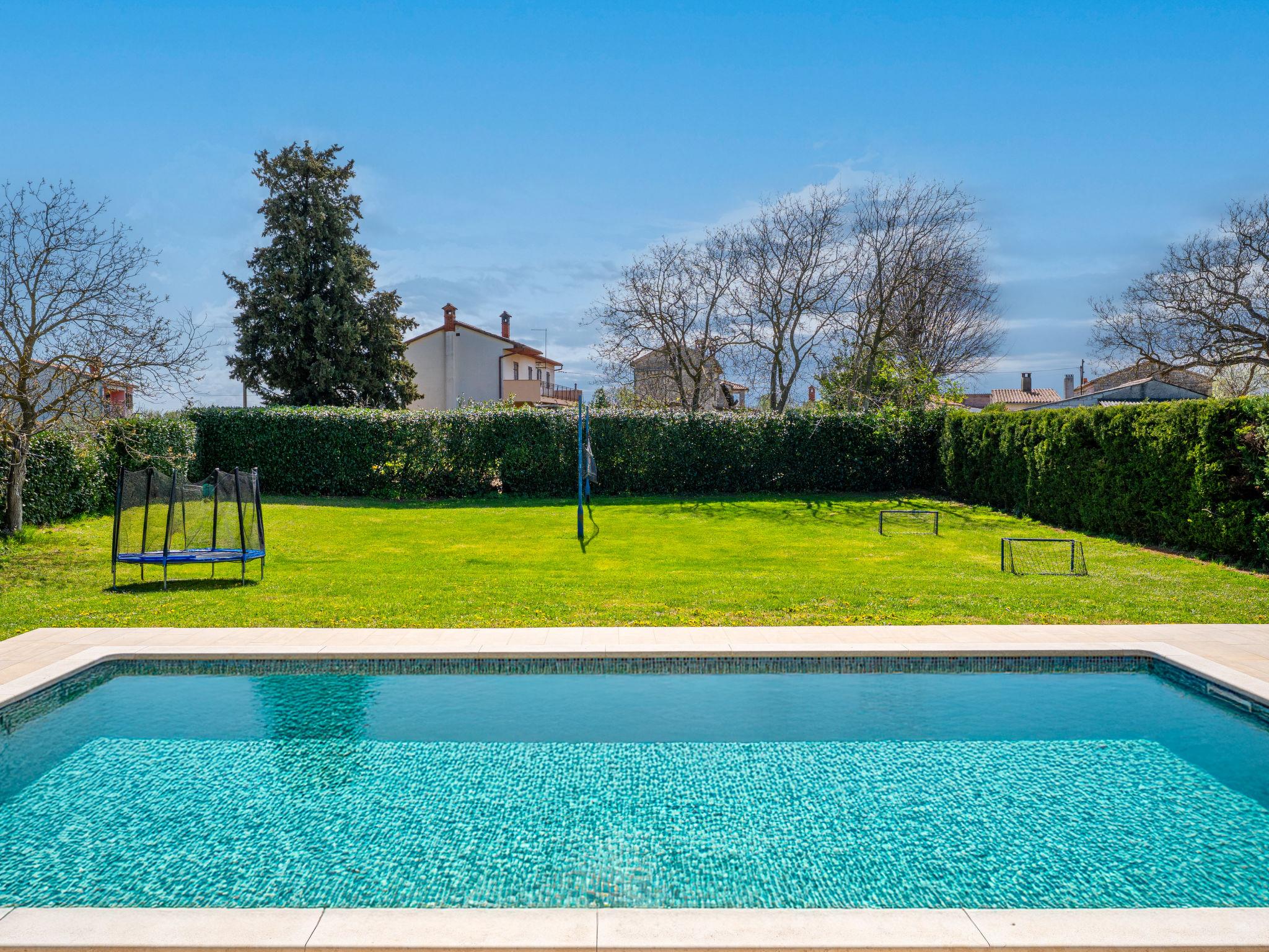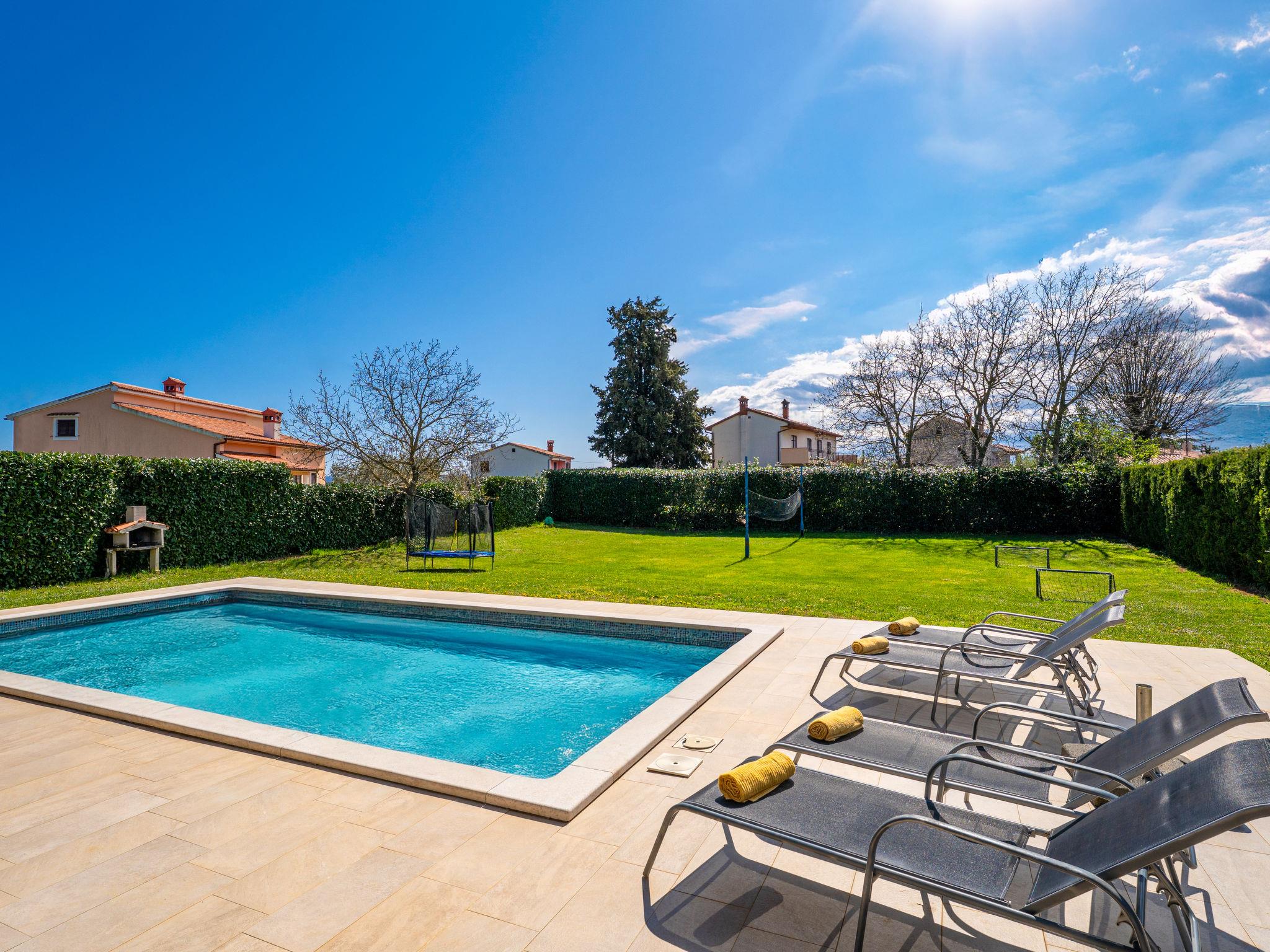 Single-family house "Kikaana". In the hamlet Frkeci 2.5 km from the centre of Barban, 29 km from the centre of Pula, in a quiet, sunny position, 22 km from the sea. Private: property 3'700 m2 with lawn and wildlife garden, swimming pool angular (8 x 4 m, depth 140 cm, seasonal availability: 01.May. - 30.Oct.) with internal staircase. Outdoor shower, terrace, barbecue (slide, swing), pool maintenance by the owner/gardener. In the house: WiFi, trampoline, washing machine. Parking (for 3 cars) at the house on the premises. Shop 2.5 km, supermarket 13 km, restaurant 2.5 km, bus stop "Barban" 2.5 km, pebble beach 22 km. Please note: 1st floor is closed and not occupied. Airfield 24 km from the property.