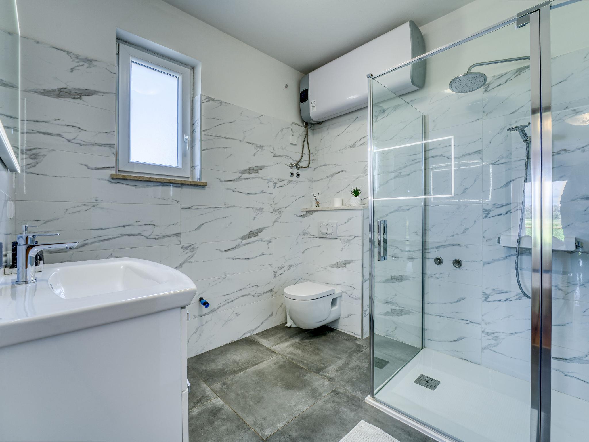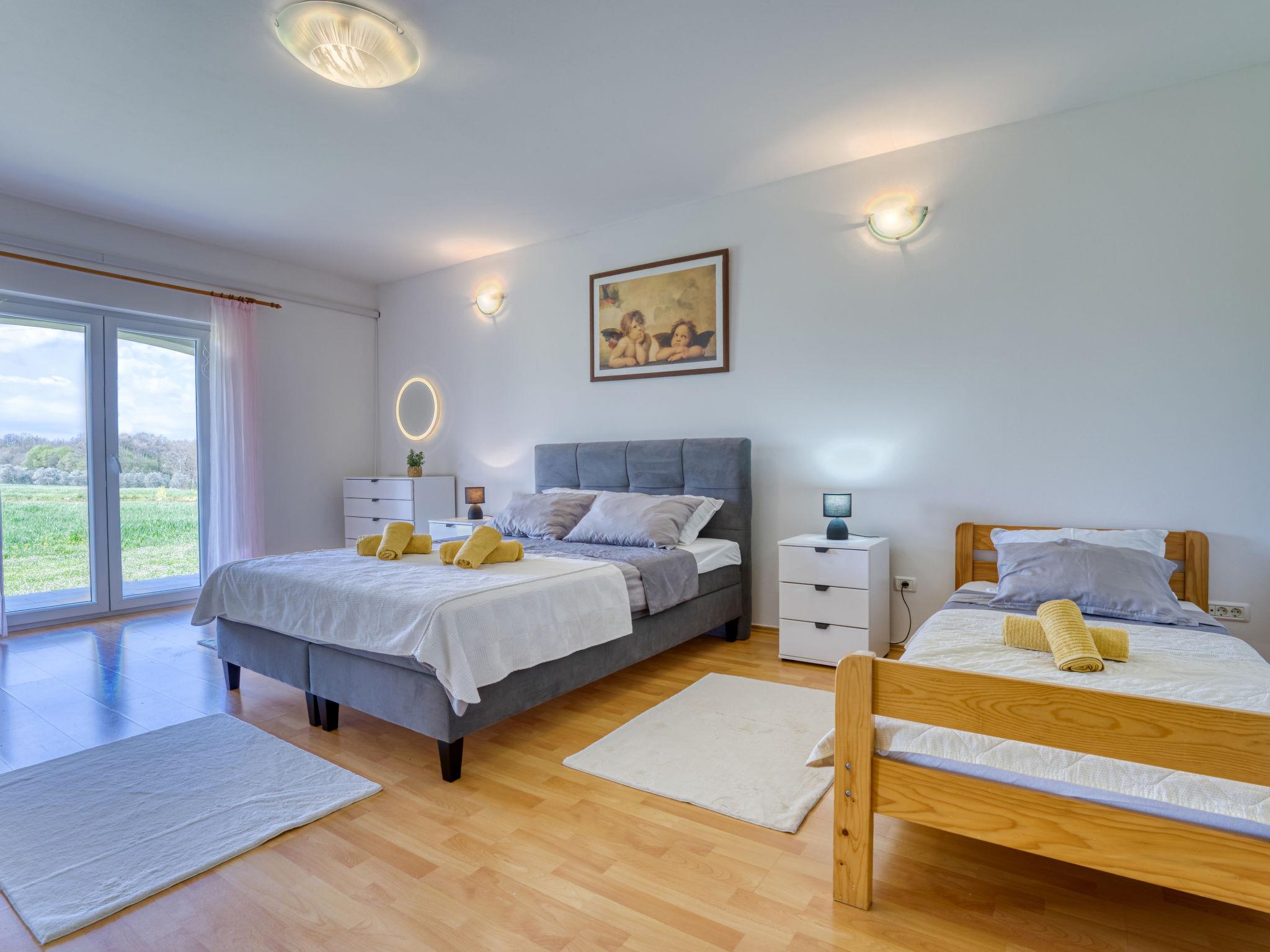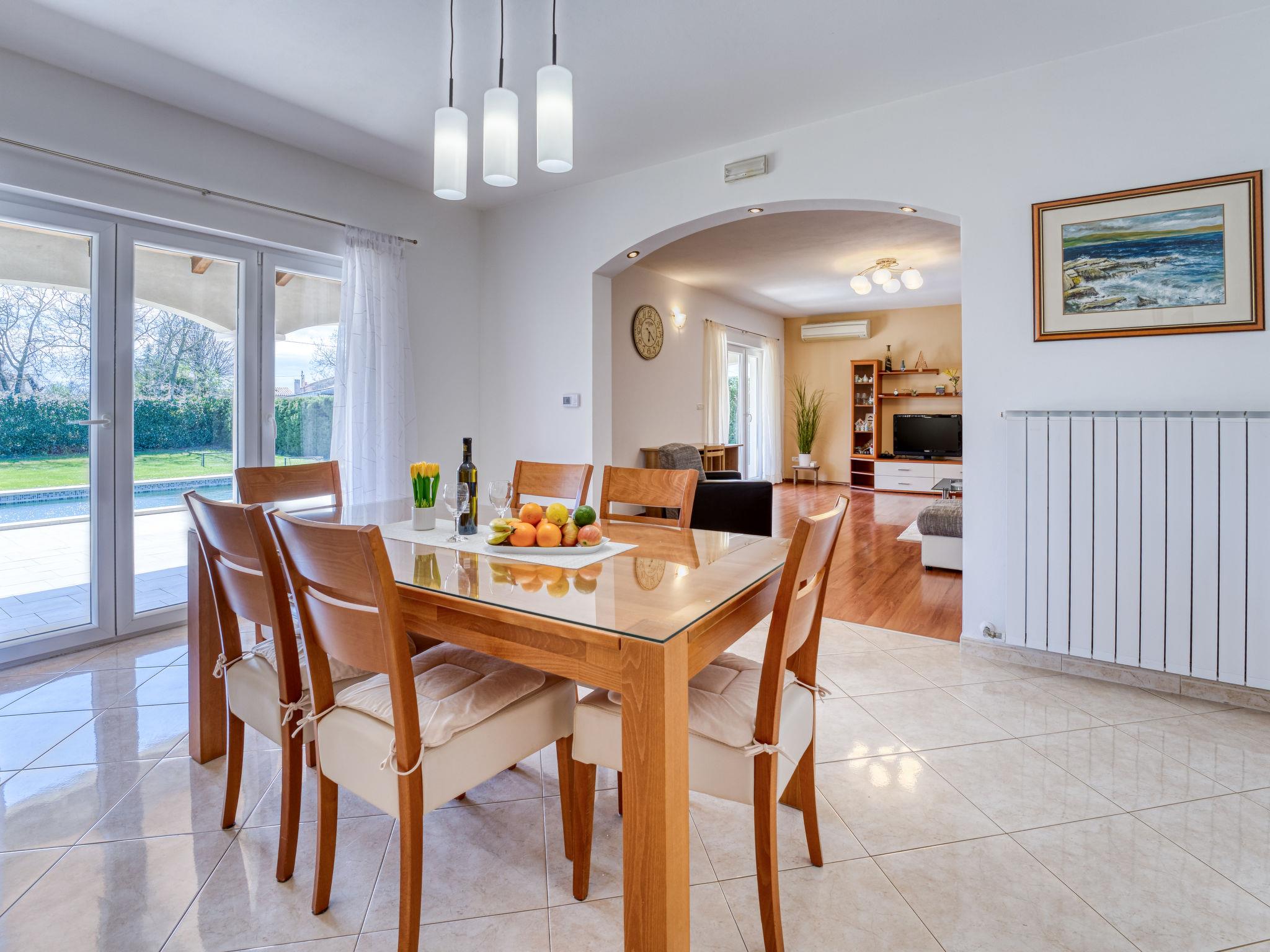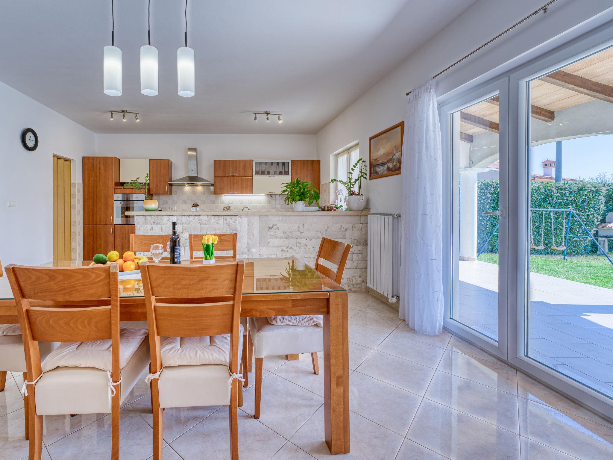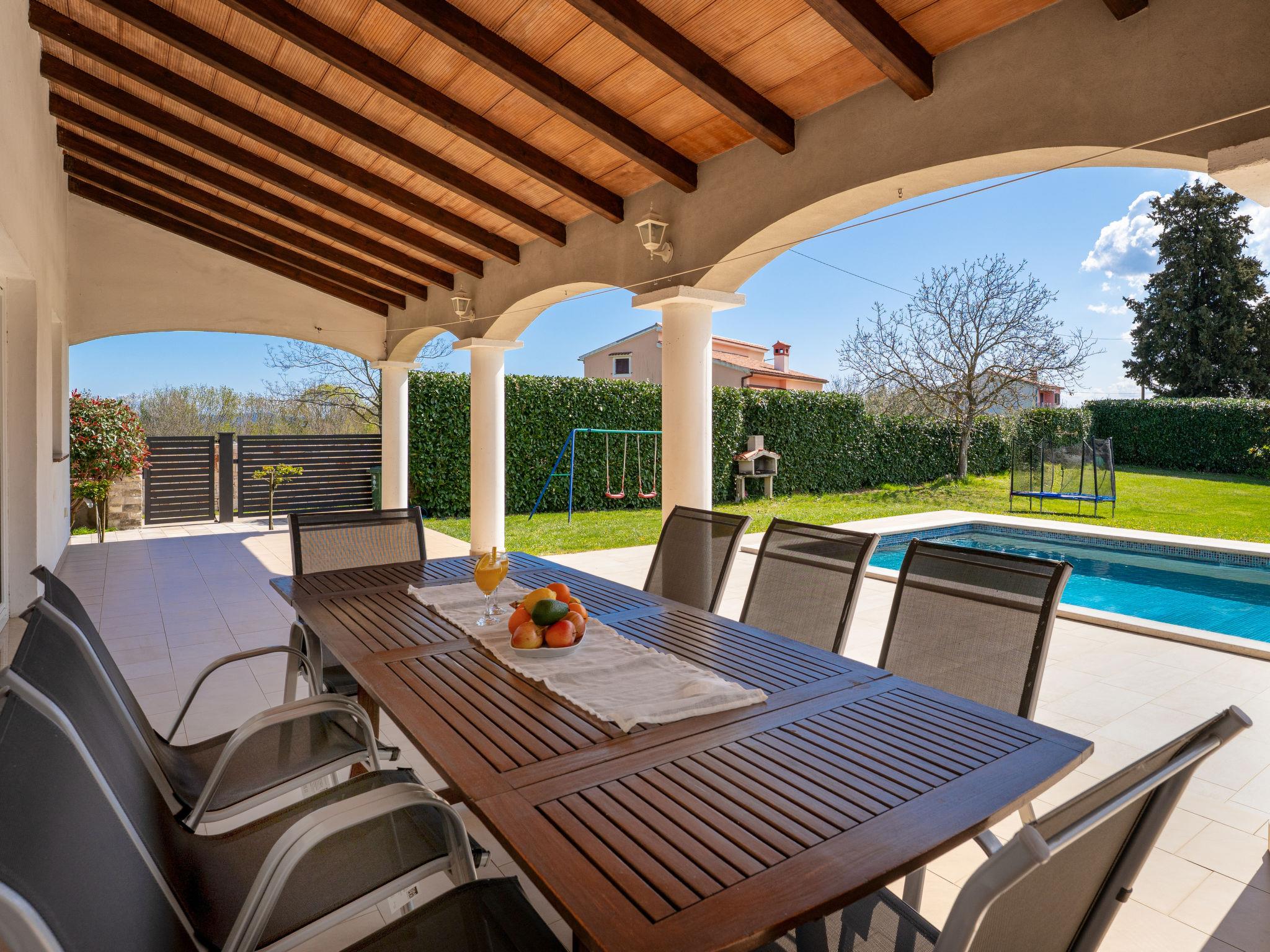 Single-family house "Kikaana". In the hamlet Frkeci 2.5 km from the centre of Barban, 29 km from the centre of Pula, in a quiet, sunny position, 22 km from the sea. Private: property 3'700 m2 with lawn and wildlife garden, swimming pool angular (8 x 4 m, depth 140 cm, seasonal availability: 01.May. - 30.Oct.) with internal staircase. Outdoor shower, terrace, barbecue (slide, swing), pool maintenance by the owner/gardener. In the house: WiFi, trampoline, washing machine. Parking (for 3 cars) at the house on the premises. Shop 2.5 km, supermarket 13 km, restaurant 2.5 km, bus stop "Barban" 2.5 km, pebble beach 22 km. Please note: 1st floor is closed and not occupied. Airfield 24 km from the property.