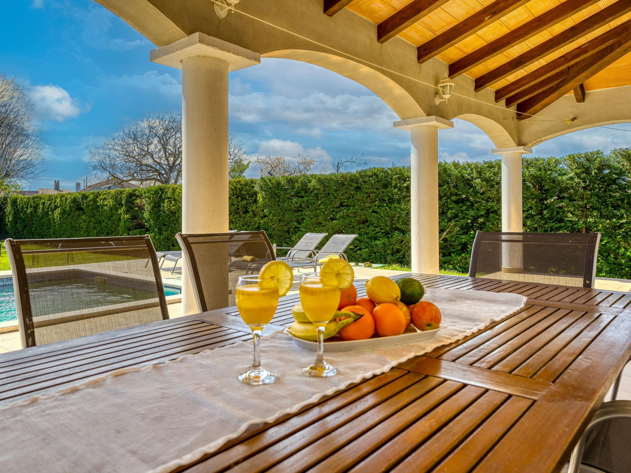 4-room house 160 m2. Living/dining room with satellite TV and air conditioning. Exit to the terrace, to the swimming pool. 1 room with 1 bed (90 cm, length 200 cm), 1 french bed (160 cm, length 200 cm), shower/WC and air conditioning. Exit to the terrace. 1 room with 1 french bed (160 cm, length 200 cm). Exit to the terrace. 1 room with 1 french bed (160 cm, length 200 cm), 1 folding bed (80 cm, length 190 cm). Exit to the terrace. Open kitchen (1 hot plate, oven, dishwasher, 3 gas rings, toaster, kettle, microwave, freezer, electric coffee machine). Exit to the terrace, to the swimming pool. Sep. WC, bath/shower/bidet/WC, double hand-basin. Large terrace 40 m2, roofed terrace 25 m2, roofed. Terrace furniture, deck chairs. Facilities: iron, hair dryer. Internet (WiFi, free). Please note: non-smoking house.