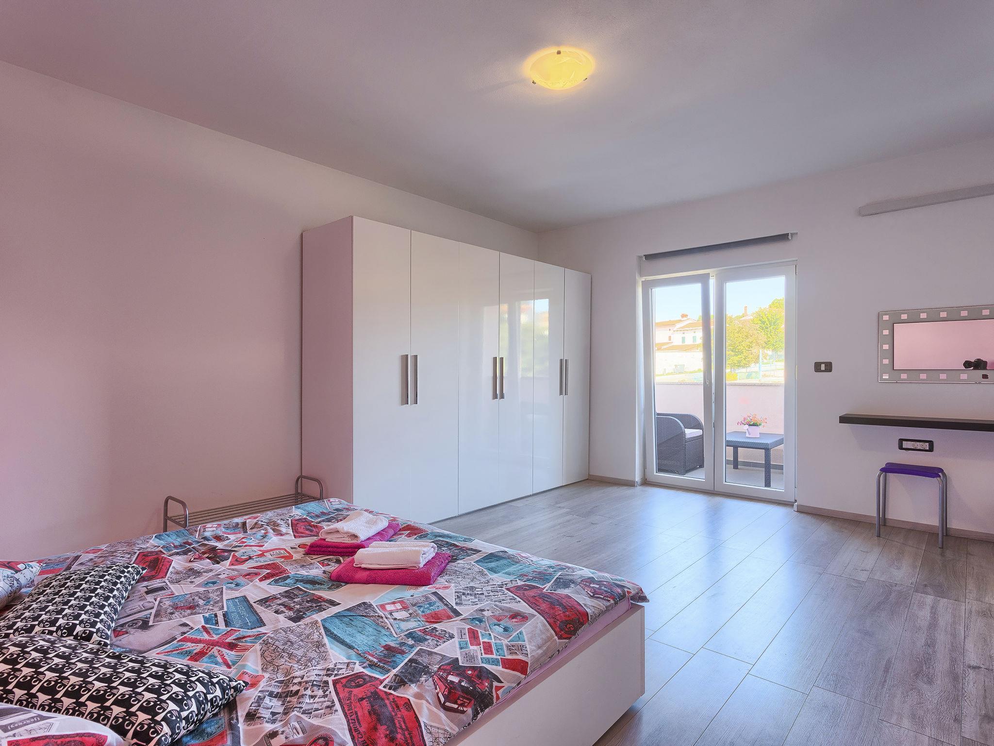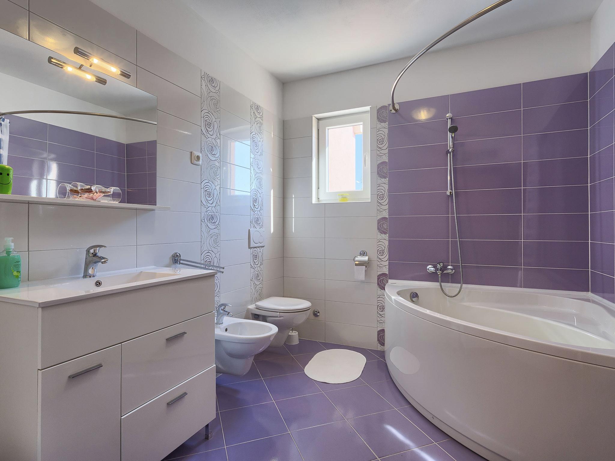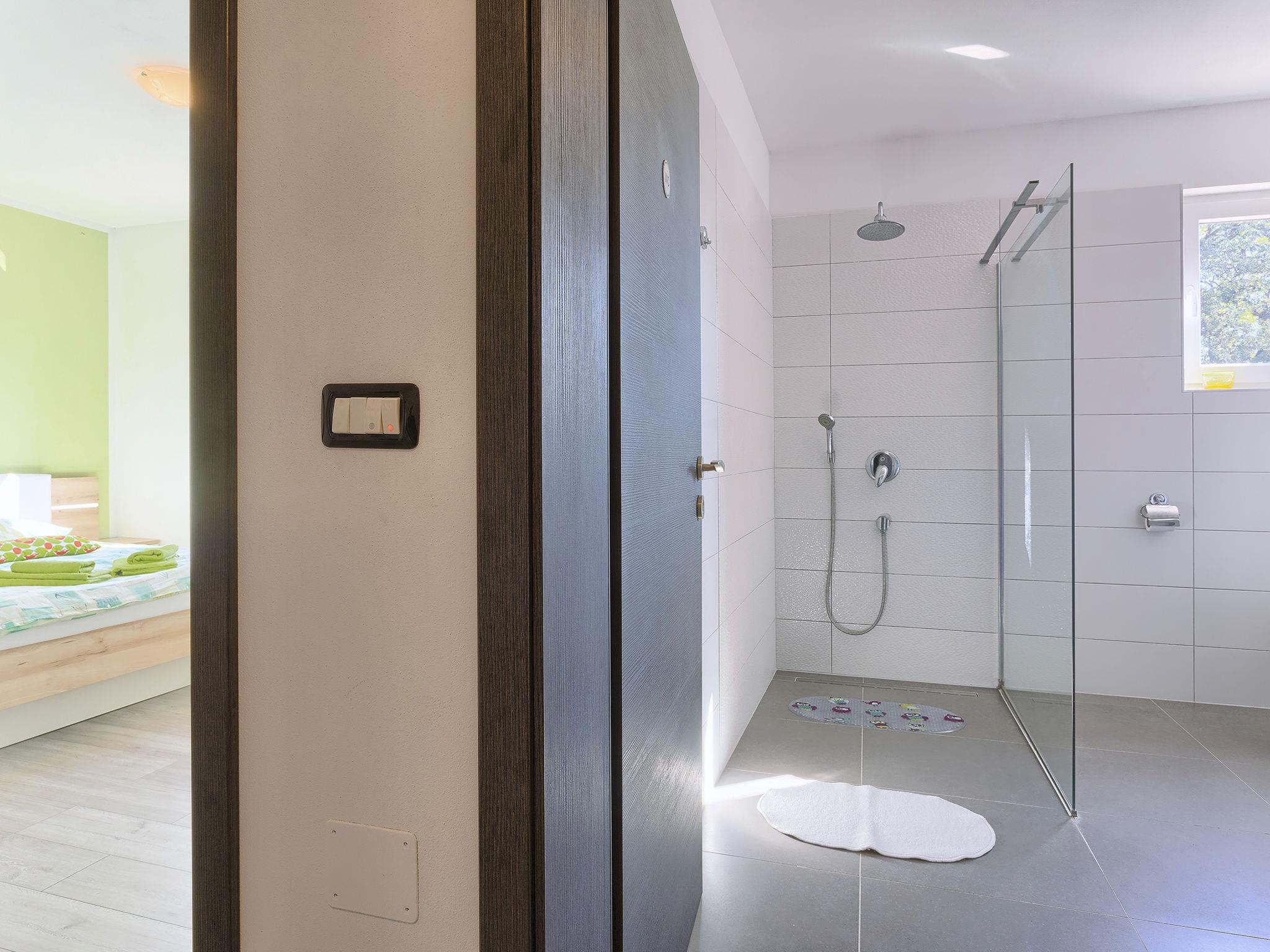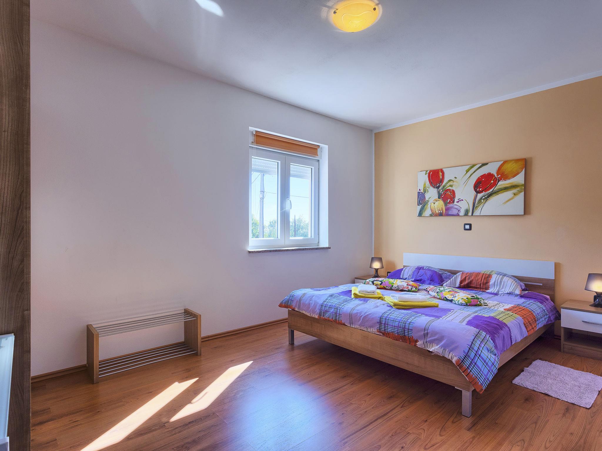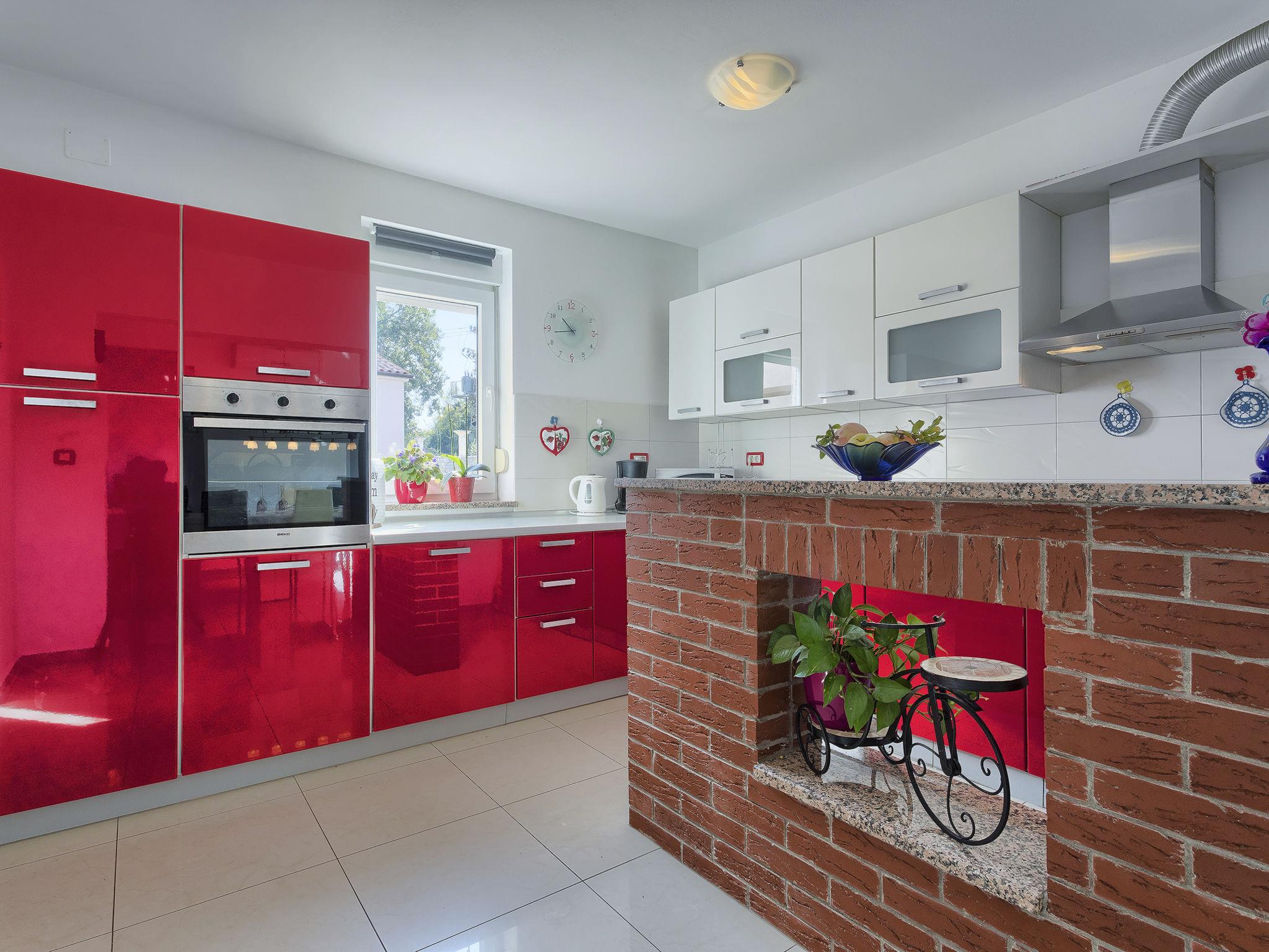 Single-family house "Paus", 2 storeys. In the hamlet Orihi 7 km from the centre of Barban, in a quiet, sunny position, 15 km from the sea. Private: property 1'000 m2 (fenced), garden with lawn and wildlife garden, swimming pool heated (32 m2, depth 140 cm, seasonal availability: 27.Apr. - 26.Oct.) with internal staircase. Unconventional pool shape. Outdoor shower, table tennis, terrace (40 m2), garden furniture, barbecue, children's playground (slide, swing). In the house: internet access, sauna, billiard table, trampoline, washing machine. Parking at the house on the premises. Shop 50 m, restaurant 250 m, bus stop 3 km, pebble beach 15 km. Riding stable 15 km, walking paths from the house 100 m, cycle lane 150 m. Nearby attractions: Adrenalin park 15 km. Groups of teenagers are not allowed.