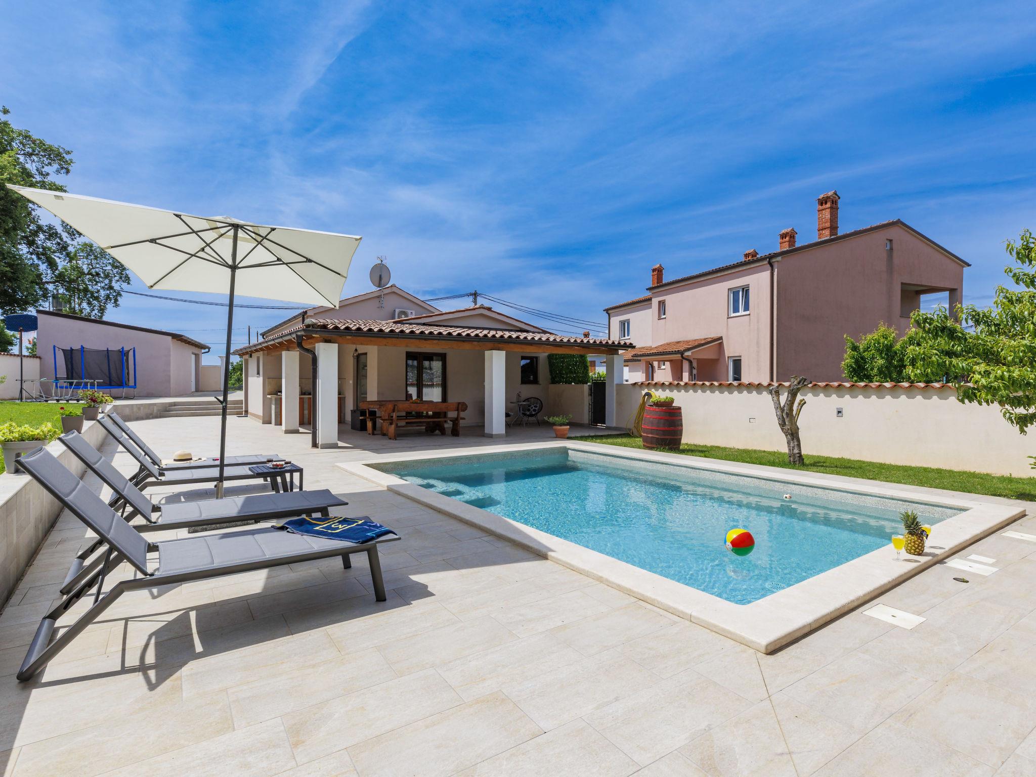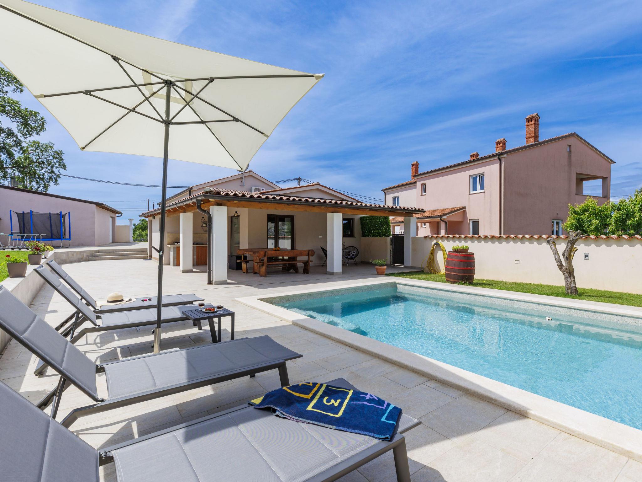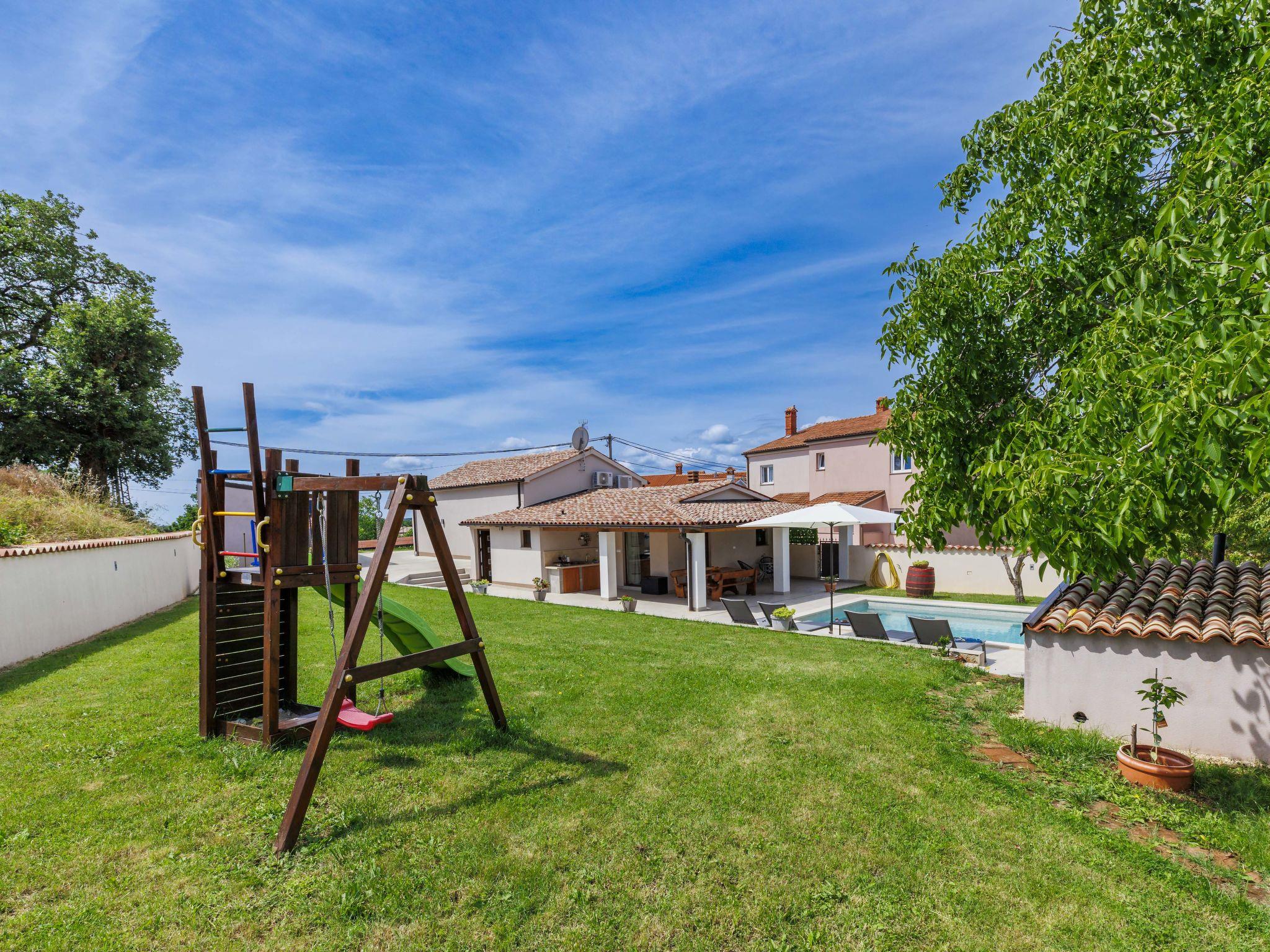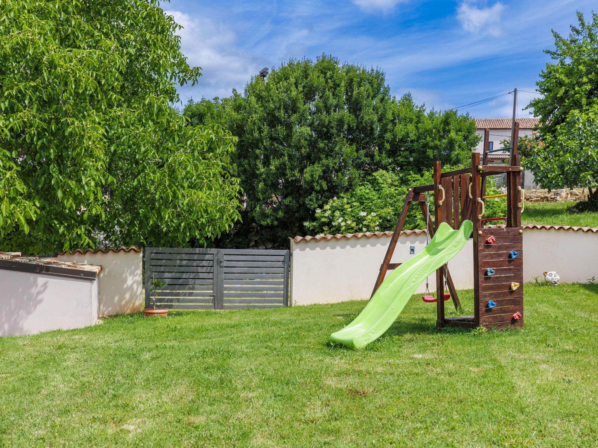 Single-family house "Nina". In the hamlet Orihi 7 km from the centre of Barban, in a quiet, sunny position, 15 km from the sea. Private: property 500 m2 (fenced), garden with lawn and wildlife garden, swimming pool angular (24 m2, depth 140 cm, seasonal availability: 27.Apr. - 26.Oct.) with internal staircase. Outdoor shower, table tennis, terrace (25 m2), garden furniture, barbecue, children's playground (slide). In the house: internet access, trampoline, washing machine. Parking at the house on the premises. Shop 50 m, restaurant 250 m, bus stop 3 km, pebble beach 15 km. Riding stable 15 km, walking paths from the house 100 m, cycle lane 150 m. Nearby attractions: Adrenalin park 15 km.