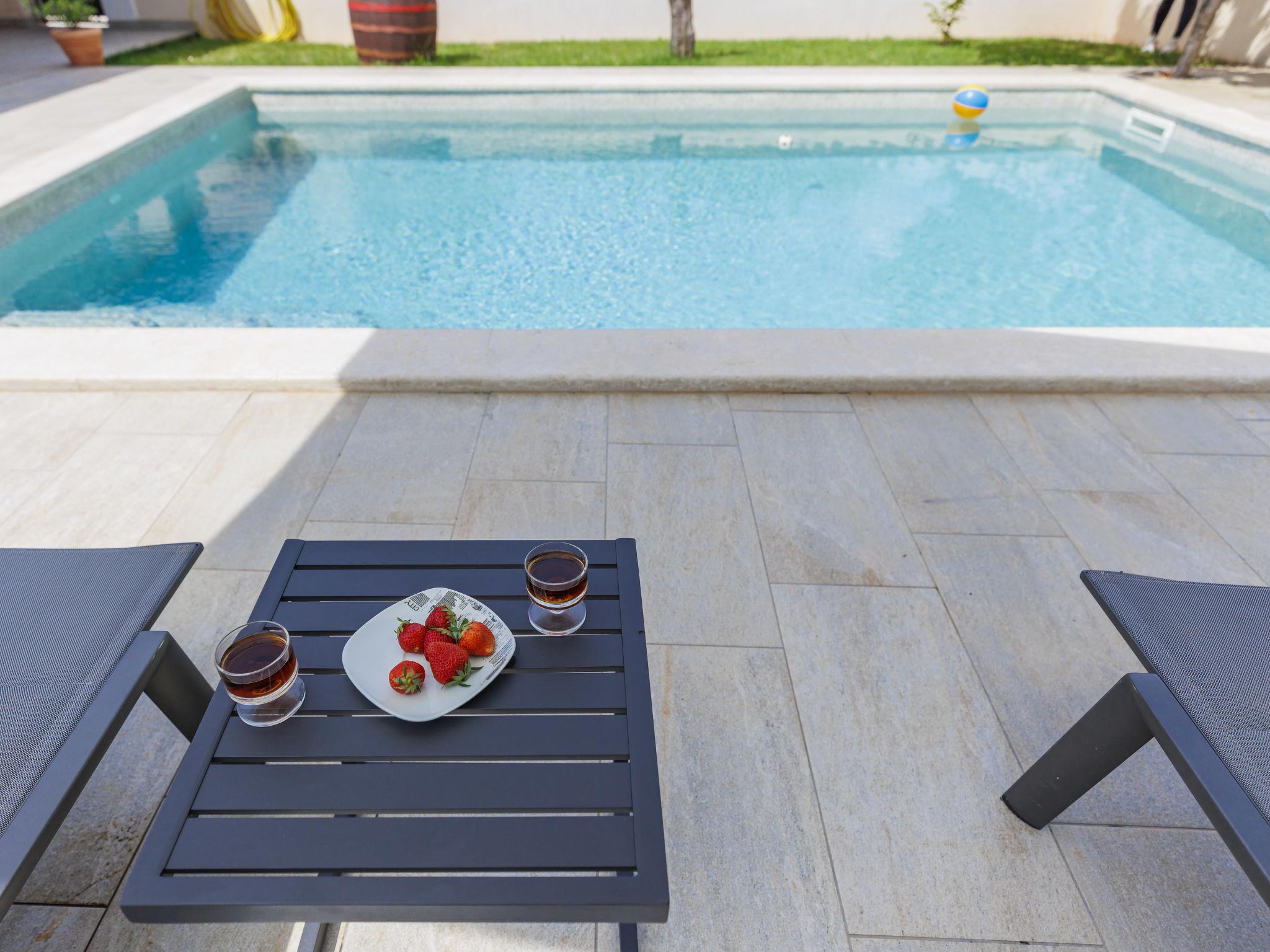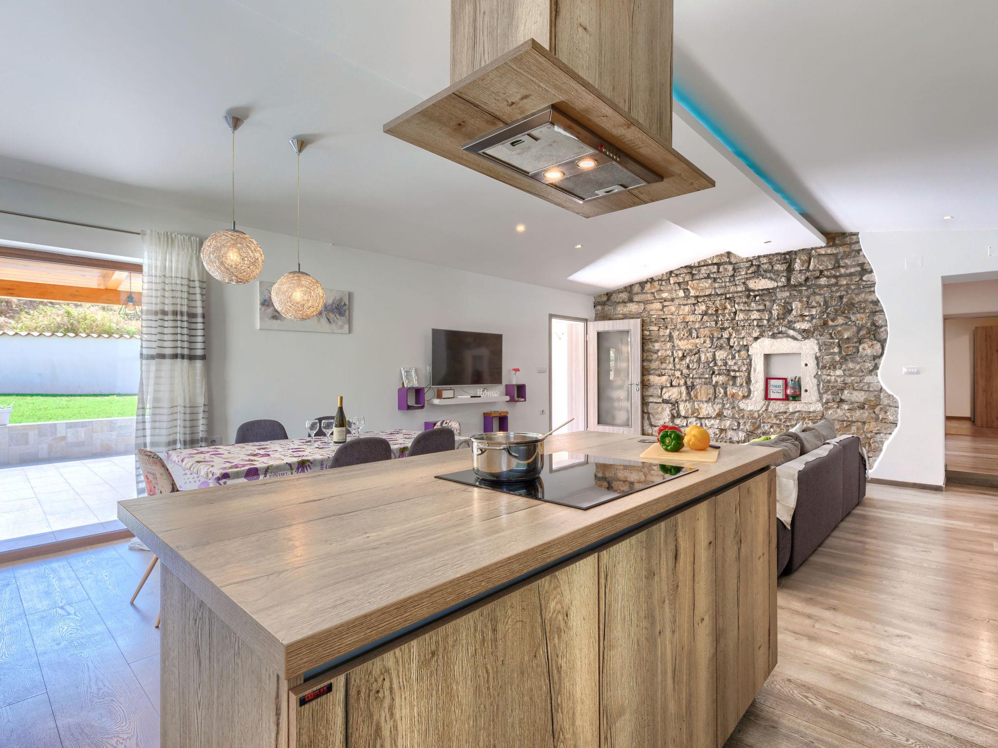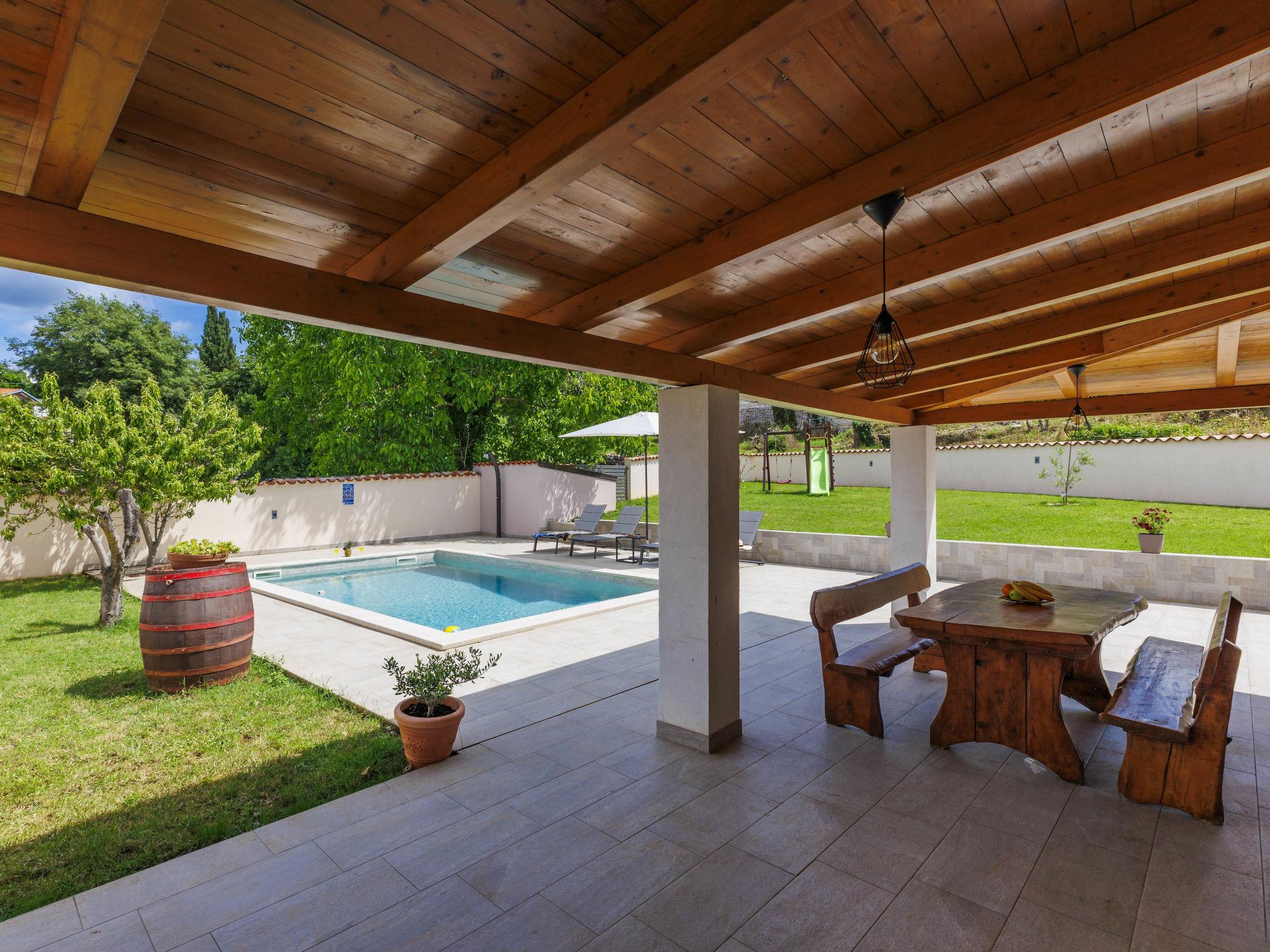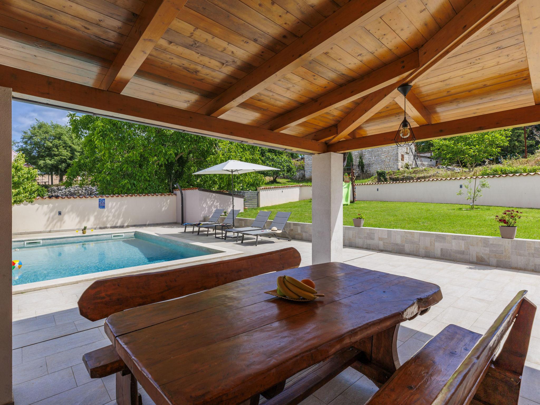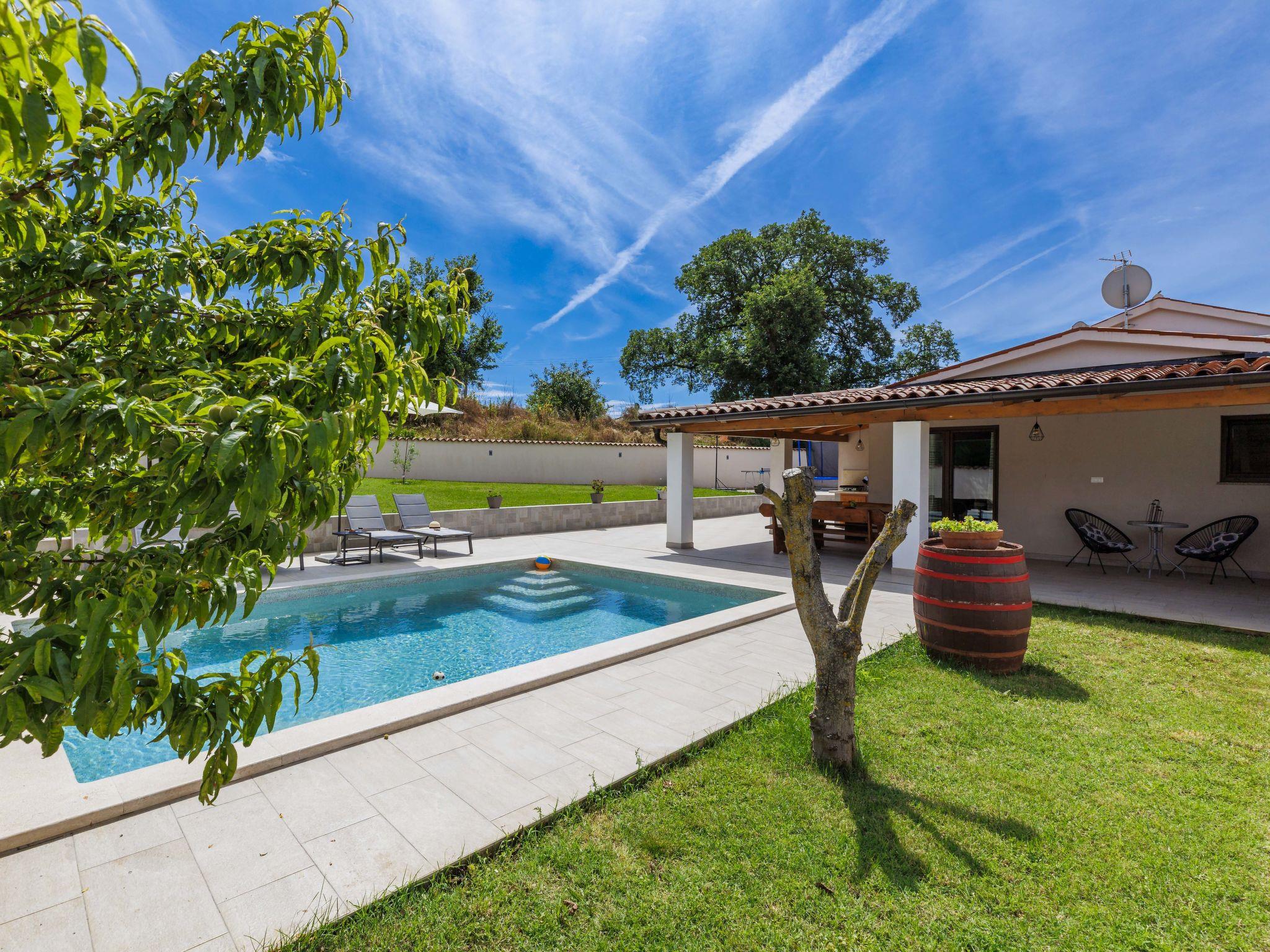 Single-family house "Nina". In the hamlet Orihi 7 km from the centre of Barban, in a quiet, sunny position, 15 km from the sea. Private: property 500 m2 (fenced), garden with lawn and wildlife garden, swimming pool angular (24 m2, depth 140 cm, seasonal availability: 27.Apr. - 26.Oct.) with internal staircase. Outdoor shower, table tennis, terrace (25 m2), garden furniture, barbecue, children's playground (slide). In the house: internet access, trampoline, washing machine. Parking at the house on the premises. Shop 50 m, restaurant 250 m, bus stop 3 km, pebble beach 15 km. Riding stable 15 km, walking paths from the house 100 m, cycle lane 150 m. Nearby attractions: Adrenalin park 15 km.