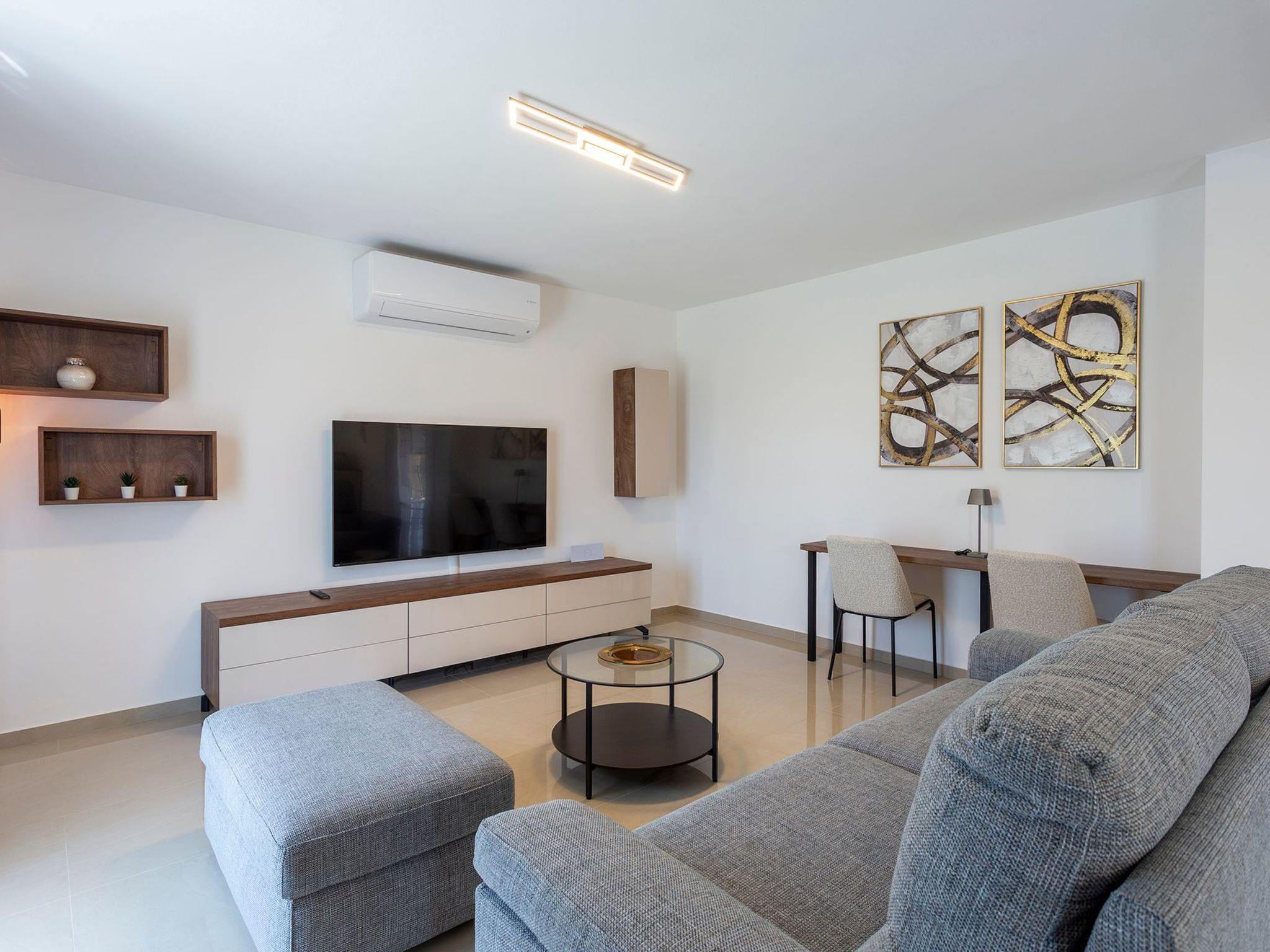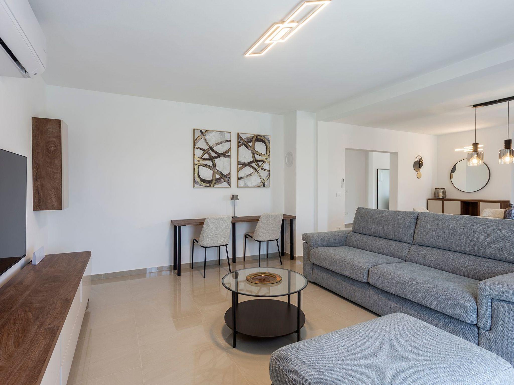 Inside, the apartment boasts a well-thought-out layout designed for relaxation and convenience. Two cozy bedrooms ensure a good night's sleep for everyone, while the availability of three bathrooms, each with a shower, adds an extra layer of privacy and comfort. The inclusion of air conditioning throughout guarantees a cool and pleasant environment, regardless of the outdoor temperatures. Practicality is also key; with a washing machine and a clothes dryer for your exclusive use, you'll have everything you need for a hassle-free stay. The kitchen doesn't disappoint, featuring an induction hob, both a filter and a capsule coffee machine, a dishwasher, and an electric kettle to cater to all your culinary desires.