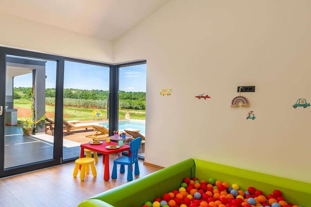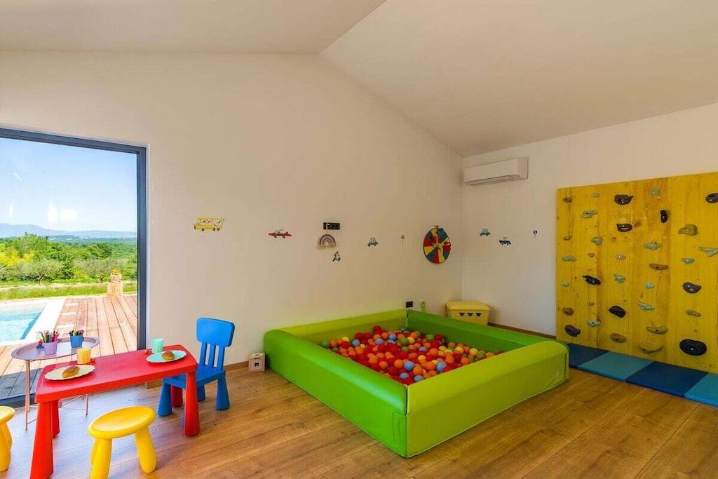 Stueetage: (Stue(enkeltsovesofa, Fjernsyn, klimaanlæg), Køkken(spisebord, brødrister, komfur, kaffemaskine, ovn, mikrobølgeovn, opvaskemaskine , køleskab, fryser, klimaanlæg), soveværelse(, , dobbeltseng, Fjernsyn, klimaanlæg), soveværelse(, , dobbeltseng, Fjernsyn, klimaanlæg), badeværelse(, toilet, bruser, håndvask, bidet, føntørrer), badeværelse(, toilet, bruser, håndvask, bidet), badeværelse(, toilet, bruser, håndvask), pulterkammer(vaskemaskine, strygebræt)) , , Børneværelse, loungerum(solstole), Internetadgang, Førstehjælp, tørretumbler, vaskemaskine, terrasse(Grill center, havemøbler), strygebræt, strygejern,