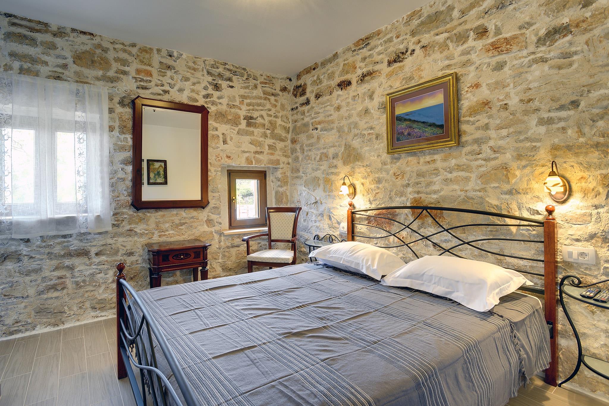 Check ud denne fantastiske ejendom - villa Lucy i Rojnici ligger på 3700 kvadratmeter privat land, den har en stor swimmingpool beliggende i centrum af den rummelige have med græsplæne, en udendørs bruser, en grill og legeplads med gynger. Villa Lucy er et fuldstændigt renoveret istriske hus, der er tilpasset til udlejning. Ejendommen er indhegnet af en tyk stenmur og har 7 soveværelser, en udendørs spiseplads samt et stort indendørs rum. Denne villa i Rojnici er lavet til underholdende - det kan rumme op til 14 gæster!