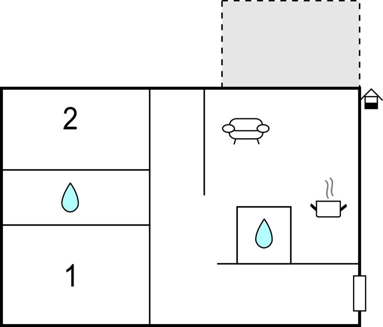 Opholdsstue/køkken - 1 Soveplads. (Sofa, madras eller lignende).